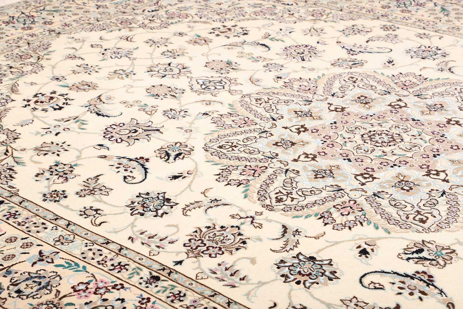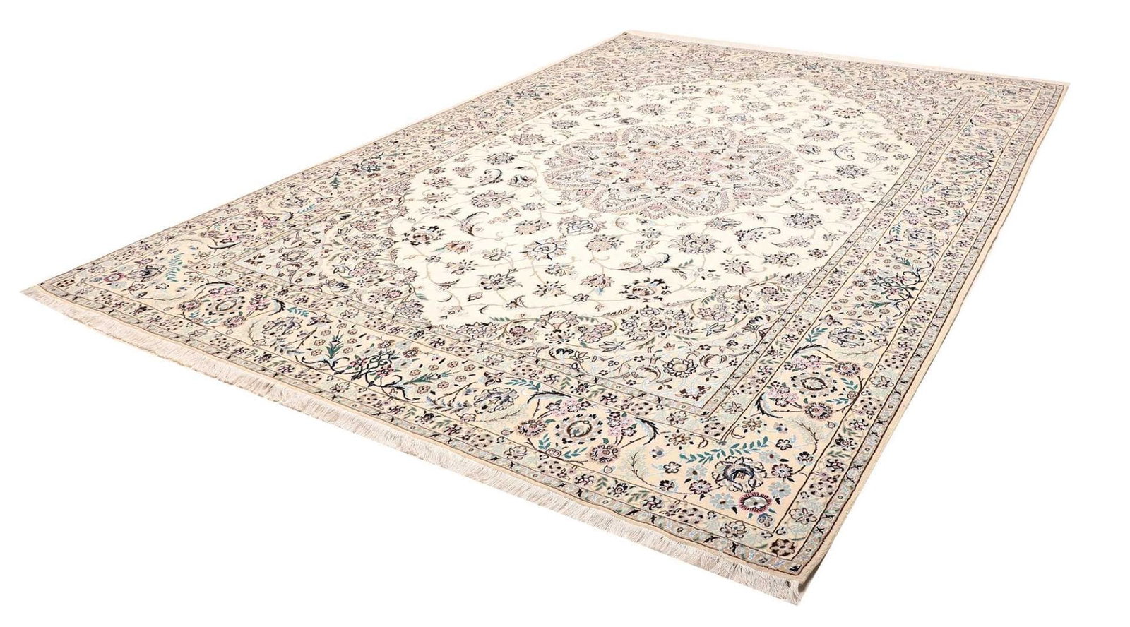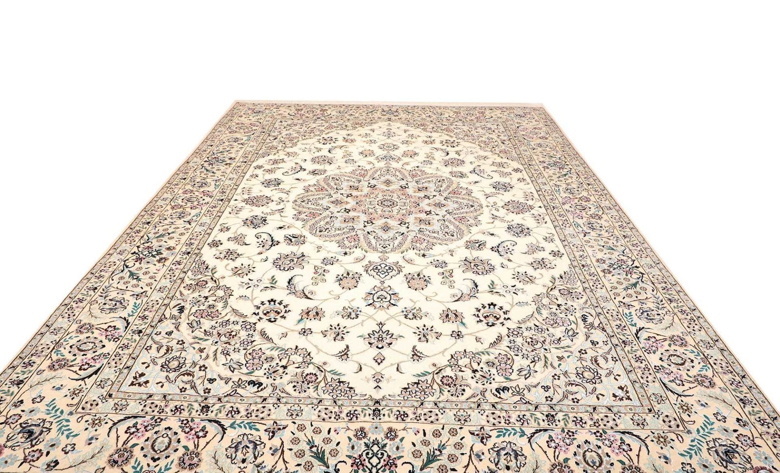 9518$Ursprünglicher Preis war: 9518$8511$Aktueller Preis ist: 8511$Nain Teppich | Knotendichte: ca. 500.000 Knoten/m² | Material: 100% Schurwolle (Flor), 100% Baumwolle (Kette) | Größe: 256 x 360 cm | Herkunft: Iran | Zustand: Exklusiv und hochwertig | Handgeknüpft, florale und geometrische Muster