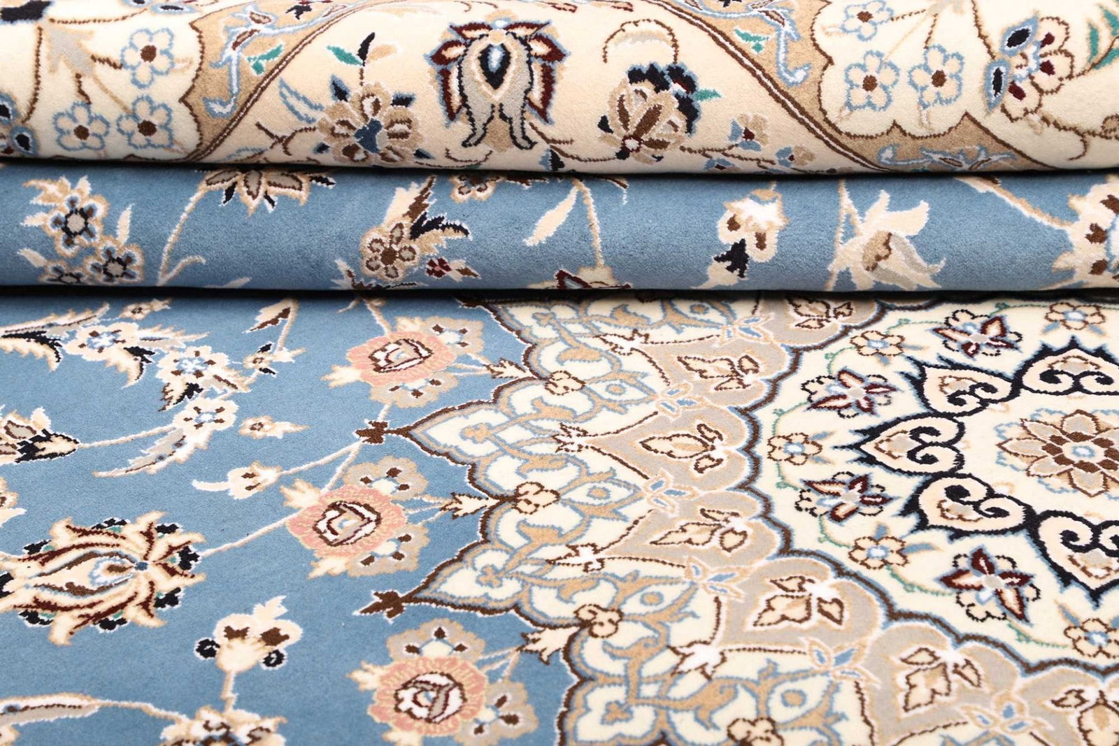 Ein Nain Teppich ist einzigartig aufgrund seiner handgeknüpften Qualität, der hohen Knotendichte und der spezifischen floralen Muster, die die Kultur und Handwerkskunst der Region Nain im Iran widerspiegeln. Jedes Stück ist ein Unikat und erzählt eine eigene Geschichte, die es von anderen Teppichen abhebt.