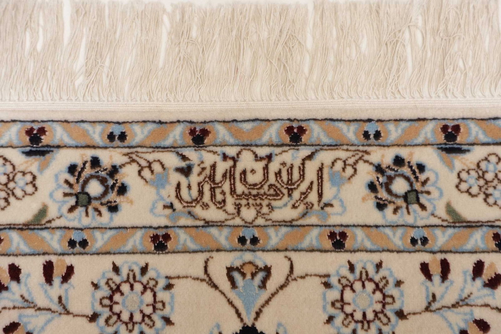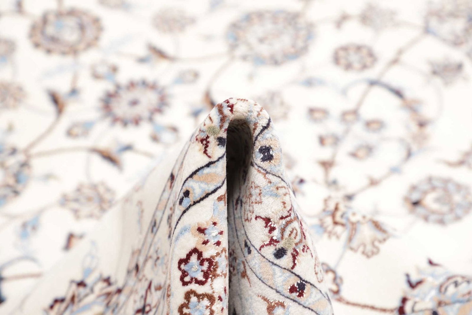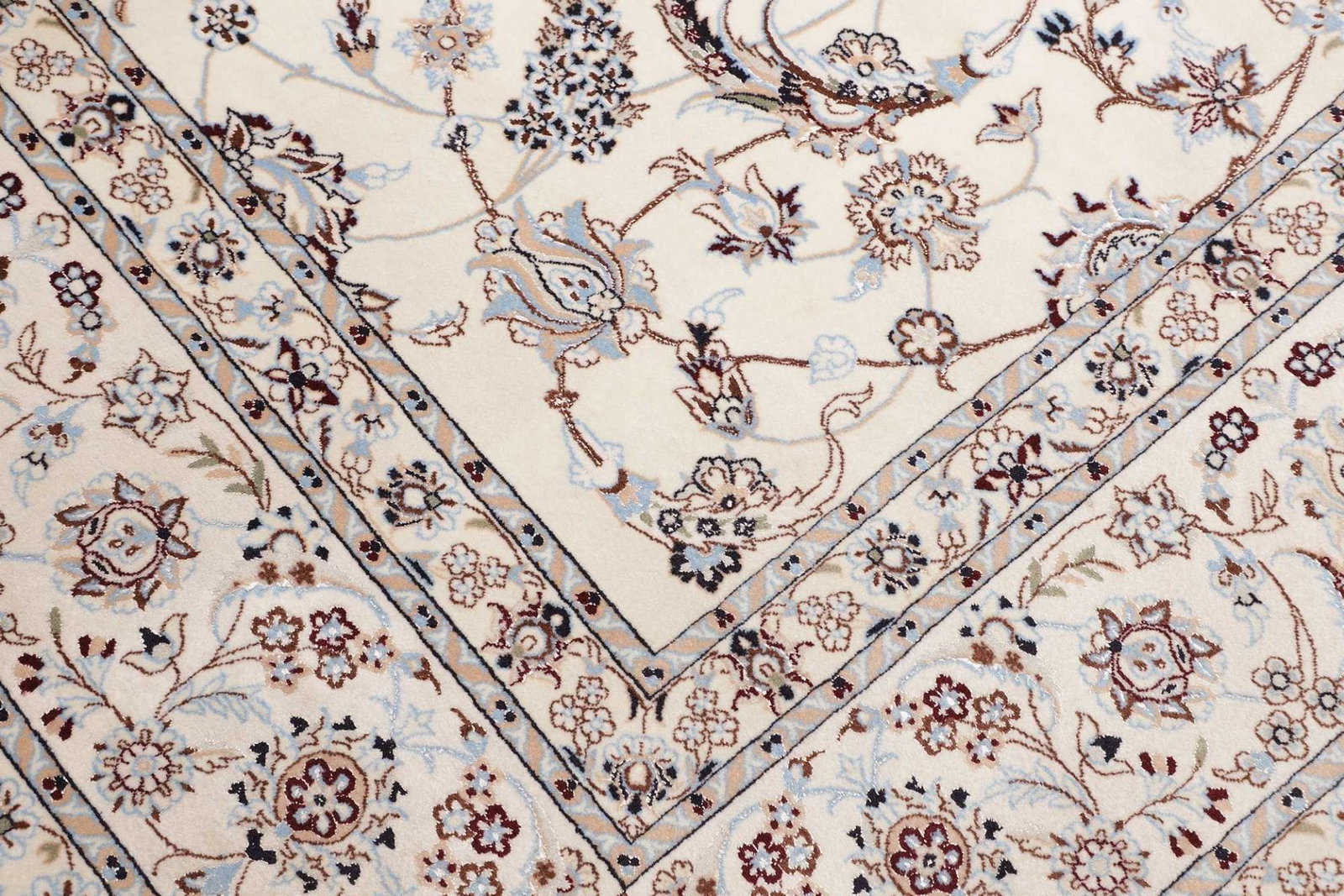 Das florale Muster dieses Nain Teppichs ist ein hervorragendes Beispiel für die kunstvolle Gestaltung, die die Teppichkunst des Iran prägt. Florale Motive in verschiedenen Farben und Formen symbolisieren Lebensfreude und Verbundenheit mit der Natur. Jedes Element des Designs erzählt seine eigene Geschichte, die tief in der Kultur und den Traditionen des Landes verwurzelt ist. Solche Muster sind nicht nur dekorativ, sondern tragen auch geheime Bedeutungen und wünschen Glück und Wohlstand aus.