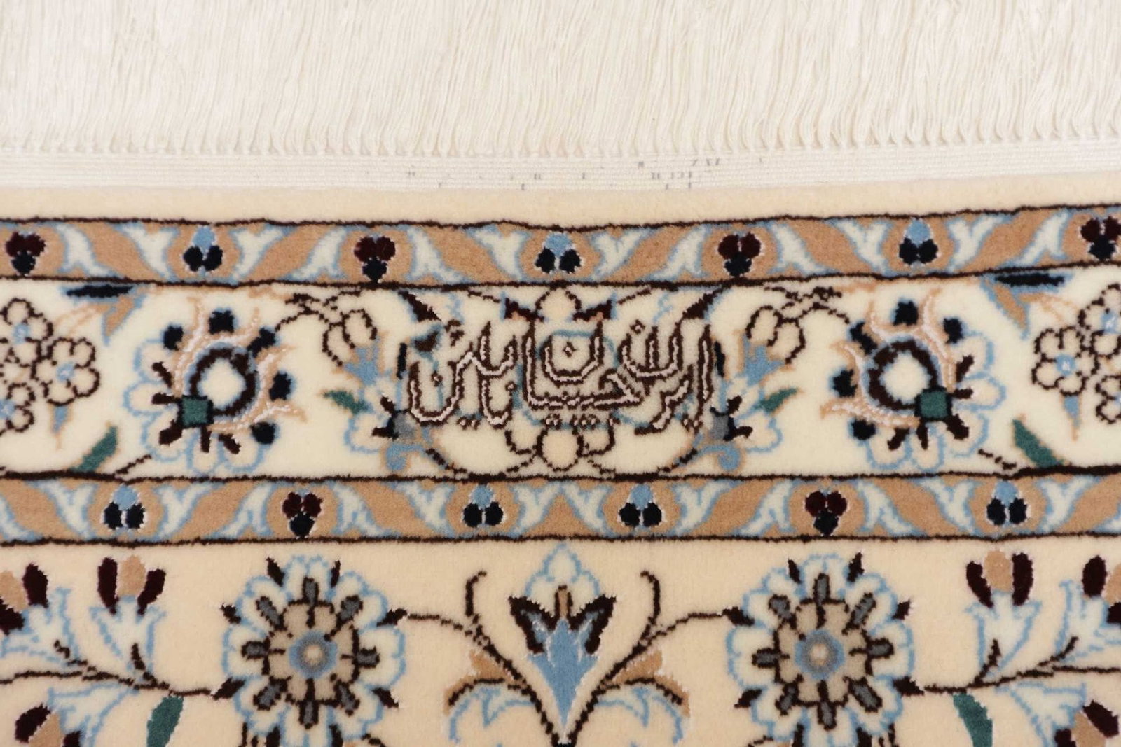 Die floralen Muster des Nain 6La Habibian Teppichs sind ein weiteres Highlight. Sie sind inspiriert von der reichen Flora Irans und verbinden sich harmonisch zu einem kunstvollen Gesamtbild. Die Farbpalette umfasst sanfte, natürliche Töne, die sich perfekt in verschiedene Einrichtungsstile einfügen und eine beruhigende Atmosphäre schaffen. Die Zeichnungen sind detailgetreu und vermitteln einen Eindruck von Eleganz und Anmut. Die Verwendung komplexer Muster weist zudem auf die hohe Knotendichte hin, die mit viel Geduld und meisterlichem Können gefertigt wird. Solche Designs sind nicht nur ästhetisch ansprechend, sondern tragen auch zur kulturellen Identität der Region bei.