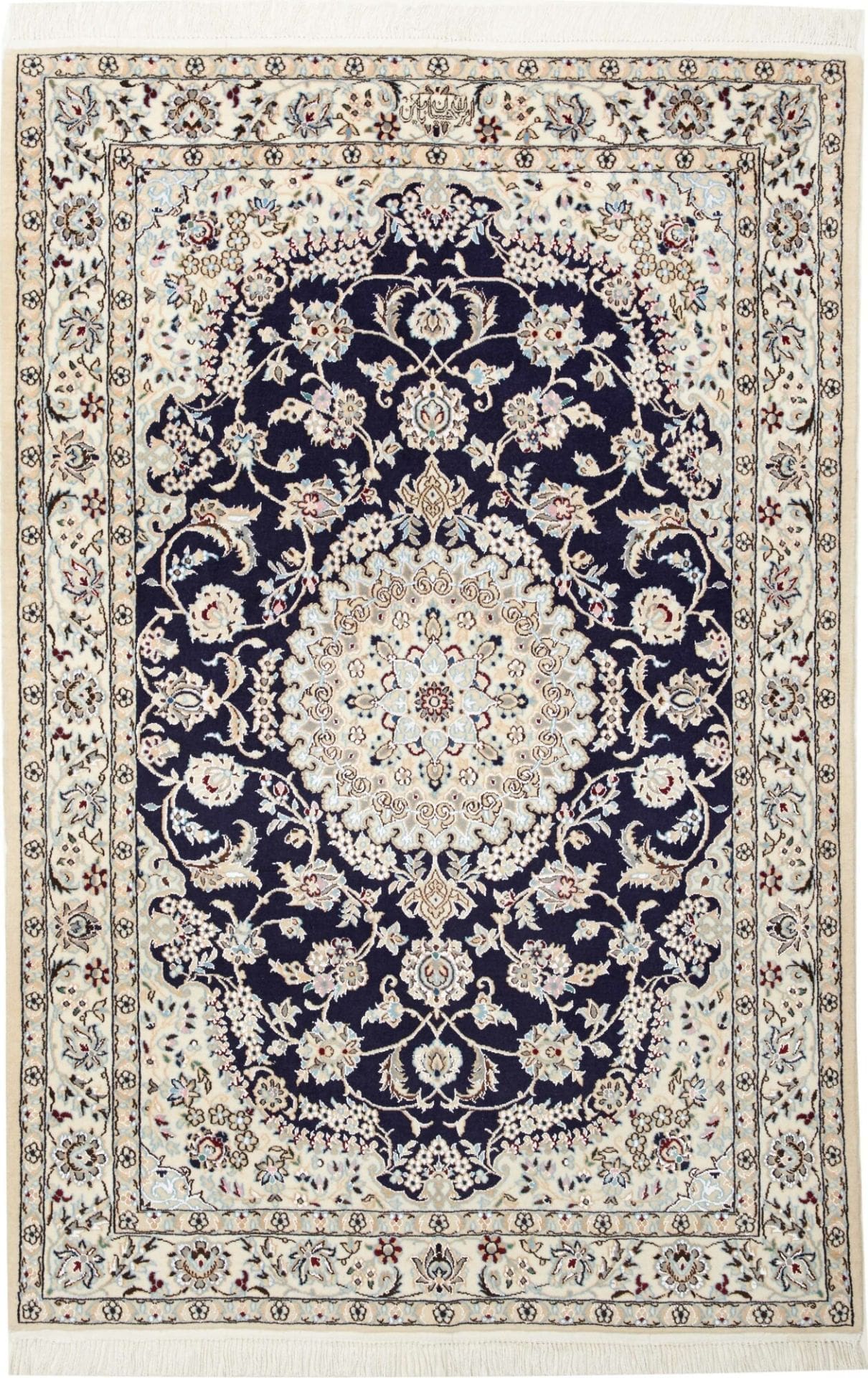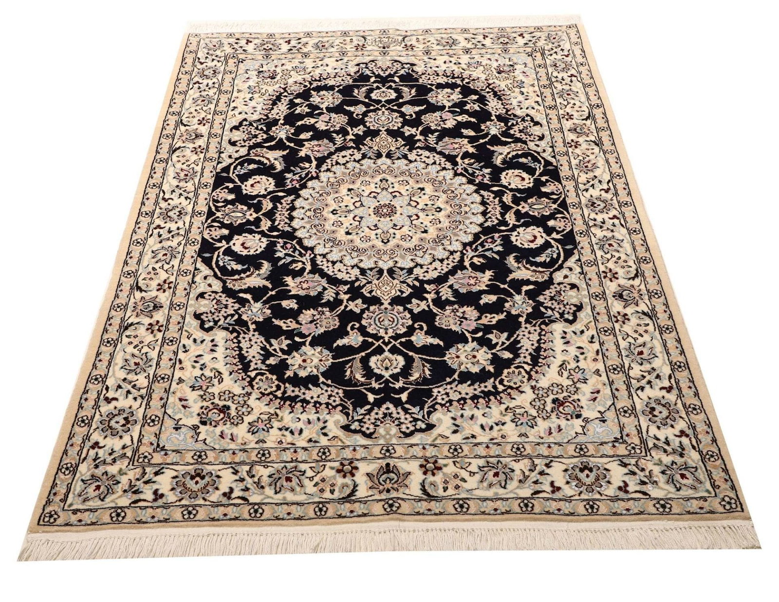 Nain Teppich | Knotendichte: ca. 900.000 Knoten/m² | Material: 100% Schurwolle (Flor), 100% Baumwolle (Kette) | Größe: 105 x 155 cm | Zustand: Handgeknüpft, exklusive Qualität | Ursprung: Iran, Provenienz Nain | Höhe: ca. 5-7 mm | Stil: Klassische florale Muster und kräftige Farbkontraste