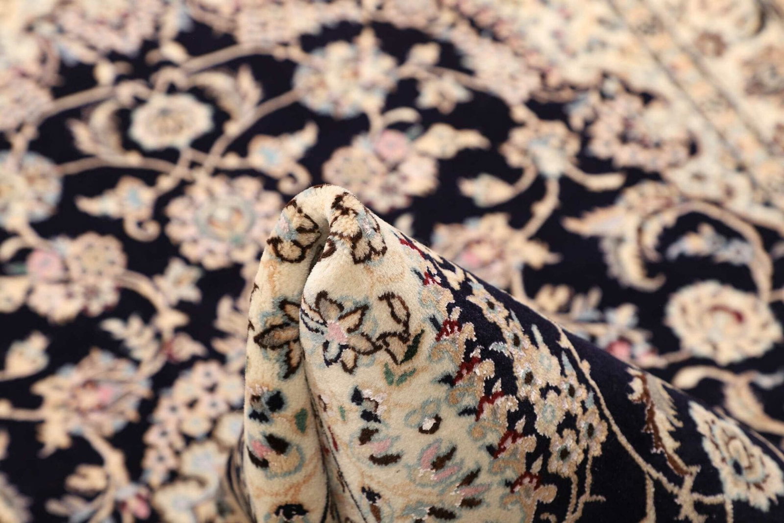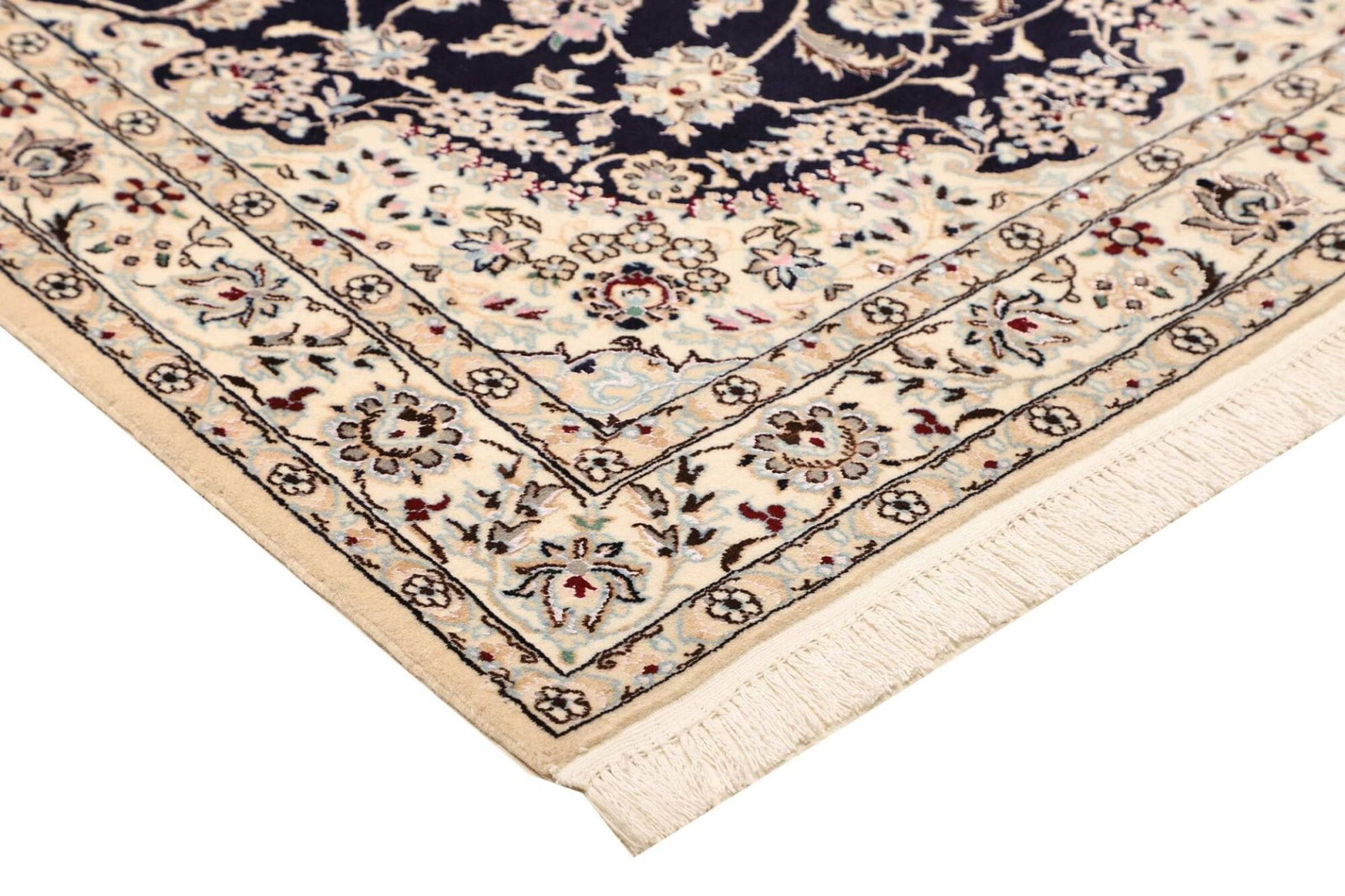 Das florale Muster des Nain Teppichs 6La ist ein Paradebeispiel für die traditionelle Kunst der Teppichgestaltung. Die Farben sind sorgfältig ausgewählt und harmonisch aufeinander abgestimmt. Typische Farbgebungen, die in Nain-Teppichen verwendet werden, sind Blau- und Cremetöne, die dem Teppich eine zeitlose Eleganz verleihen. Die floralen Motive sind kunstvoll gestaltet und strahlen eine gewisse Pracht und Anmut aus.