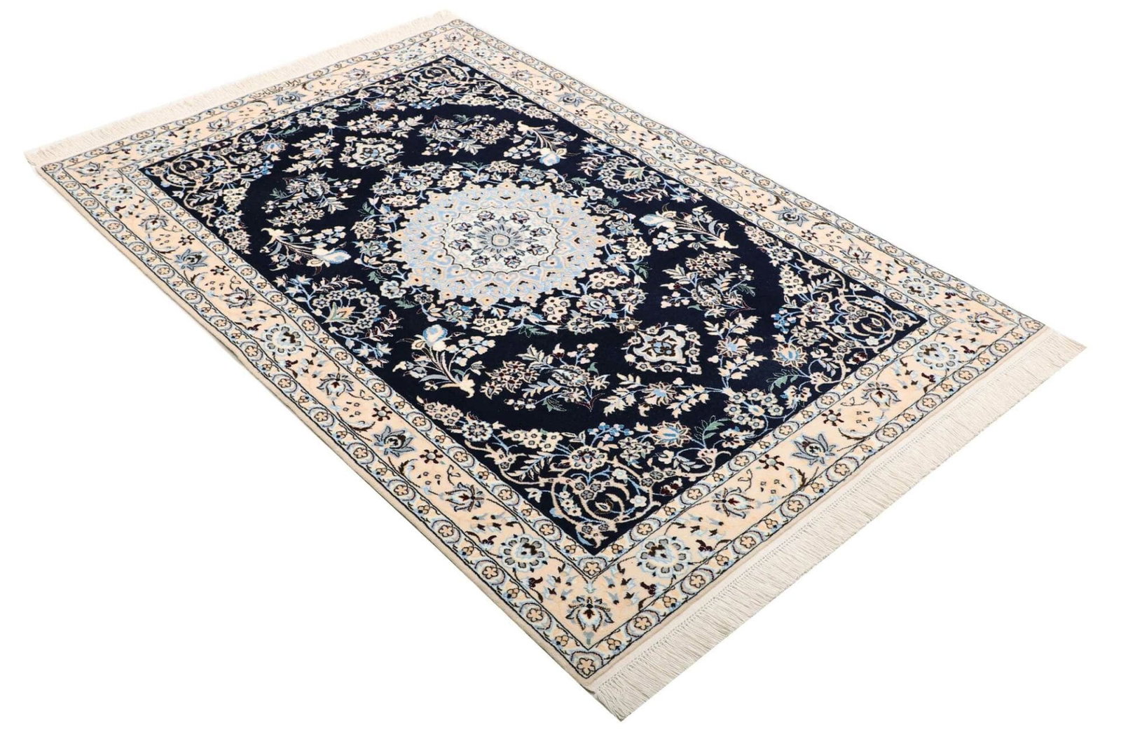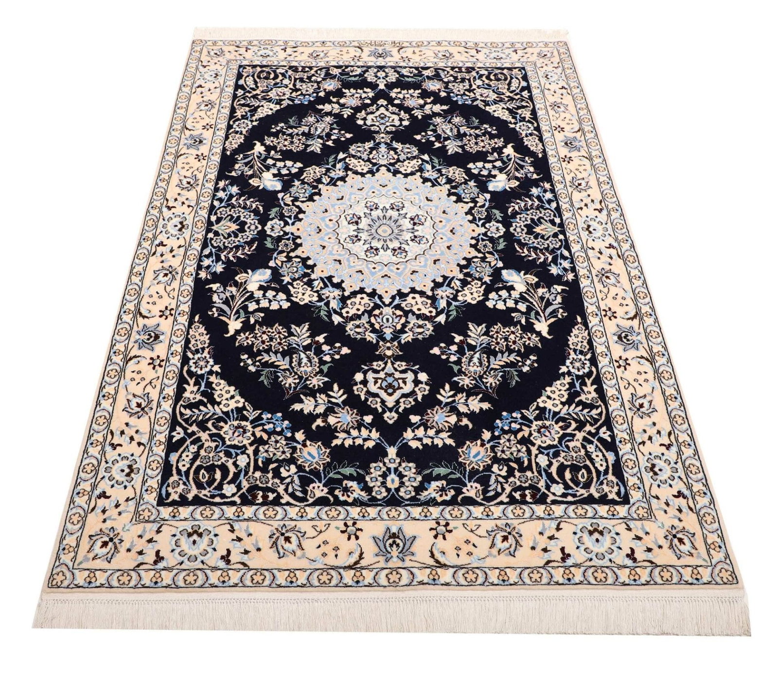 3916$Ursprünglicher Preis war: 3916$3081$Aktueller Preis ist: 3081$Nain Teppich | Knotendichte: 900.000 Knoten/m² | Material: 100% Schurwolle (Flor), 100% Baumwolle (Kette) | Größe: 113 x 170 cm | Herkunft: Iran | Zustand: Exzellente handgeknüpfte Qualität | Muster: Klassische florale und geometrische Motive
