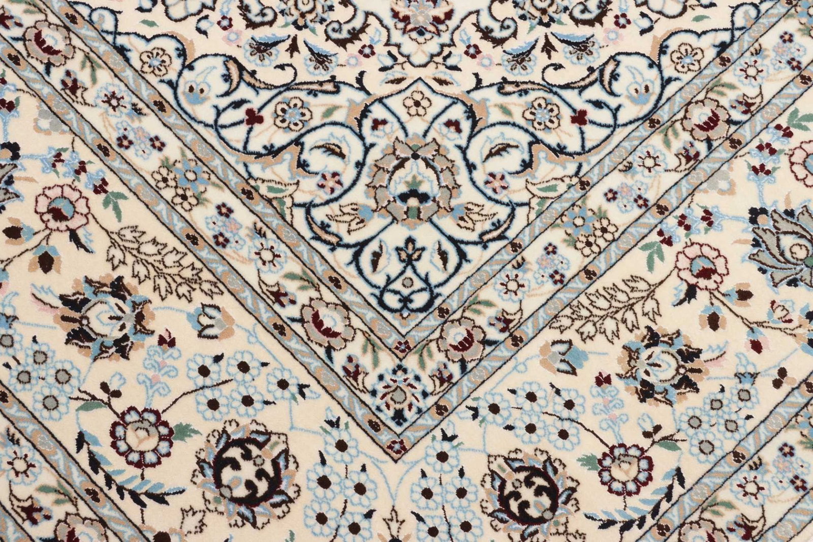 9869$Ursprünglicher Preis war: 9869$6874$Aktueller Preis ist: 6874$Nain Teppich | Knotendichte: 900.000 Knoten/m² | Muster: Klassische florale Motive | Größe: 213 x 251 cm | Material: 100% Schurwolle (Flor), 100% Baumwolle (Kette) | Herkunft: Iran | Zustand: Handgeknüpfte Qualität