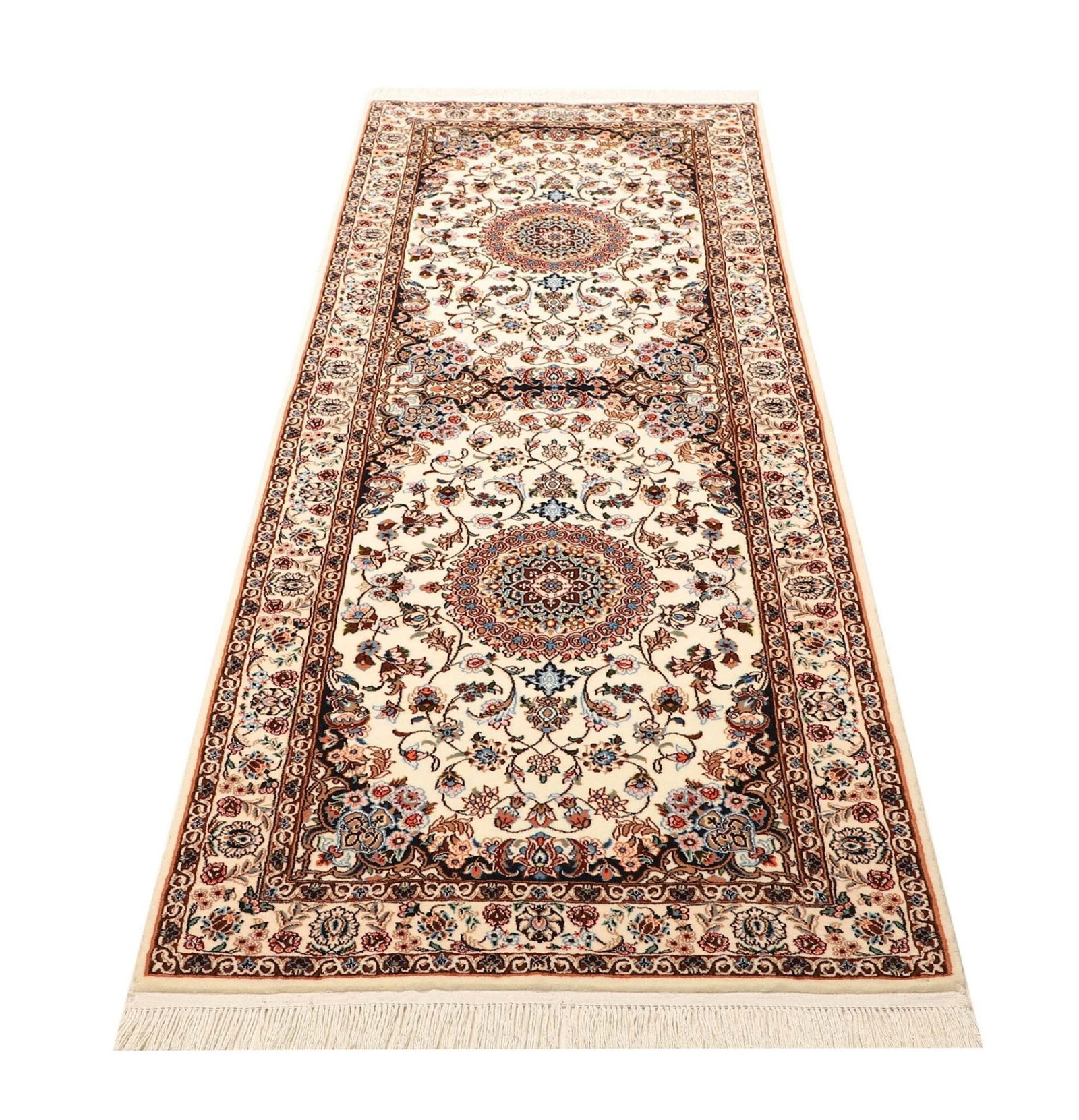 Nain Teppich 79 x 218cm, florales Muster, Schurwolle, handgeknüpft