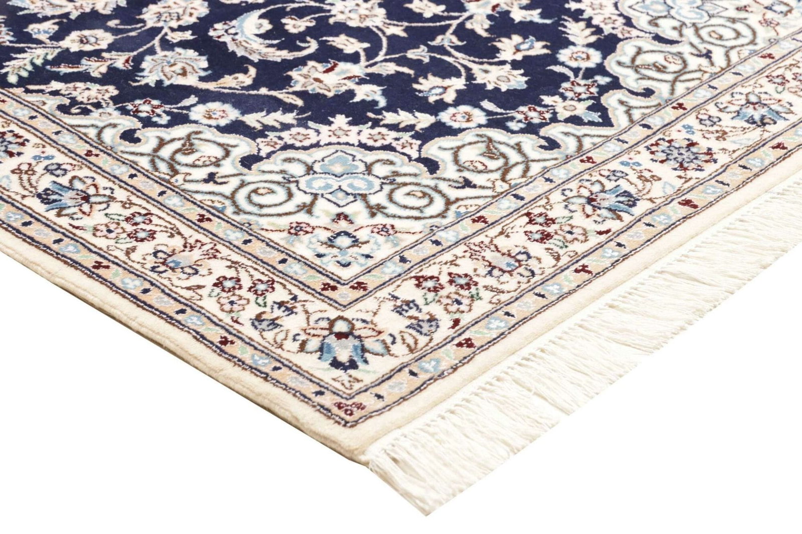 Die Qualität eines Nain Teppichs erkennen Sie an der Knotendichte und der Verarbeitung. Ein hochwertiger Teppich hat eine hohe Knotenzahl, was zu einem detailreichen Muster und Langlebigkeit führt. Auch die Schurwolle sollte weich und natürlich glänzend sein.