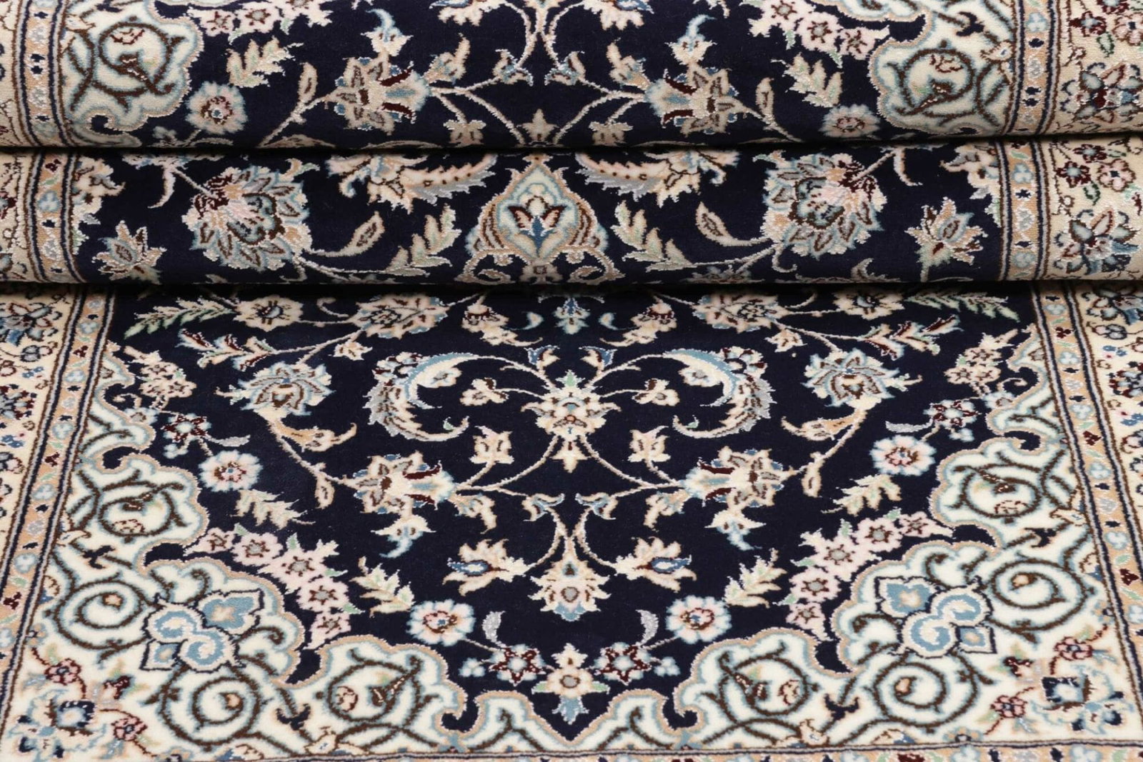 Der florale Charakter dieses Nain Teppichs ist prägend für sein Design und spiegelt die Pracht der Natur wider. Florale Muster sind ein häufiges Motiv in der persischen Teppichkunst und stehen für Schönheit und Eleganz. Die detailreiche Gestaltung zeigt die Handwerkskunst der Teppichknüpfer und vermittelt ein Gefühl der Zeitlosigkeit und des Luxuriösen, das jeden Raum aufwertet.