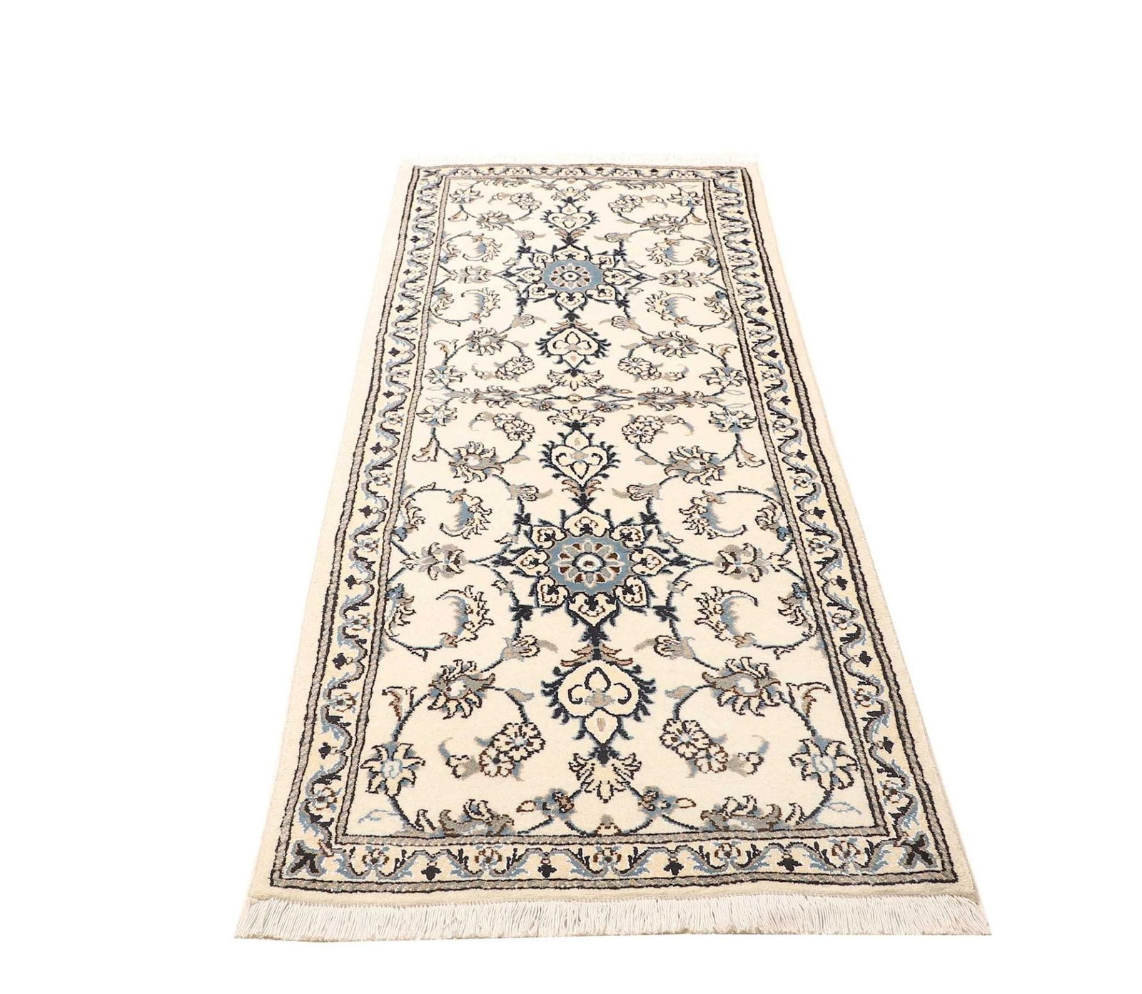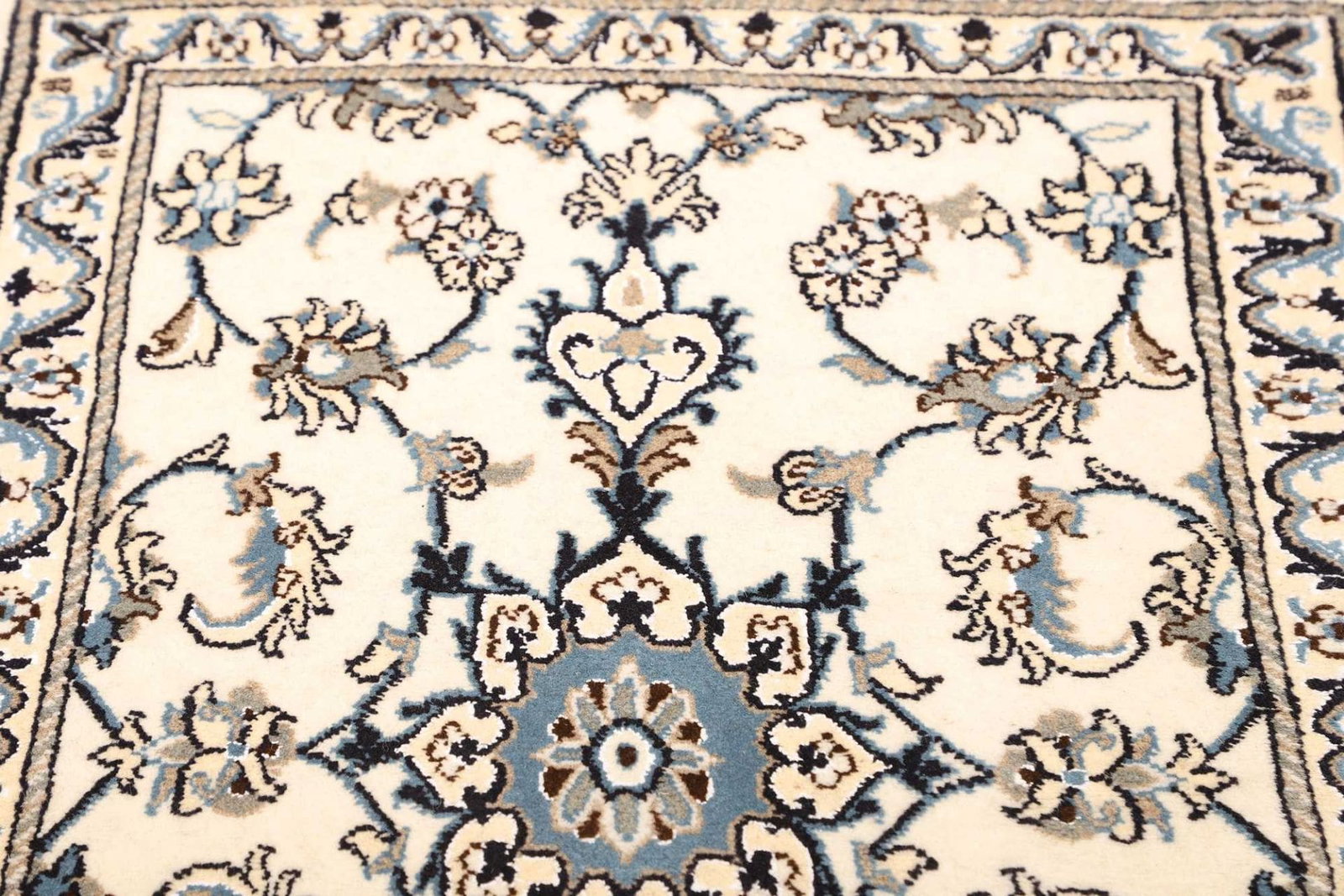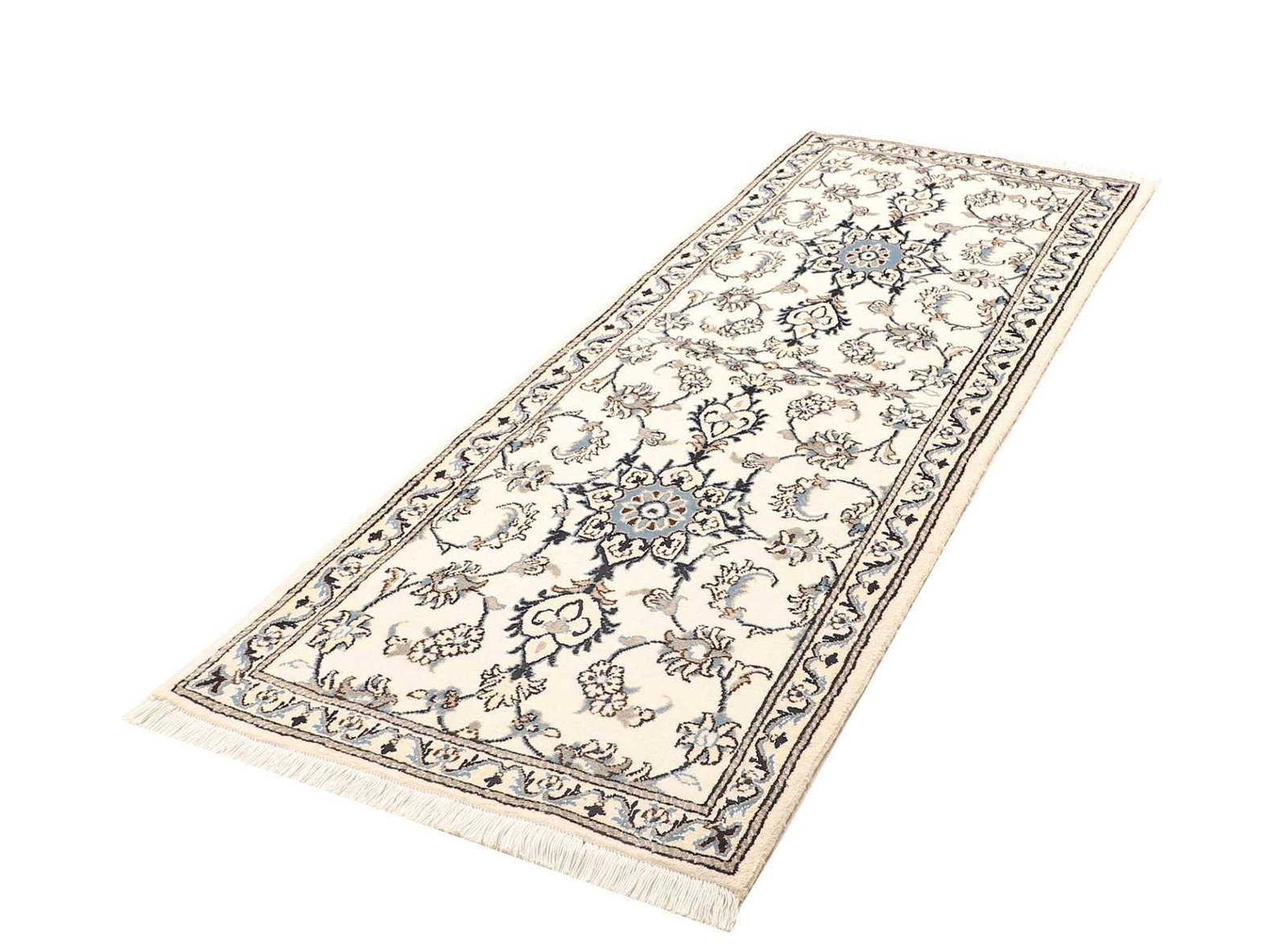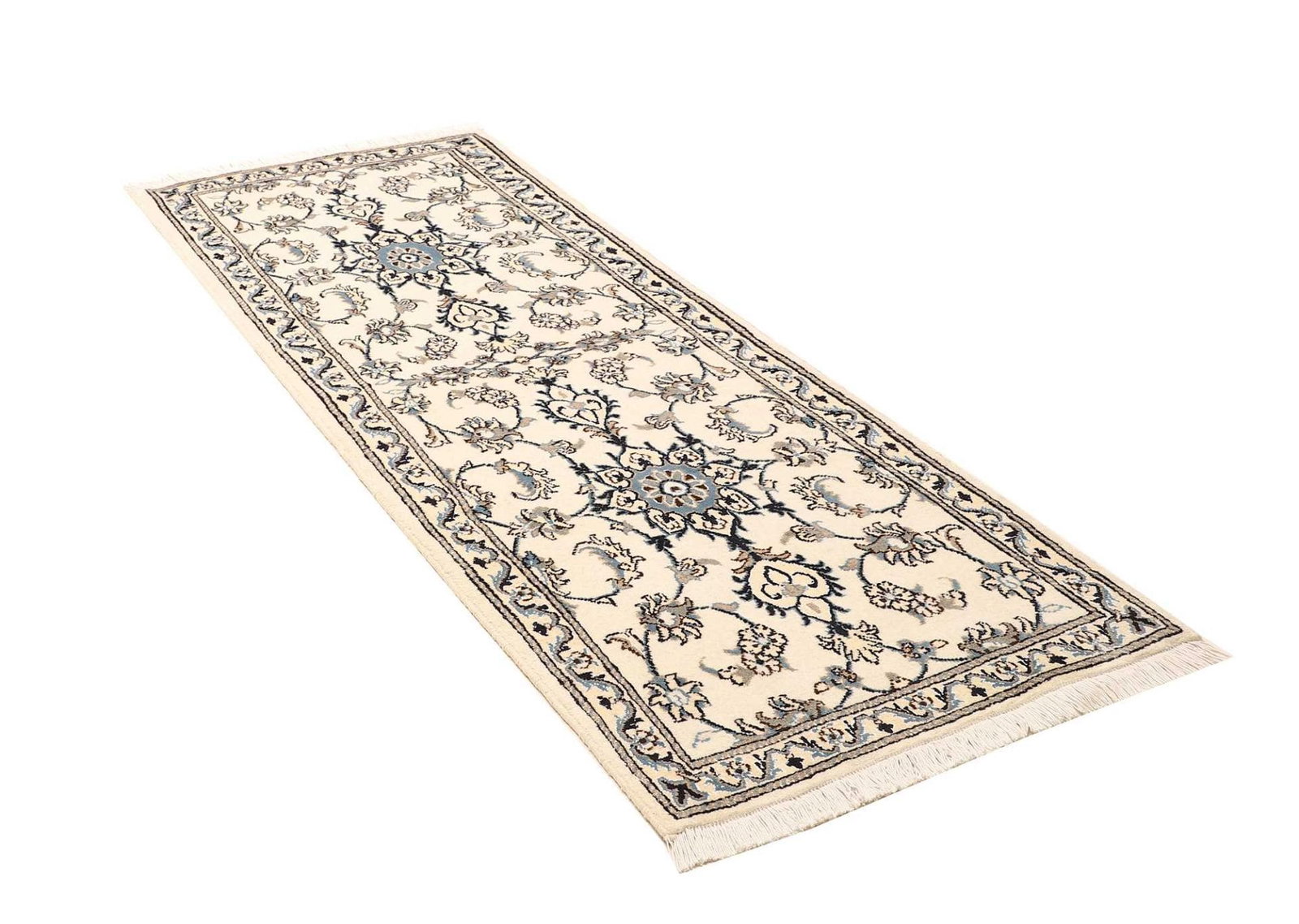 Nain Teppich | Knotendichte: ca. 200.000 Knoten/m² | Material: 100% Schurwolle (Flor) und 100% Baumwolle (Kette) | Größe: 81 x 210 cm | Handgeknüpfte Qualität | Herkunft: Iran | Exklusive florale Musterung | Angenehme Haptik und schalldämpfende Eigenschaften