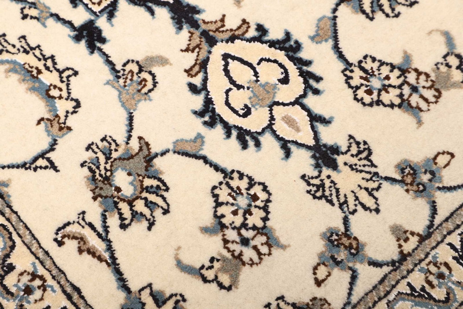 Die floralen Muster des Nain Teppichs sind charakteristisch und verleihen jedem Raum eine elegante und einladende Atmosphäre. Diese Muster sind oft in sanften Pastelltönen dargestellt und kombinieren verschiedene Blumen- und Blattornamente, die die Schönheit der Natur widerspiegeln. Solche Designs passen perfekt zu klassisch-eleganten, modernen und sogar rustikalen Einrichtungsstilen.