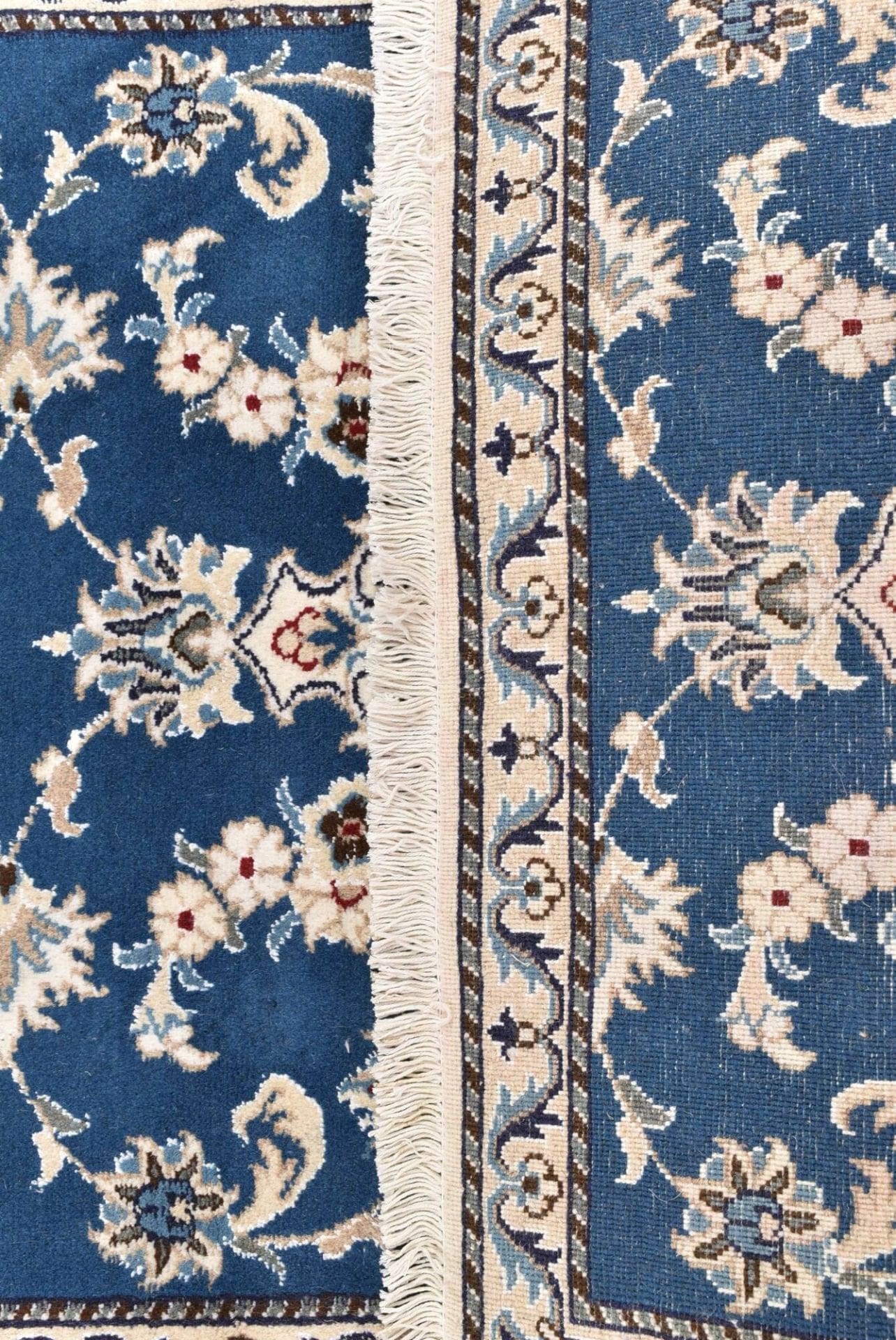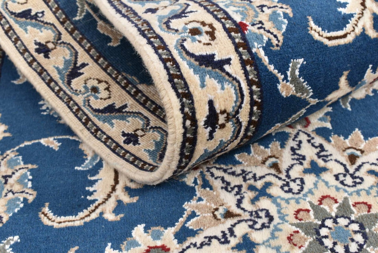 Die Knotendichte ist ein entscheidendes Merkmal der Qualität eines Teppichs. Ein höherer Knotenzahl pro Quadratmeter bedeutet ein aufwendigeres Design und eine größere Detailtreue, was bei diesem Nain Teppich hervorragend zur Geltung kommt. Mit jedem Knoten wird die kunstvolle Handwerkskunst sichtbar, die seit Generationen in der Region Nain hochgehalten wird.