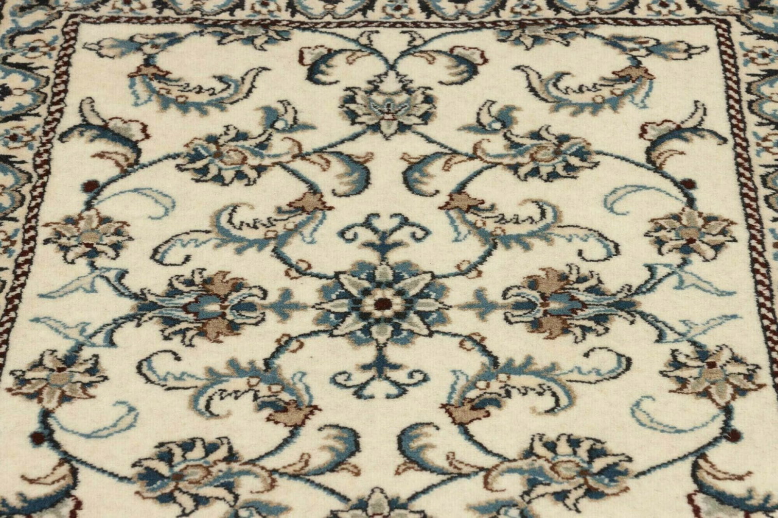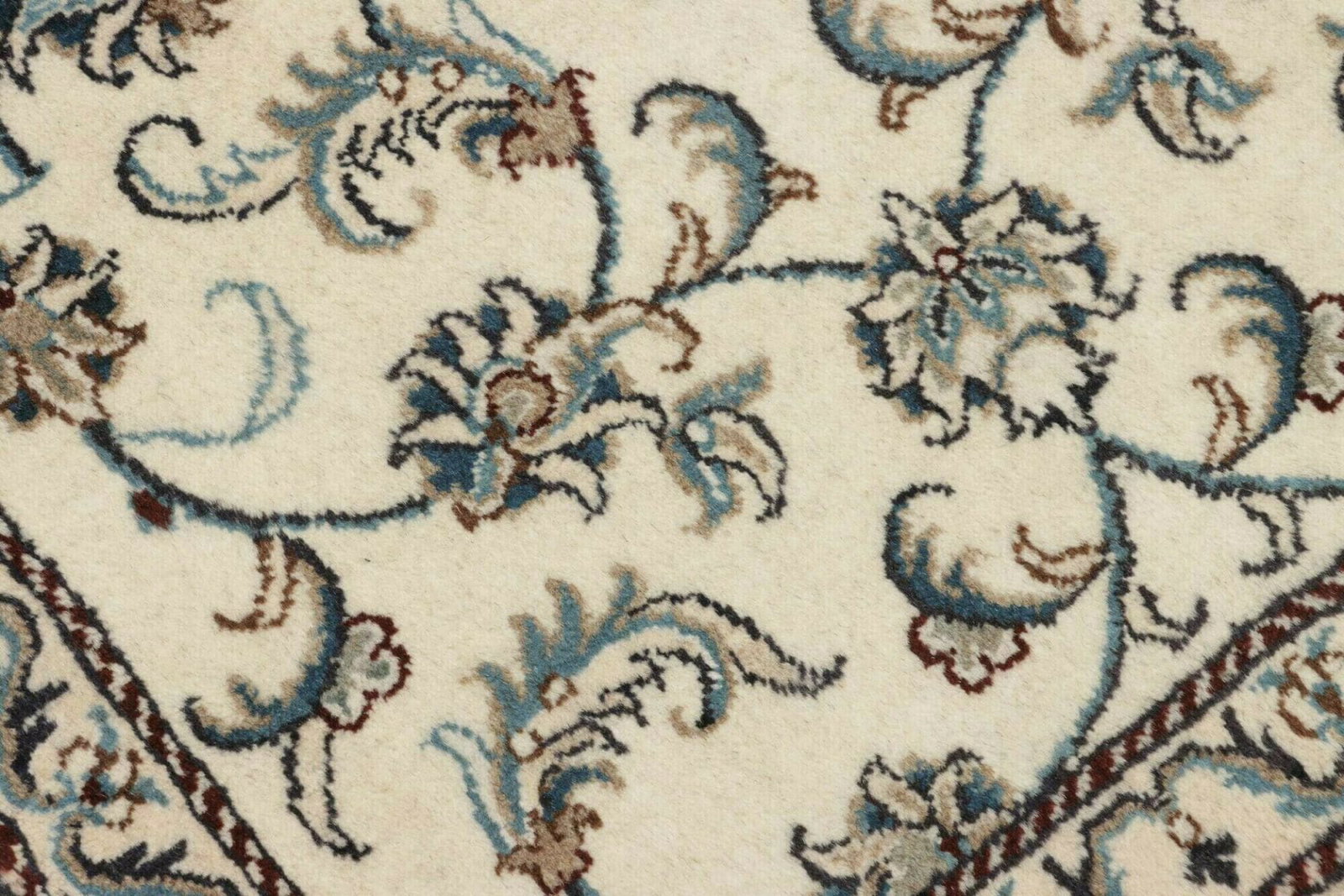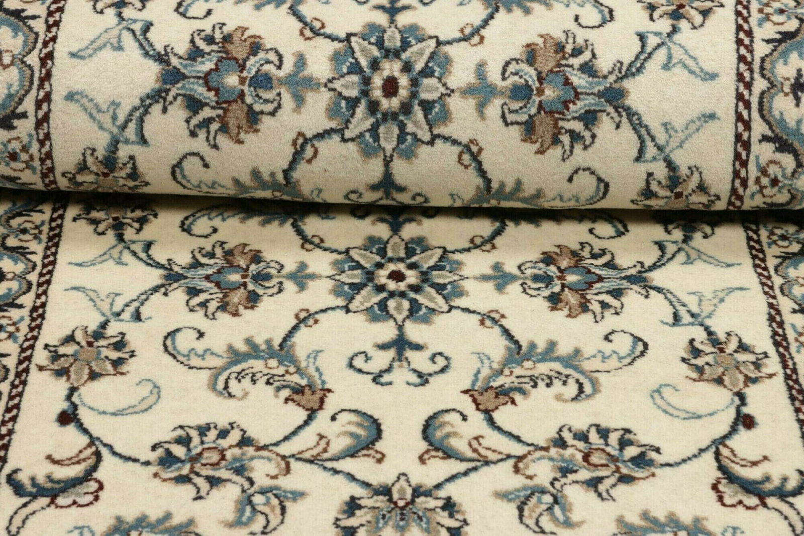 Die floralen Muster des Nain Teppichs sind das Herzstück seines Designs. Diese Motive sind häufig inspiriert von der Natur und symbolisieren Wachstum, Leben und Erneuerung. Die subtile Farbpalette sorgt dafür, dass der Teppich sowohl in modernen als auch in traditionellen Wohnräumen harmonisch wirkt. Neben den floralen Designs finden sich auch arabeske Strukturen, die eine Aura von Eleganz und Stil verleihen.