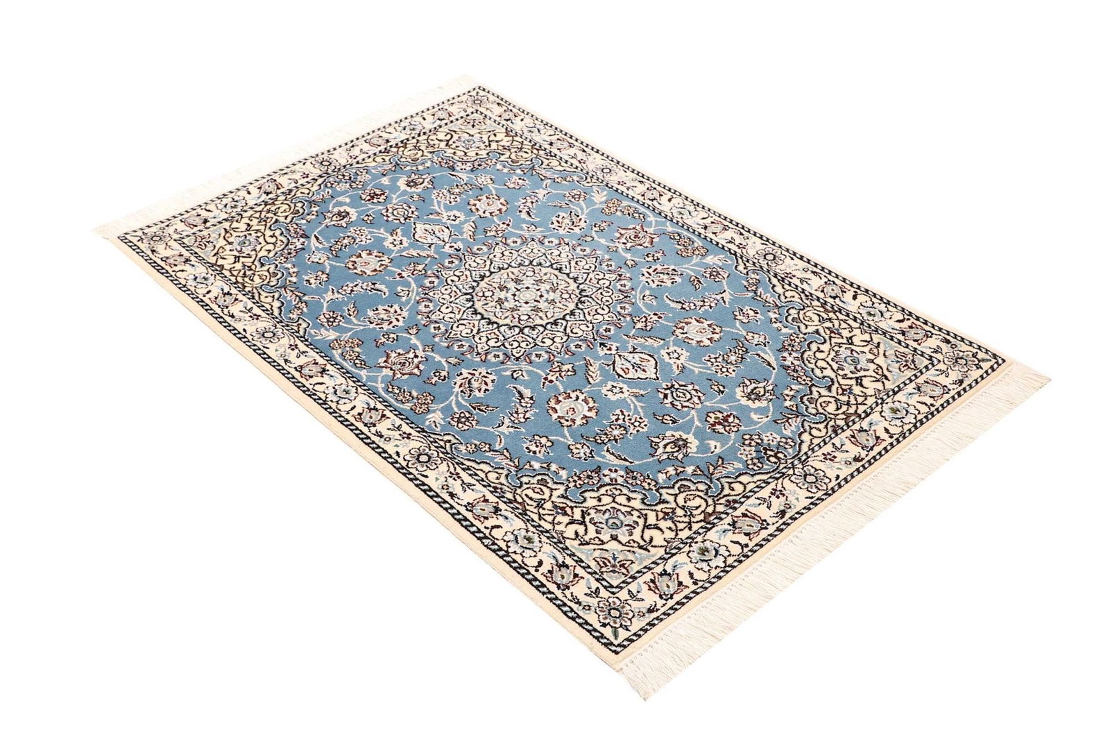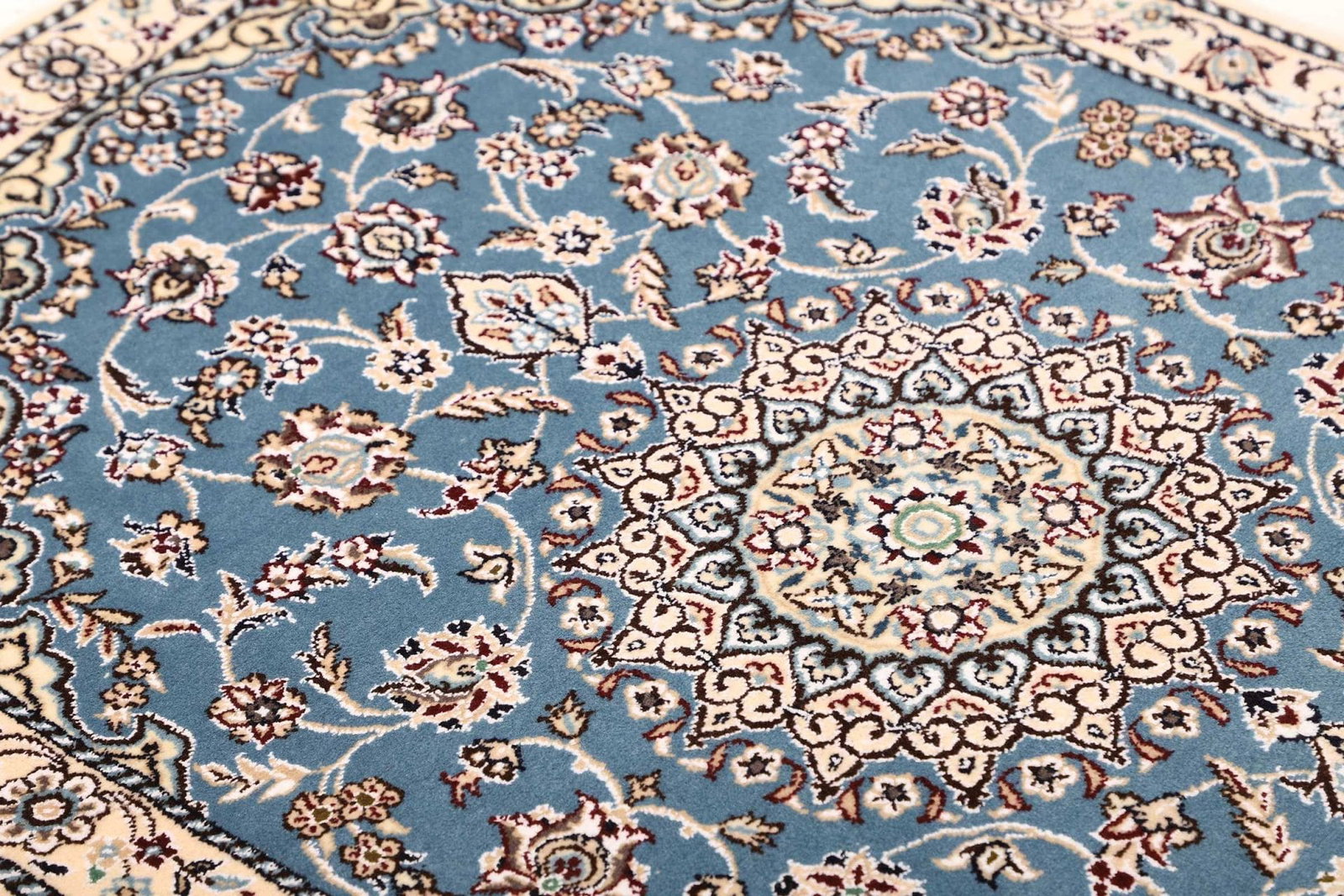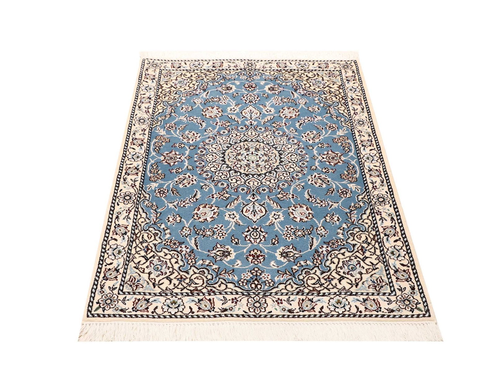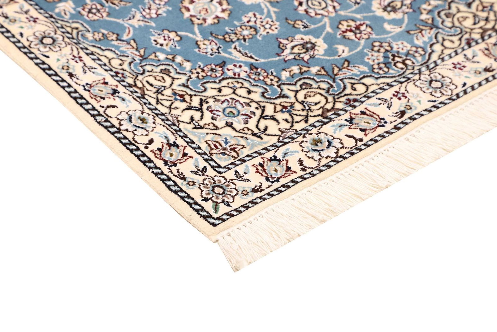 Die floralen Muster des Nain Teppichs sind eine Hommage an die Schönheit der Natur. Diese Designs sind nicht nur ästhetisch ansprechend, sondern tragen auch symbolische Bedeutungen. In der persischen Kultur stehen florale Motive häufig für das Leben und die Fruchtbarkeit. Die harmonische Farbpalette, typischerweise in sanften Blau- und Beigetönen, sorgt dafür, dass dieser Teppich sich nahtlos in verschiedene Einrichtungsstile fügt – von klassisch bis modern.