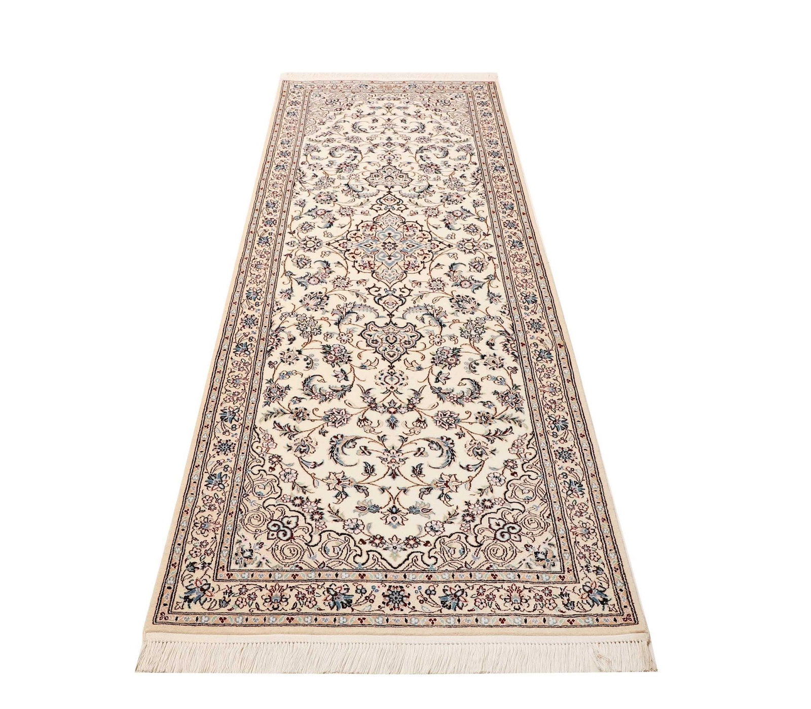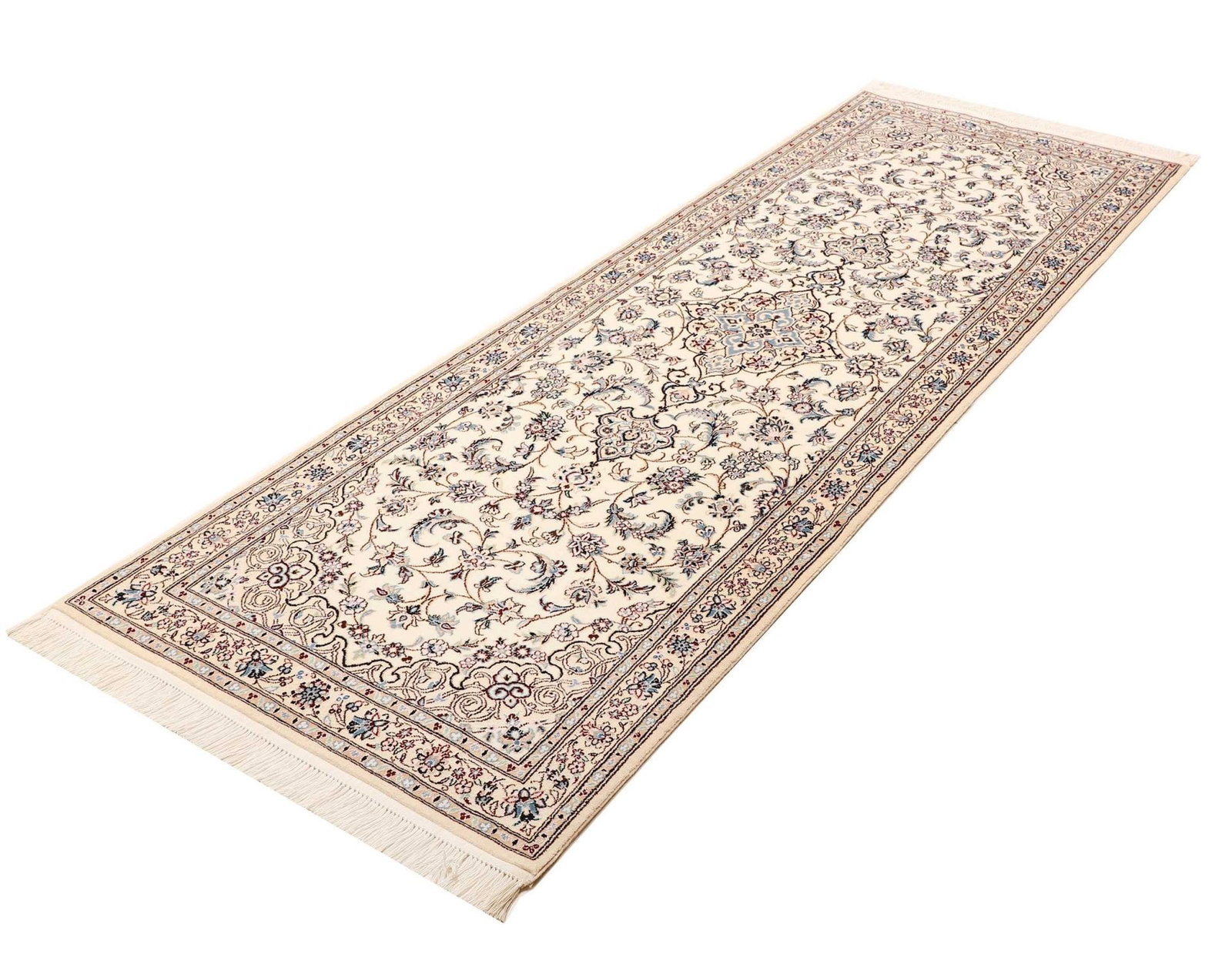 Handgeknüpfter Nain Teppich | Knotendichte: ca. 900.000 Knoten/m² | Material: 100% Schurwolle | Kette: 100% Baumwolle | Größe: 82 x 221 cm | Herkunft: Iran | Muster: Klassische florale Motive | Zustand: Exzellente Qualität