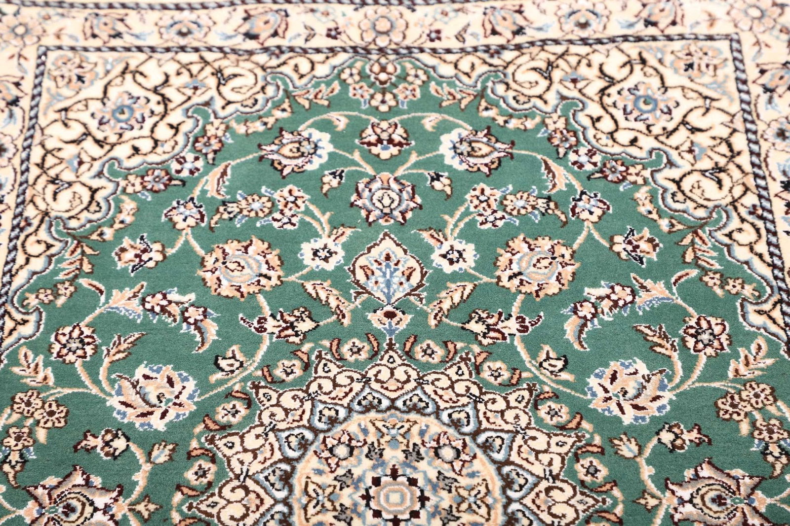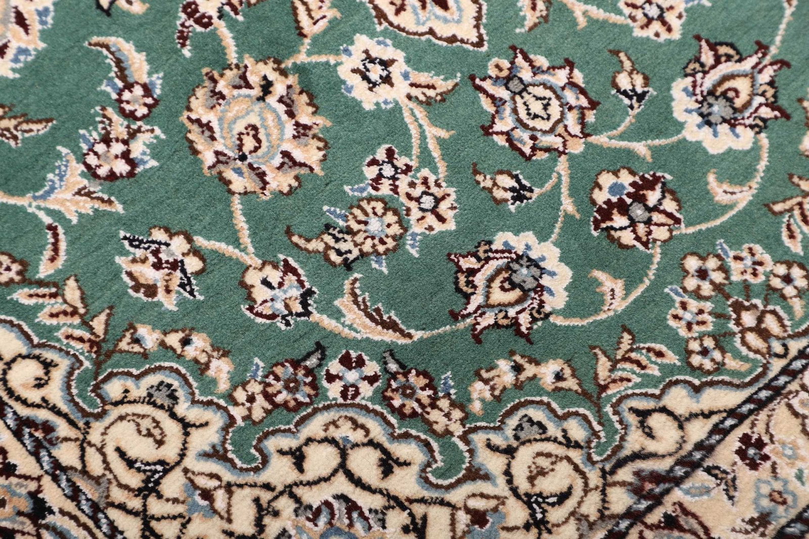 Die Stadt Nain in Iran ist berühmt für ihre Teppichherstellung, und die Tradition des Teppichknüpfens hat dort eine lange Geschichte. Nain Teppiche werden meist in persischer Knotentechnik gefertigt, was zu einer hohen Dichte der Knoten führt und die außergewöhnliche Detailtreue der Designs ermöglicht. Die Stadt Nain, die etwa 150 Kilometer von Isfahan entfernt liegt, hat sich als Zentrum für die Produktion exquisiter Teppiche etabliert. Teppiche aus dieser Region sind hoch geschätzt und gelten als ein Symbol für persische Handwerkskunst und Qualität.