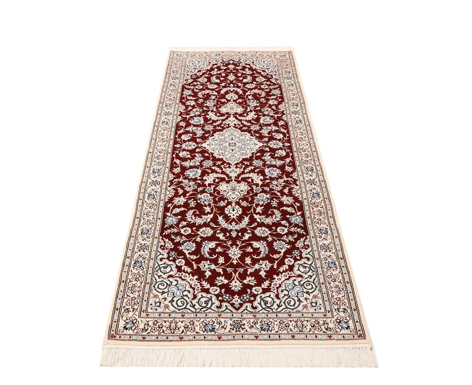 Nain Teppich | Knotendichte: ca. 900.000 Knoten/m² | Material: 100% Schurwolle (Flor), 100% Baumwolle (Kette) | Größe: 83 x 210 cm | Herkunft: Iran | Zustand: Exklusiv und hochwertig | Handgeknüpft, florale Musterung