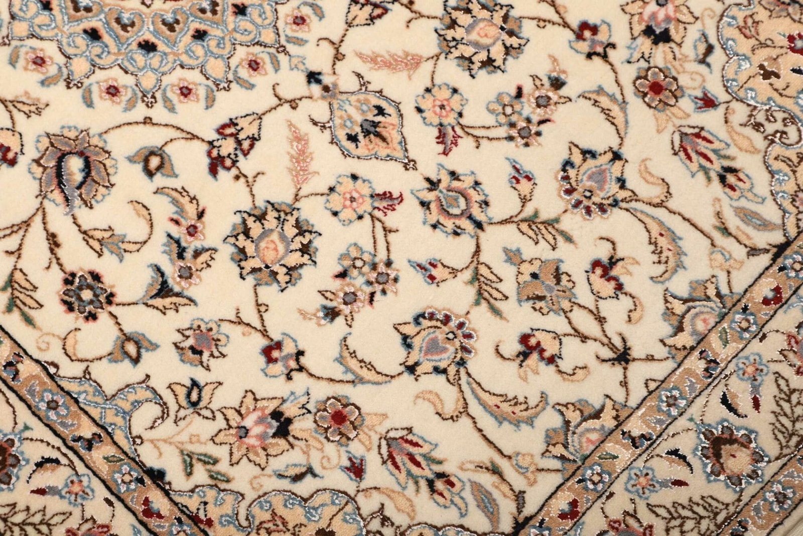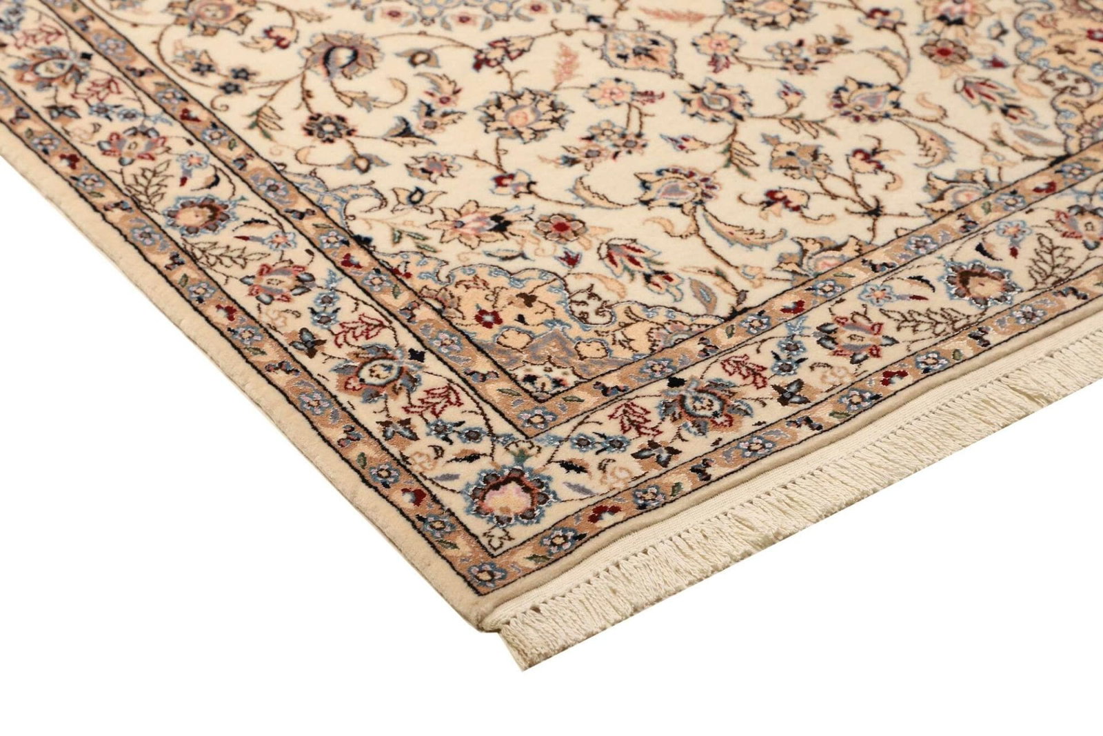 Der Nain Teppich ist ein faszinierendes Stück der Handwerkskunst, das nicht nur durch seine ästhetische Anziehungskraft besticht, sondern auch durch die hohe Qualität seiner Materialien und die aufwendige Herstellungstechnik. Mit einem floralen Muster, das in lebendigen Farben erstrahlt, verleiht dieser handgeknüpfte Teppich jedem Raum eine elegante Note und sorgt für eine wohlige Atmosphäre. Gefertigt aus reiner Schurwolle, bietet er nicht nur eine angenehme Haptik, sondern ist auch besonders langlebig und pflegeleicht.