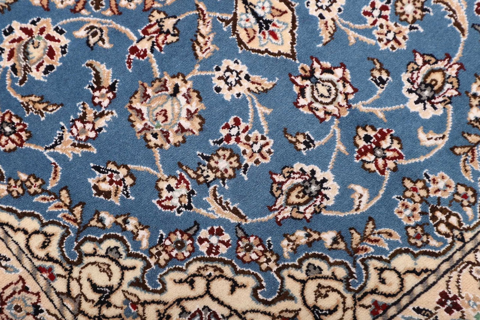 Die handgeknüpfte Technik ist ein zentrales Merkmal der Nain Teppiche und erfordert große Geschicklichkeit und Geduld. Jedes Stück wird von talentierten Kunsthandwerkern in traditioneller Weise hergestellt, wodurch jedes Exemplar ein Unikat darstellt.