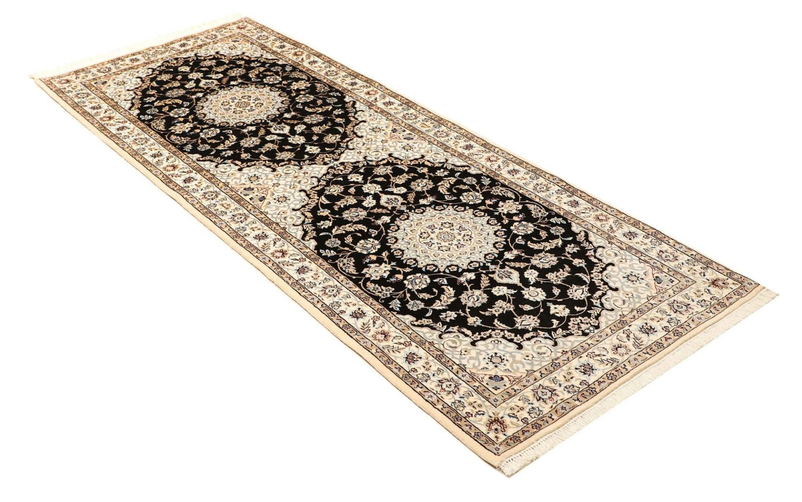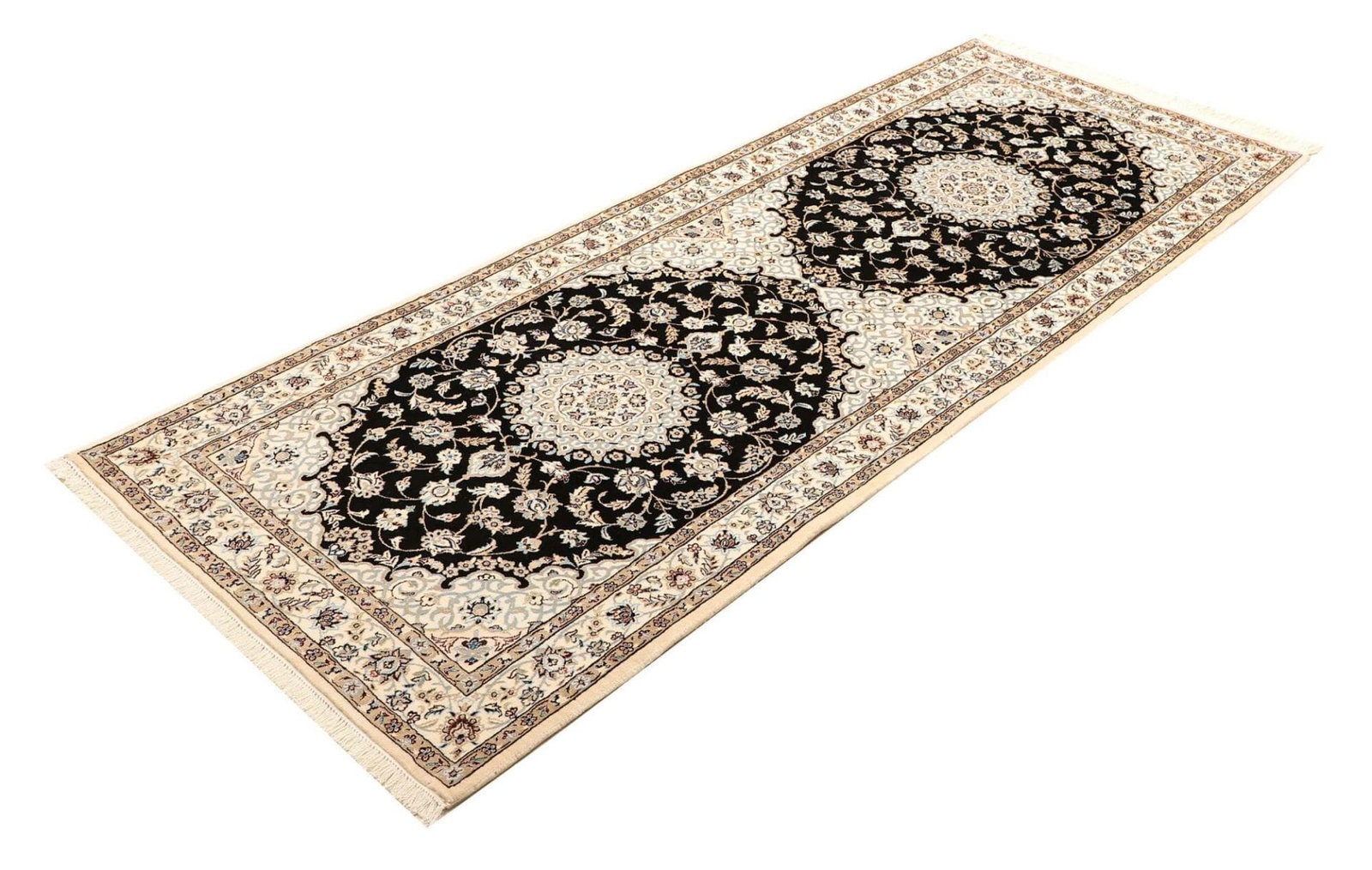Nain Teppich | Knotendichte: ca. 900.000 Knoten/m² | Material: 100% Schurwolle (Flor) und 100% Baumwolle (Kette) | Größe: 86 x 218 cm | Herkunft: Iran | Zustand: Handgeknüpft und hochwertig verarbeitet | Muster: Exklusive florale und geometrische Designs
