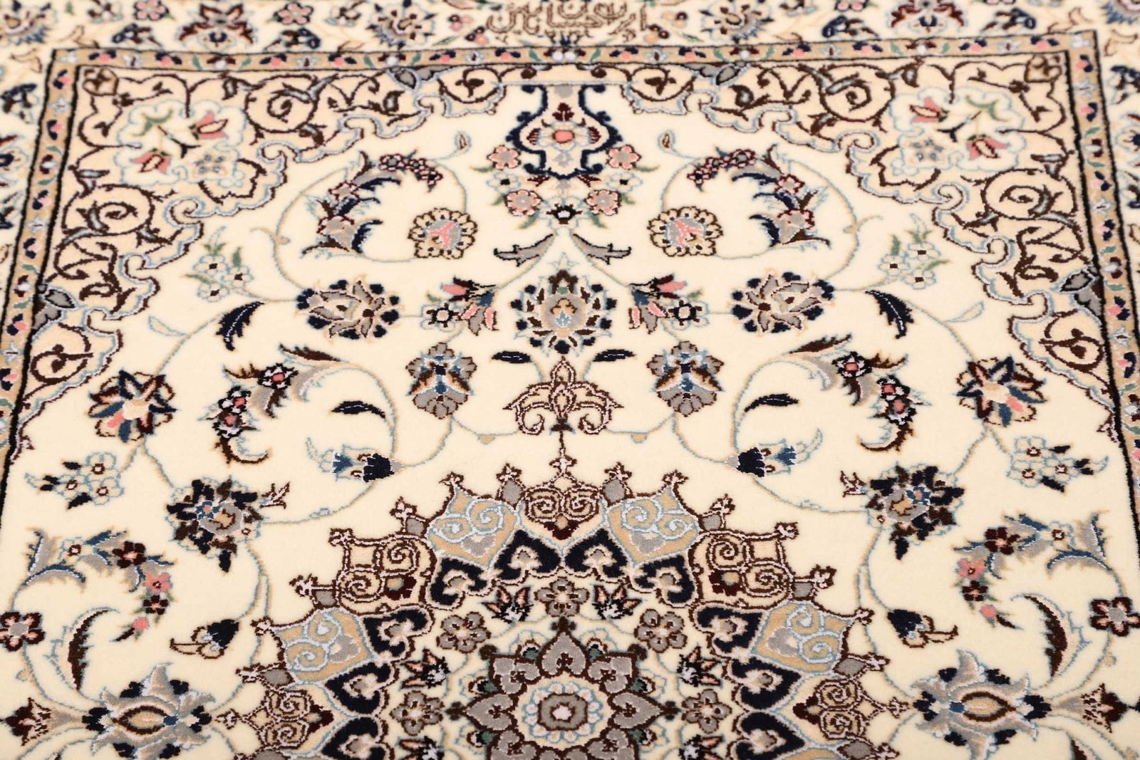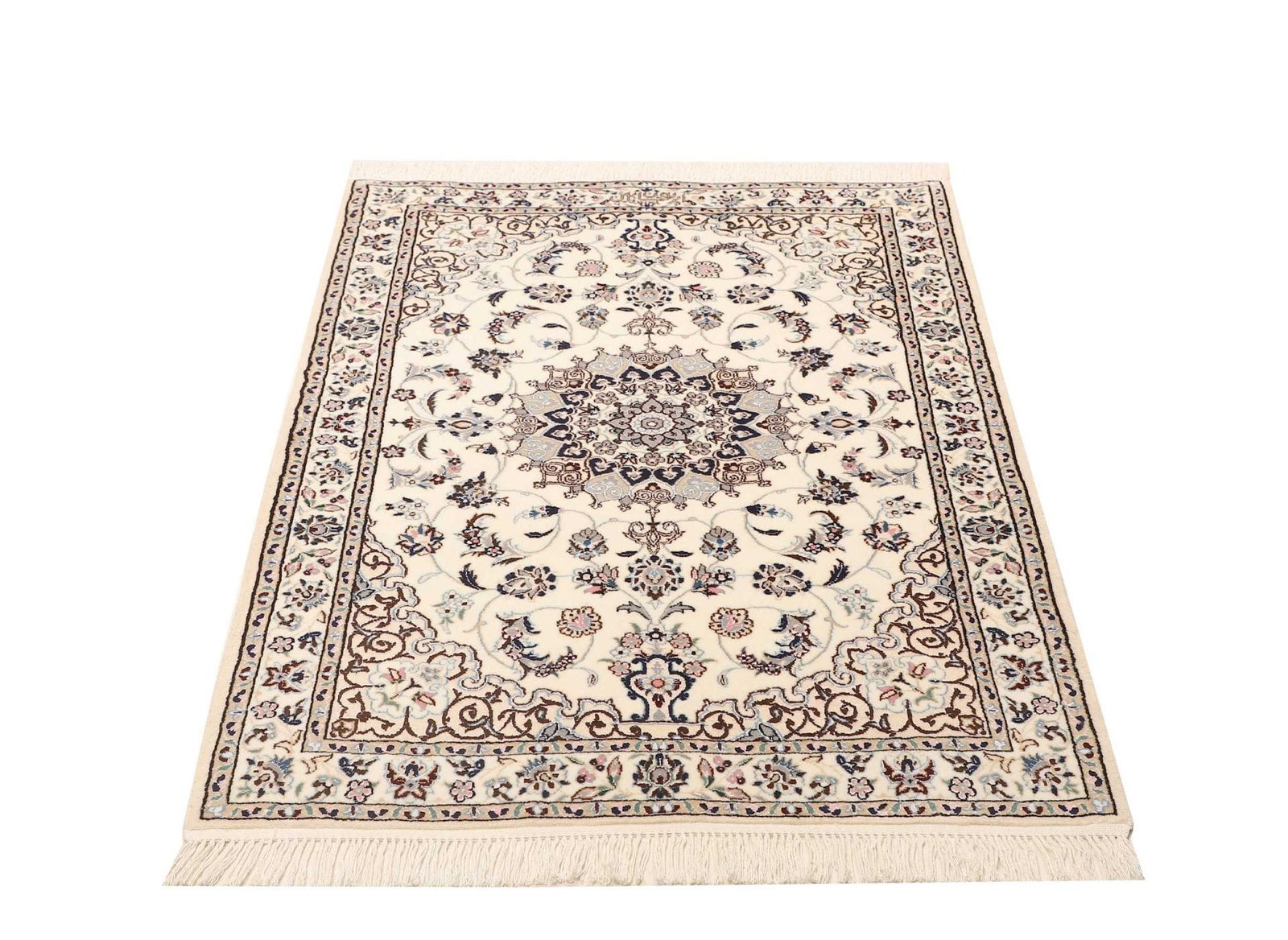 1867$Ursprünglicher Preis war: 1867$1571$Aktueller Preis ist: 1571$Nain Teppich | Knotendichte: ca. 900.000 Knoten/m² | Material: 100% Schurwolle (Flor), 100% Baumwolle (Kette) | Größe: 85×120 cm | Zustand: Exzellente handgeknüpfte Qualität | Herkunft: Iran, Nain | Höhe: ca. 5-7 mm | Exklusive florale Musterung und kräftige Farbkombinationen