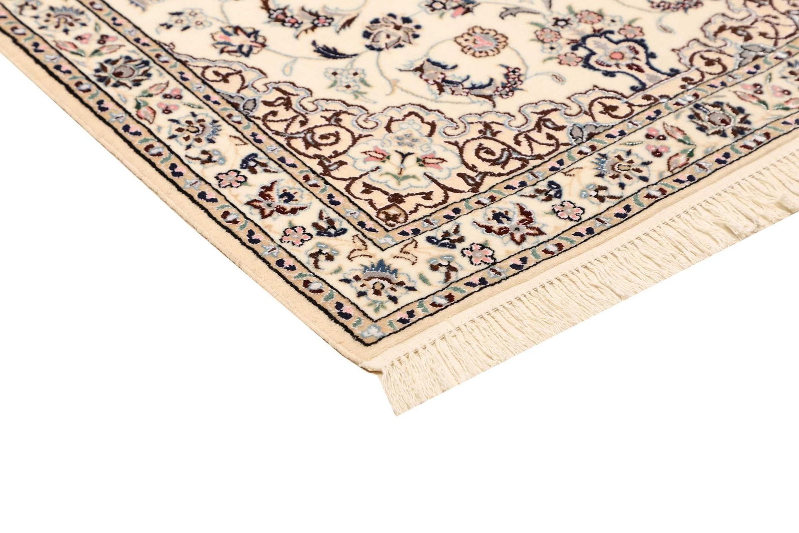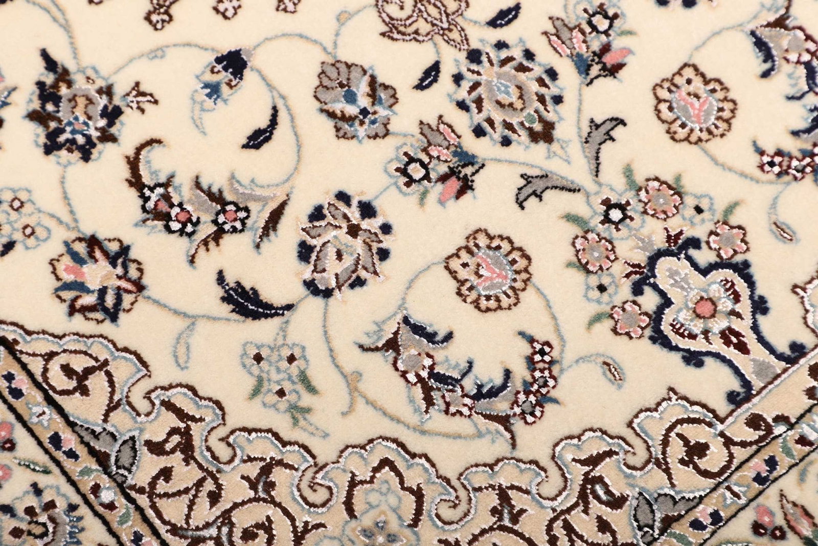 Das florale Muster des Nain Teppichs ist ein typisches Merkmal dieser Teppiche und spiegelt die Schönheit der Natur wider. Florale Designs sind in der orientalischen Teppichkunst weit verbreitet und symbolisieren oft Leben, Fruchtbarkeit und Schönheit. Die zarten Blumenmotive und die harmonischen Farbkombinationen sorgen dafür, dass dieser Teppich in jedem Raum ein echter Blickfang ist. Die Farbtöne sind meist in sanften Beige-, Blau- und Erdtönen gehalten, wodurch der Teppich sowohl in klassischen als auch in modernen Einrichtungsstilen harmonisch integriert werden kann.