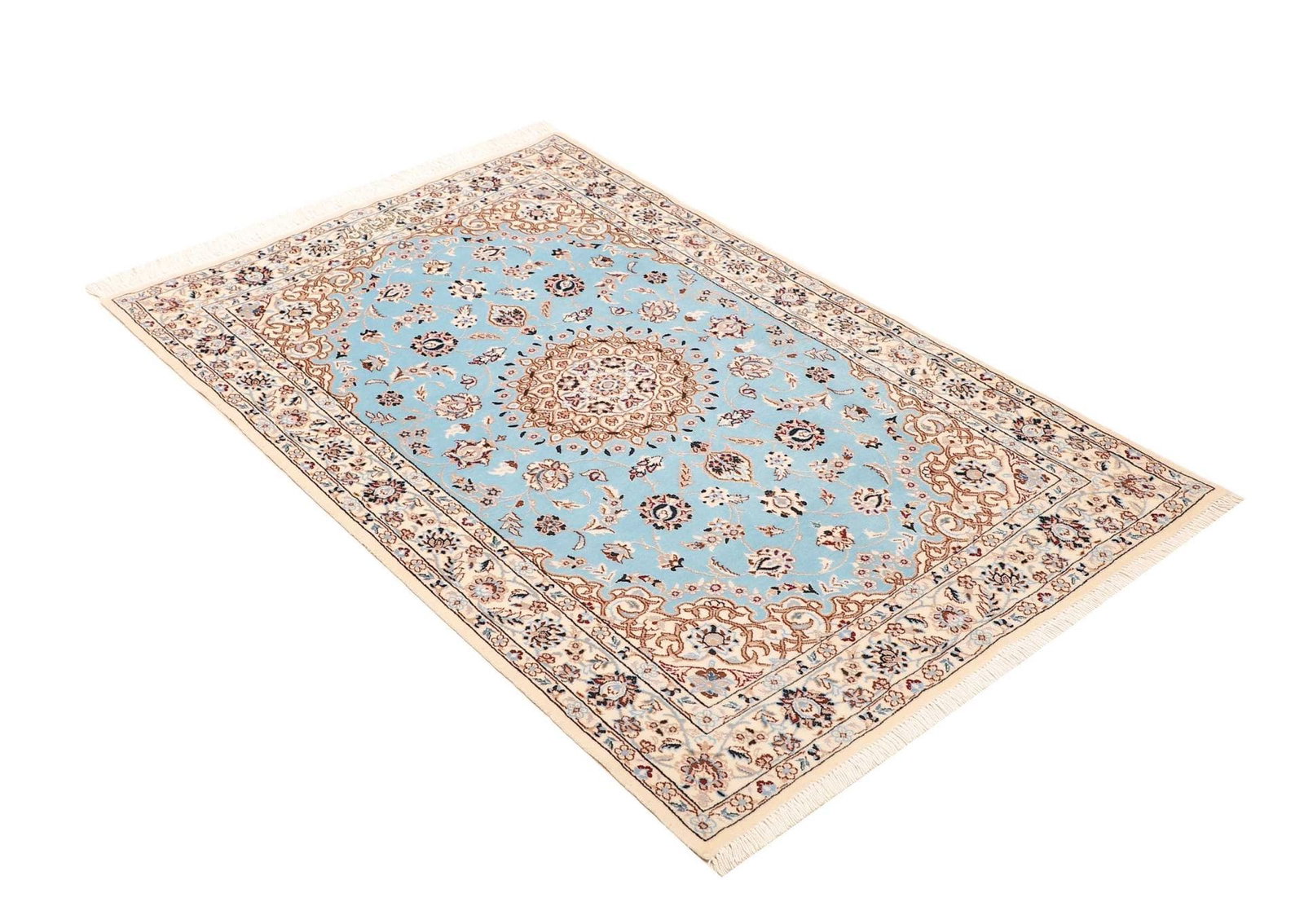 Nain Teppich 88 x 132cm, handgeknüpft, florale Muster, Schurwolle