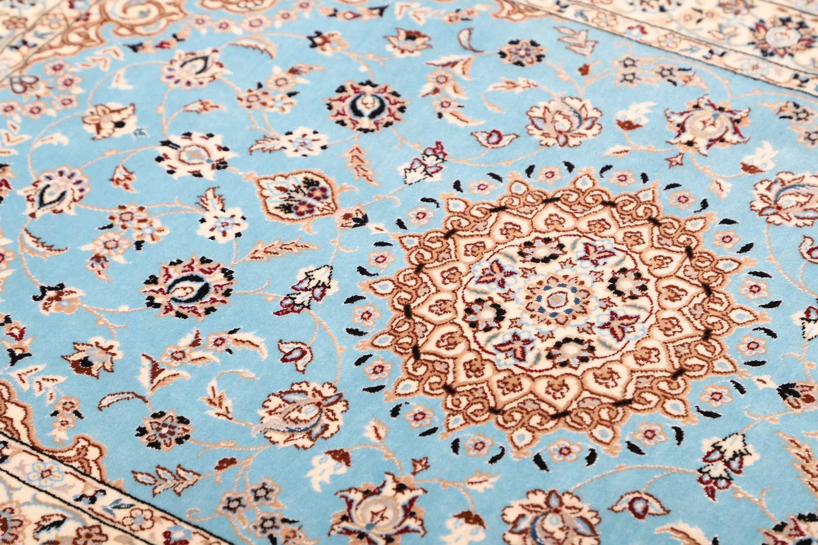 Die Schönheit des Nain Teppichs zeigt sich in den aufwendigen floralen Mustern, die nicht nur ansprechend sind, sondern auch tiefere Bedeutungen tragen. Florale Designs sind integraler Bestandteil orientalischer Teppichkunst und symbolisieren oft den Kreislauf des Lebens und die Beständigkeit der Natur. Die harmonischen Farben und der ausgeglichene Einsatz von Raum sorgen dafür, dass der Teppich jedem Raum eine ruhige, einladende Atmosphäre verleiht.