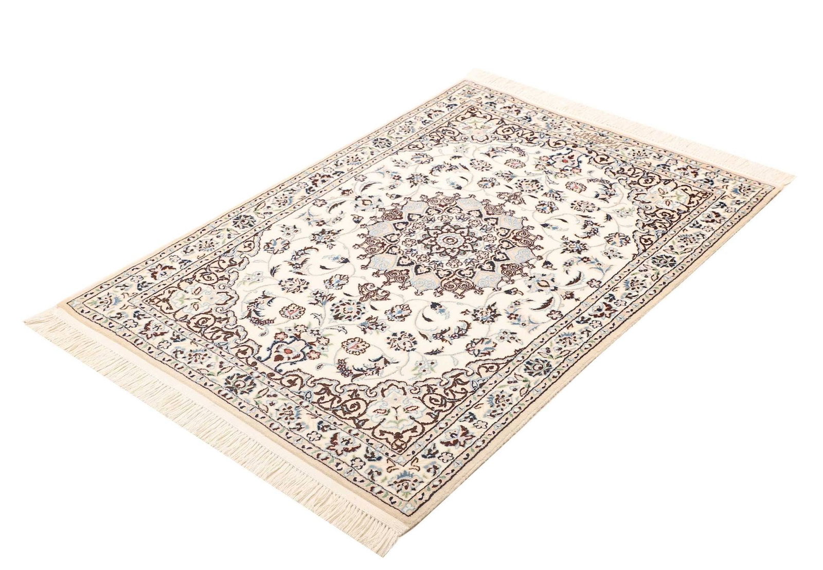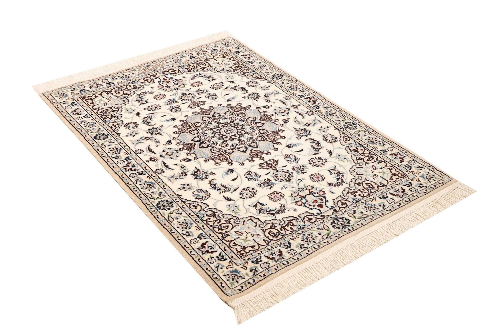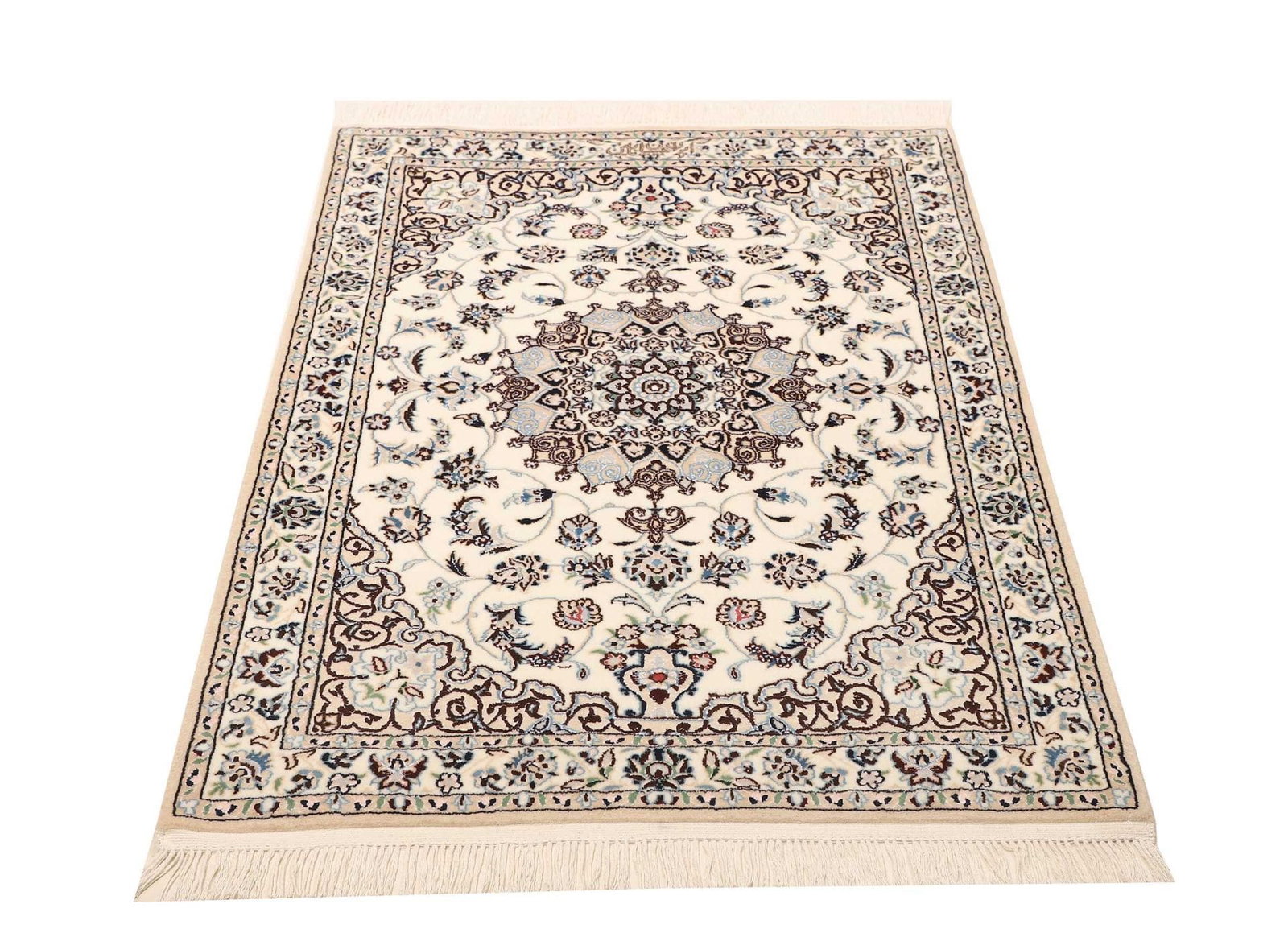 Nain Teppich 89 x 123 cm, florales Muster, handgeknüpft, Perserteppich