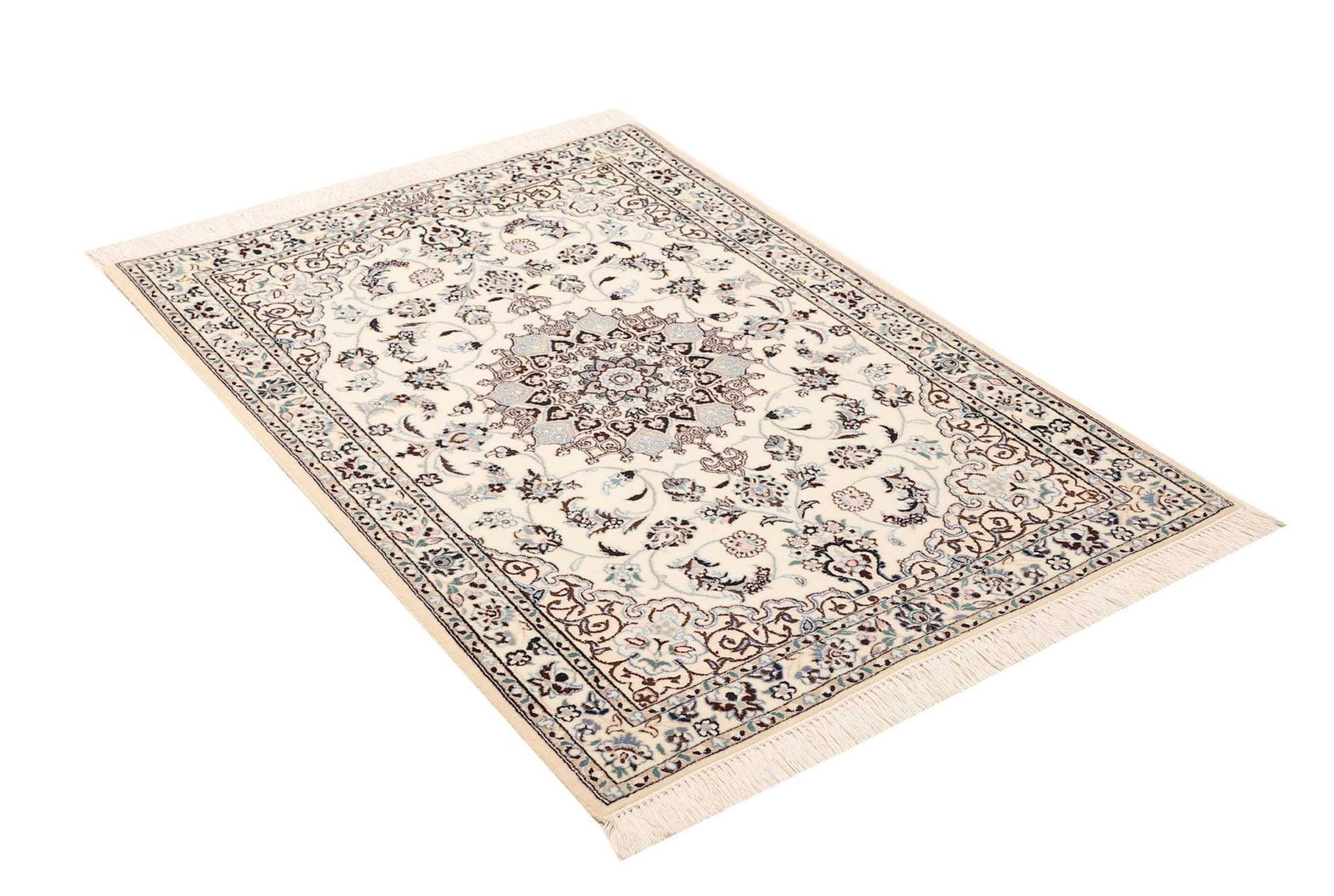 Nain Teppich 89 x 124cm, florale Muster, handgeknüpft, Perserteppich