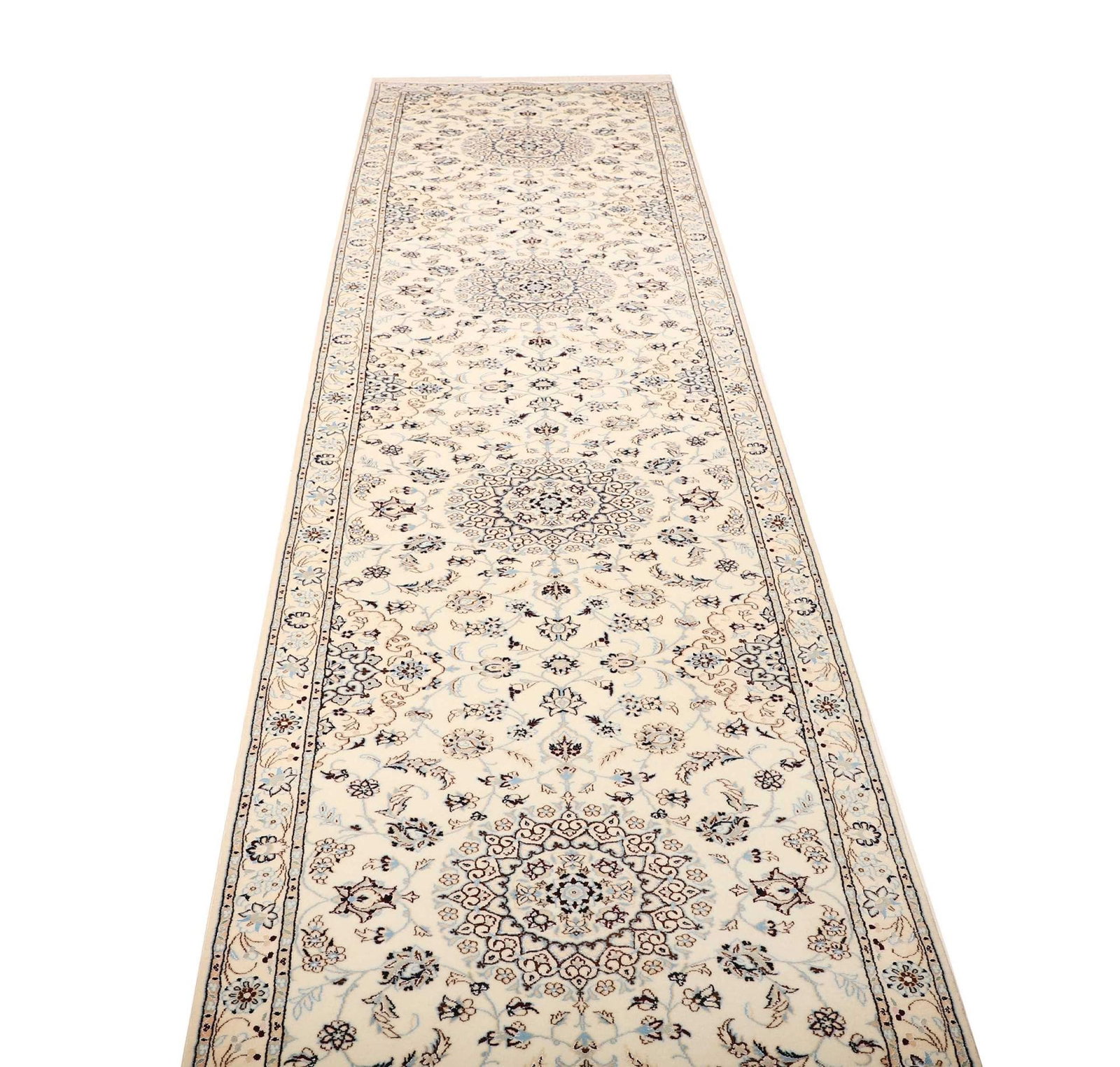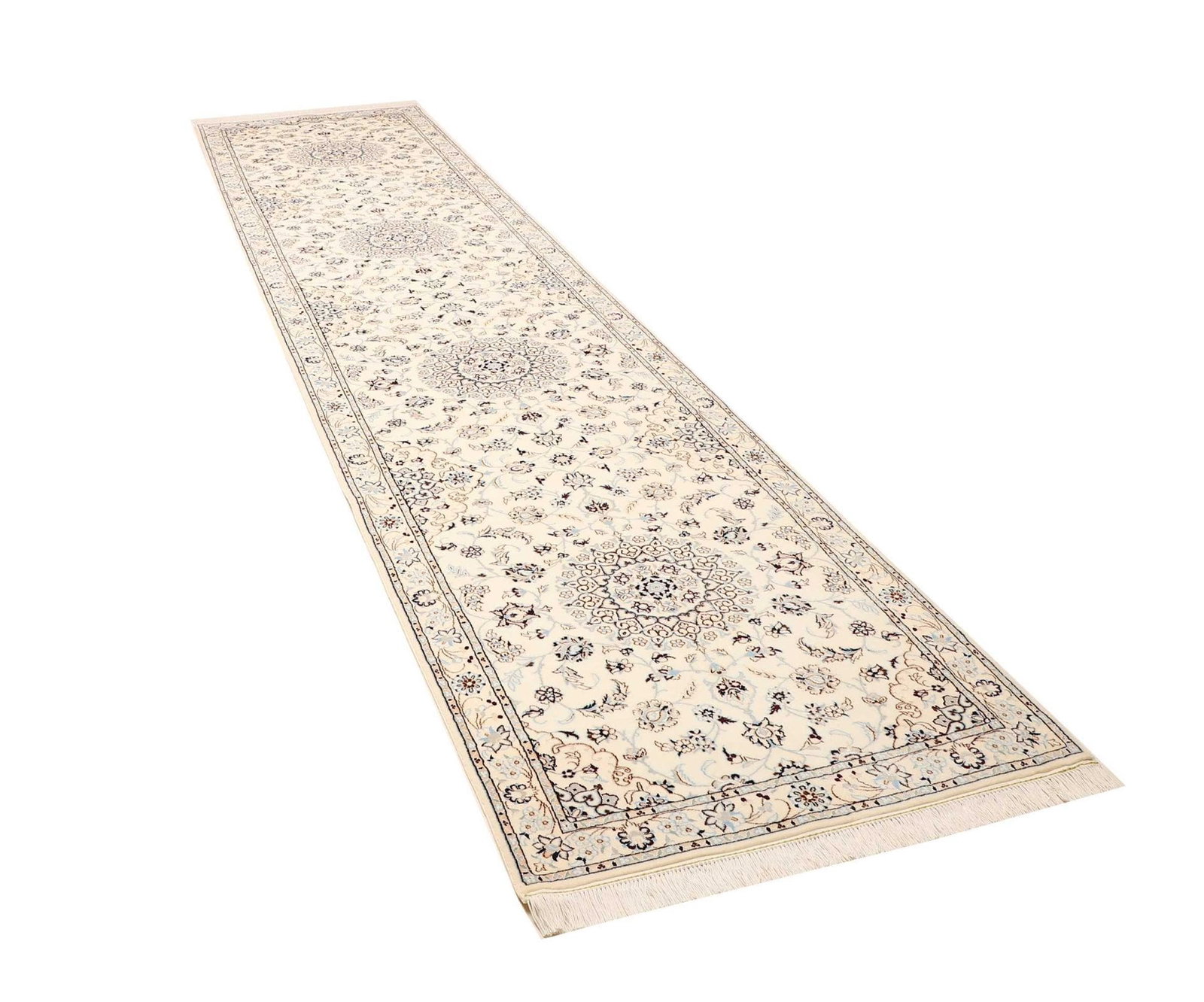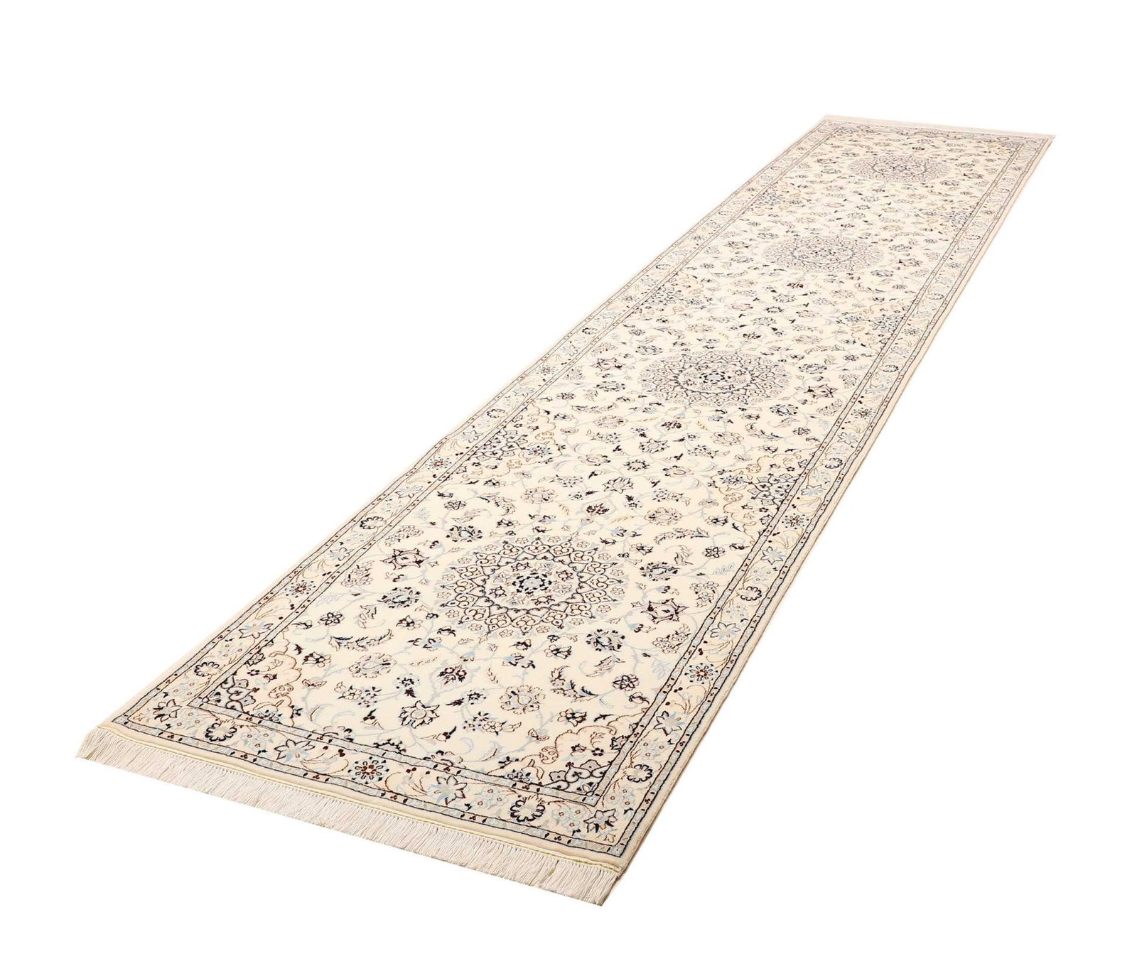 Nain Teppich 90 x 400cm, florales Muster, Schurwolle, handgeknüpft