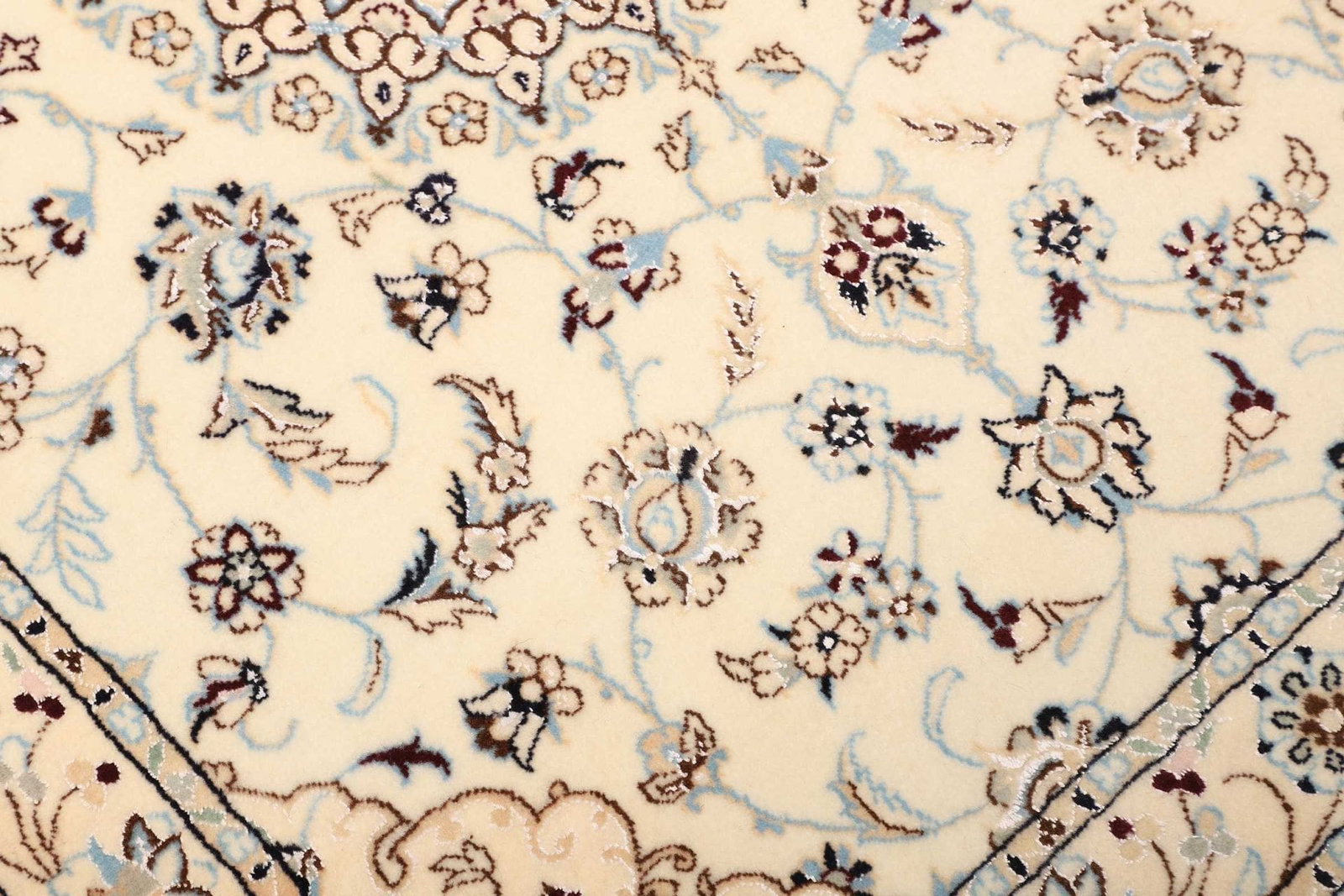 Der florale Teppich aus Nain zeigt ein reichhaltiges und harmonisches Muster, das elegant und ansprechend ist. Die floralen Motive spiegeln die Liebe zur Natur wider, die in der persischen Kunsttradition tief verwurzelt ist. Oft erkennt man in diesen Designs stilisierte Blumen und Blüten, die häufig in sanften, harmonischen Farbtönen gehalten sind. Das florale Muster zieht nicht nur das Auge an, sondern schafft auch eine beruhigende Atmosphäre in jedem Raum. Die eleganten Farbkombinationen können problemlos in verschiedene Einrichtungsstile integriert werden, von klassisch bis modern.