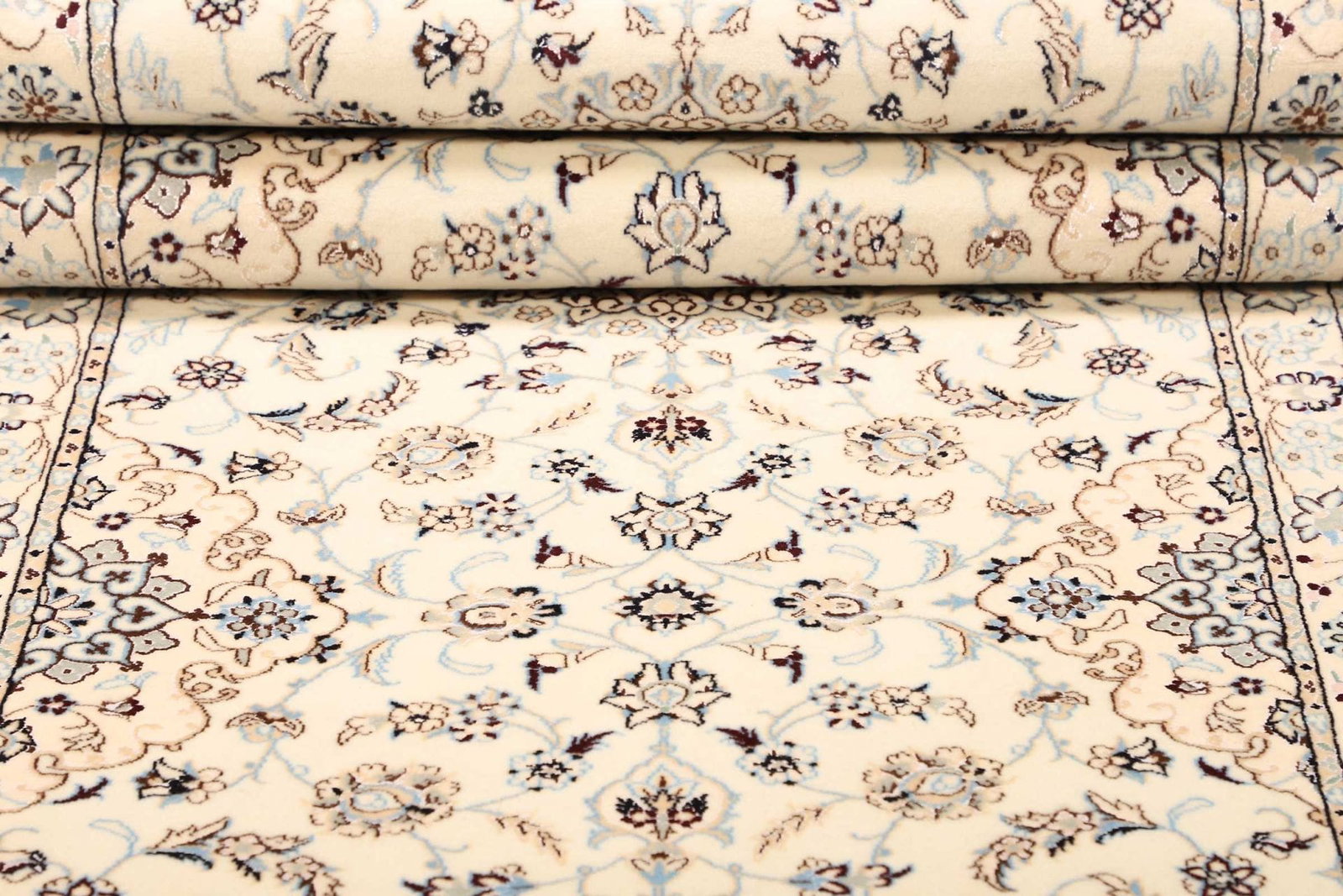 Nain ist eine Stadt im Iran, die für ihre exquisite Teppichproduktion bekannt ist. Die Teppiche aus dieser Region haben eine lange Tradition, die bis ins 19. Jahrhundert zurückreicht. Nain-Teppiche sind einzigartig und zeichnen sich durch ihre klaren, feinen und geometrischen Muster aus, die häufig florale und ornamentale Elemente enthalten. Die hohe Qualität der verwendeten Materialien und die meisterhafte Verarbeitung haben Nain-Teppiche zu einem Synonym für Eleganz und Exklusivität gemacht. Die Teppichknüpferei in Nain hat ihre Wurzeln in Jahrhunderte alten Techniken und wird von Handwerkern betrieben, die ihr Wissen über Generationen hinweg weitergegeben haben.
