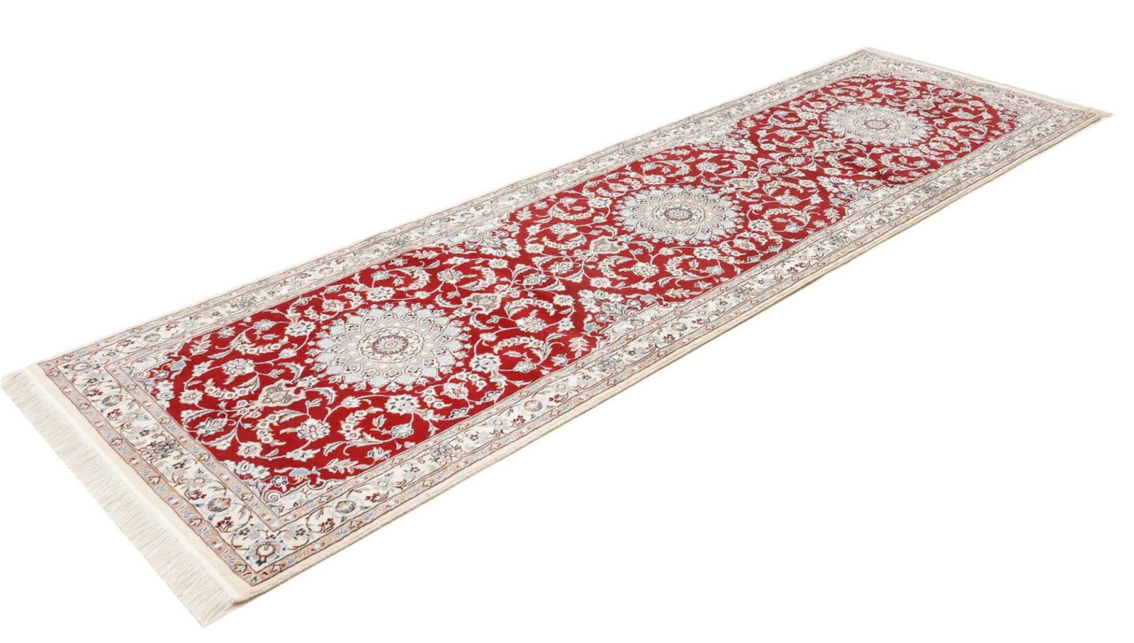 2518$Ursprünglicher Preis war: 2518$2252$Aktueller Preis ist: 2252$Nain Teppich | Knotendichte: ca. 500.000 Knoten/m² | Material: 100% Schurwolle (Flor), 100% Baumwolle (Kette) | Größe: 93 x 309 cm | Herkunft: Iran | Zustand: Handgeknüpft, hochwertige Verarbeitung | Muster: Klassische florale Motive und moderne Neuinterpretationen