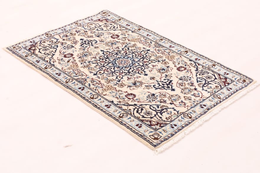 Nain Teppich | Knotendichte: bis über 200.000 Knoten/m² | Material: Wolle und Seide | Größe: 112×74 cm | Farbe: Multifarbe | Zustand: Neu | Verarbeitung: Handgeknüpft | Ursprung: Iran/Persien | Dicke: ca. 10 mm | Gewicht: ca. 2 kg