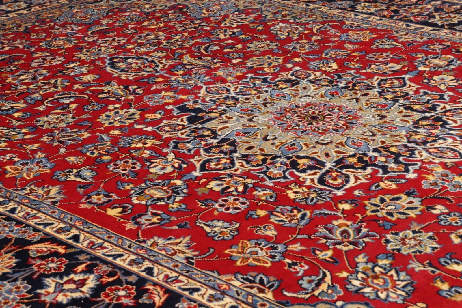 Die Knotendichte des Teppichs ist hoch, was bedeutet, dass er eine präzise und detailreiche Musterung aufweist. Diese hohe Knotendichte trägt zur Langlebigkeit des Teppichs bei und ist ein Zeichen für die Qualität der Handwerkskunst, die in die Herstellung geflossen ist.