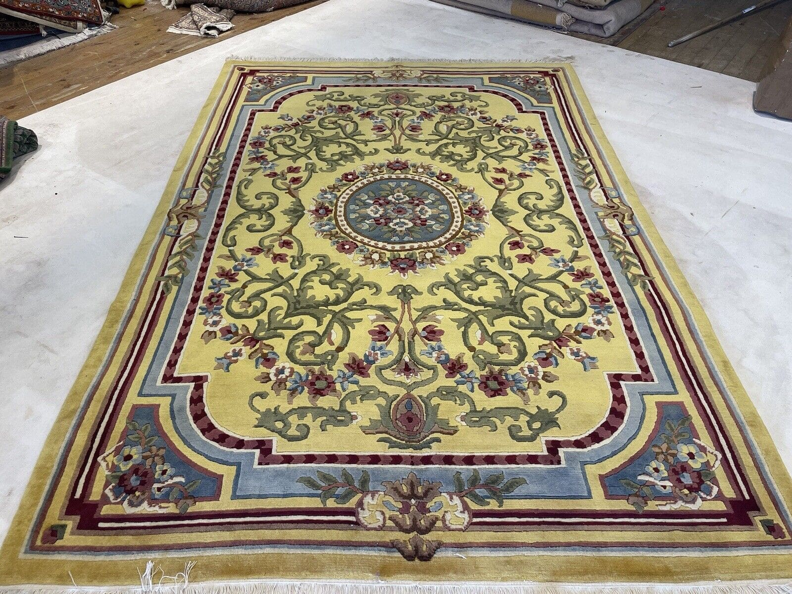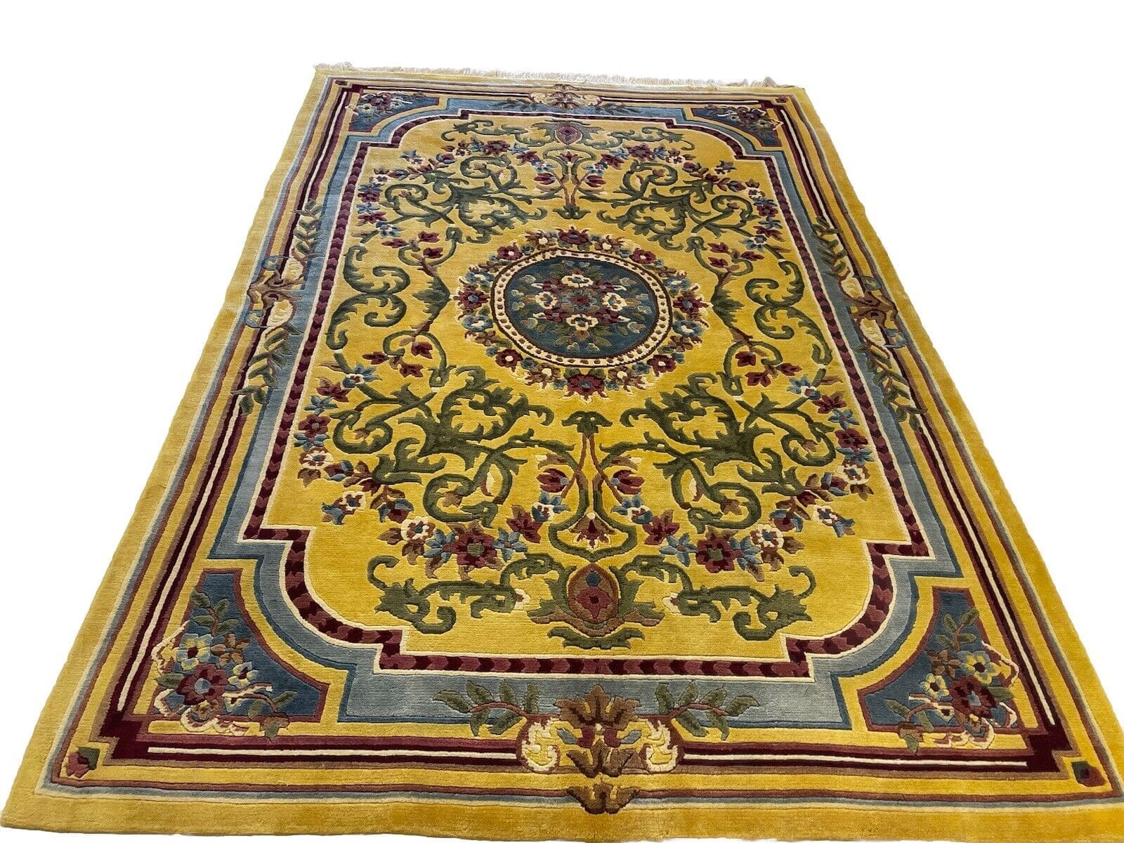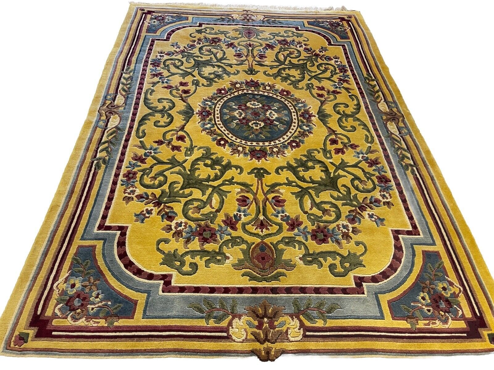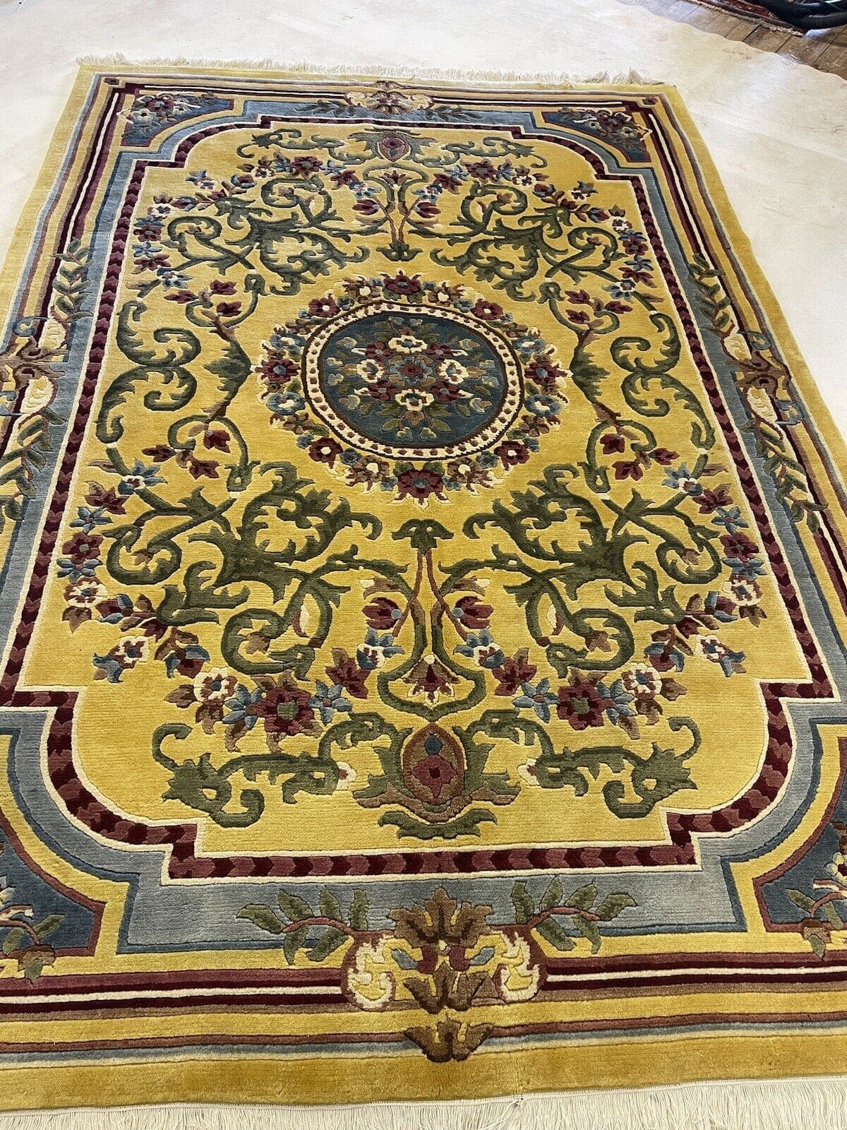 Handgeknüpfter Nepal Teppich | Größe: 270×185 cm | Farbe: Senffarbe | Muster: Seltenes Nepal Design | Material: 100% Wolle | Florhöhe: 10 mm | Zustand: Wie neu | Für Fußbodenheizung geeignet | Traditioneller orientalischer Stil | Herstellungsland: Nepal | Epoche: Mitte des 20. Jahrhunderts | Form: Rechteckig