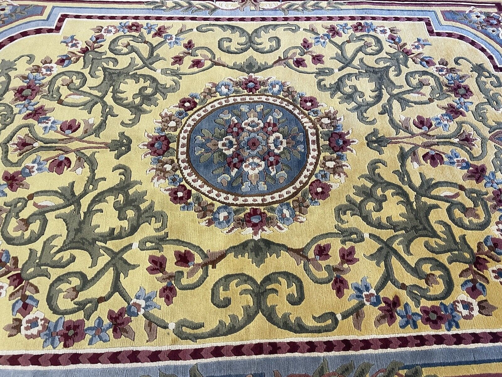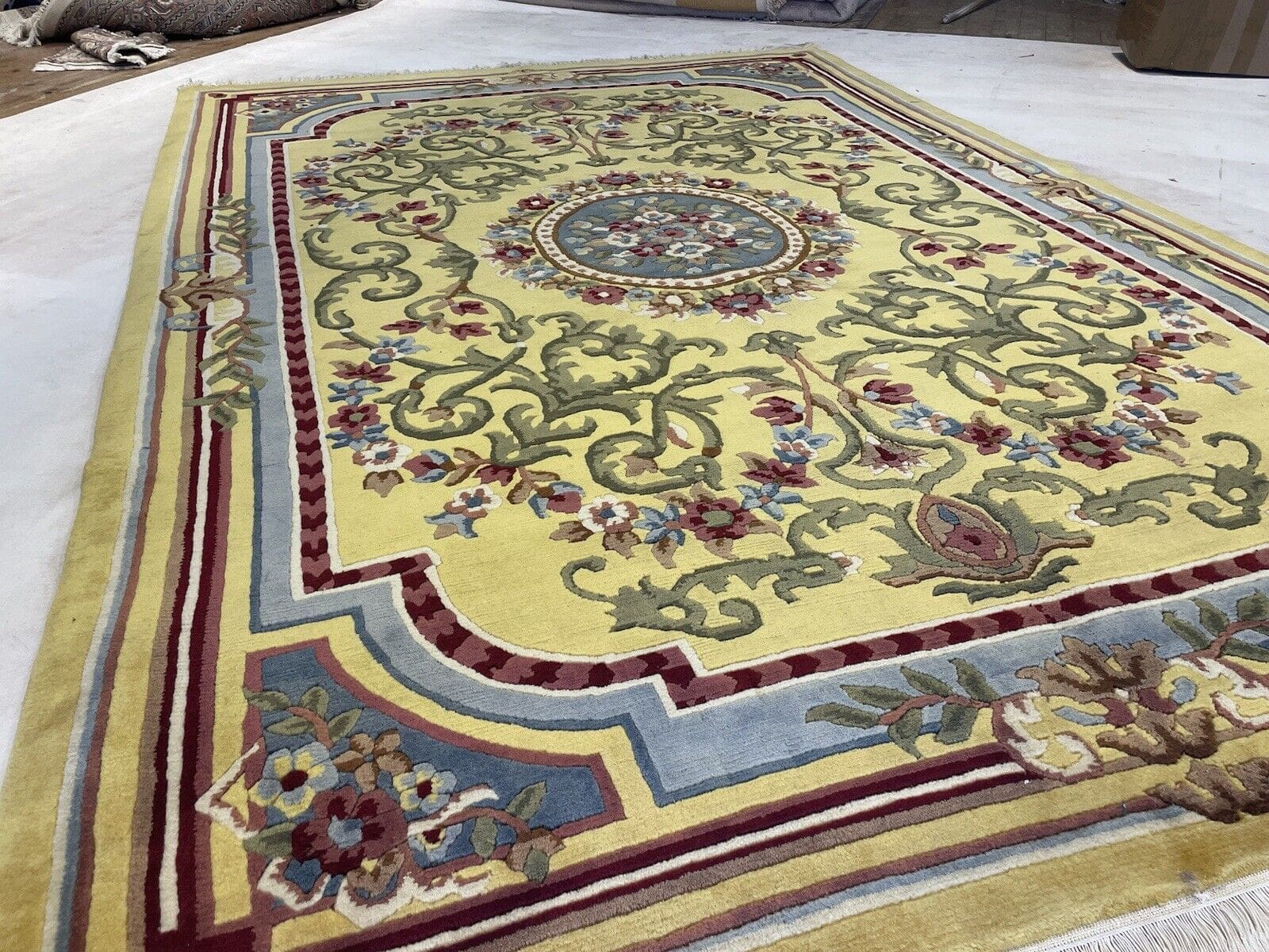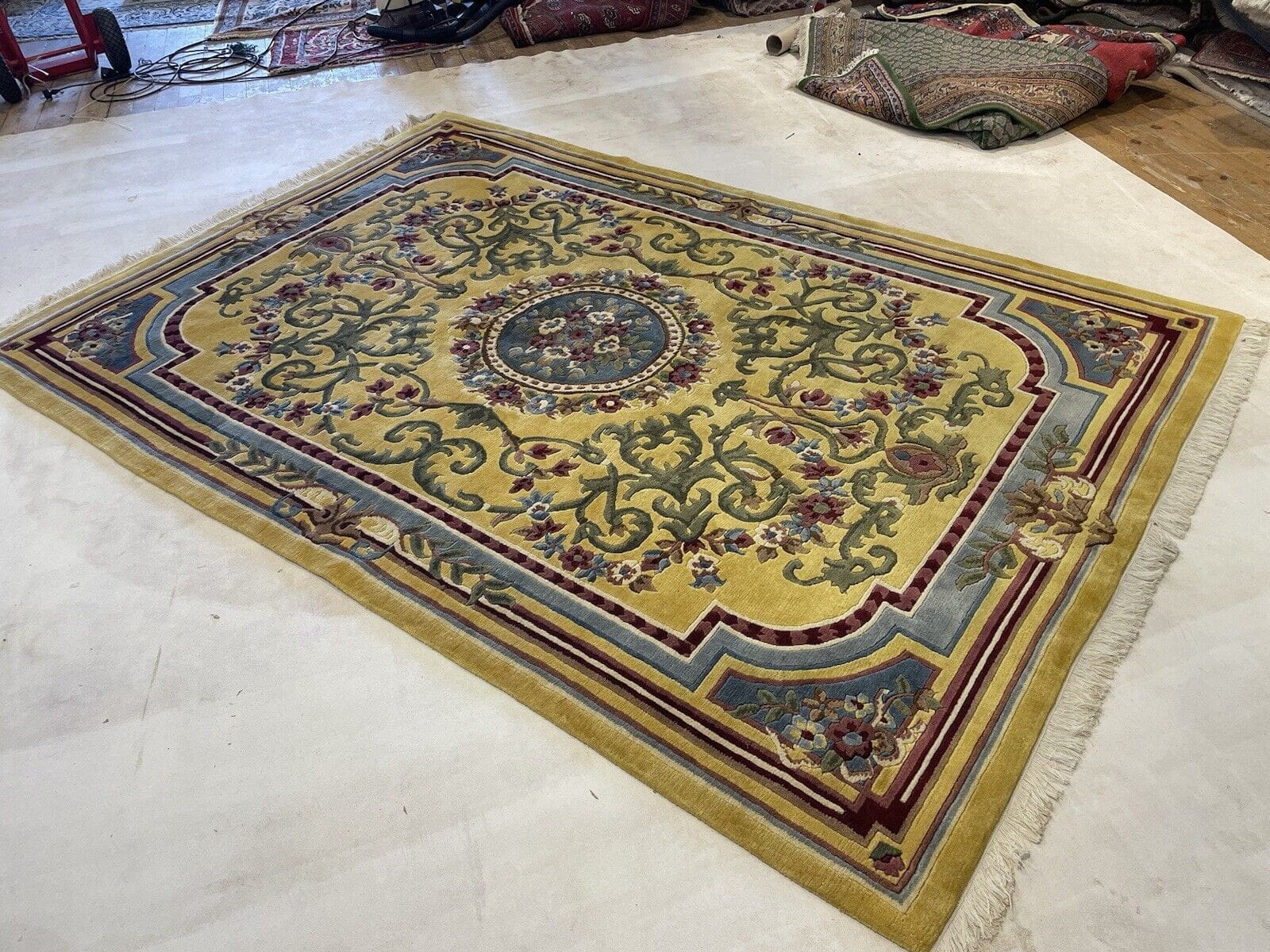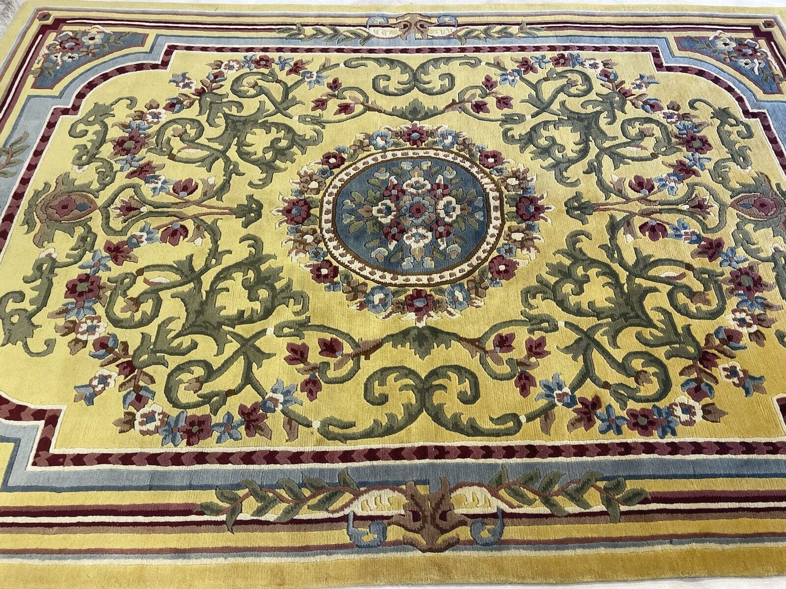 Handgeknüpfter Nepal Teppich | Größe: 270×185 cm | Farbe: Senffarbe | Muster: Seltenes Nepal Design | Material: 100% Wolle | Florhöhe: 10 mm | Zustand: Wie neu | Für Fußbodenheizung geeignet | Traditioneller orientalischer Stil | Herstellungsland: Nepal | Epoche: Mitte des 20. Jahrhunderts | Form: Rechteckig