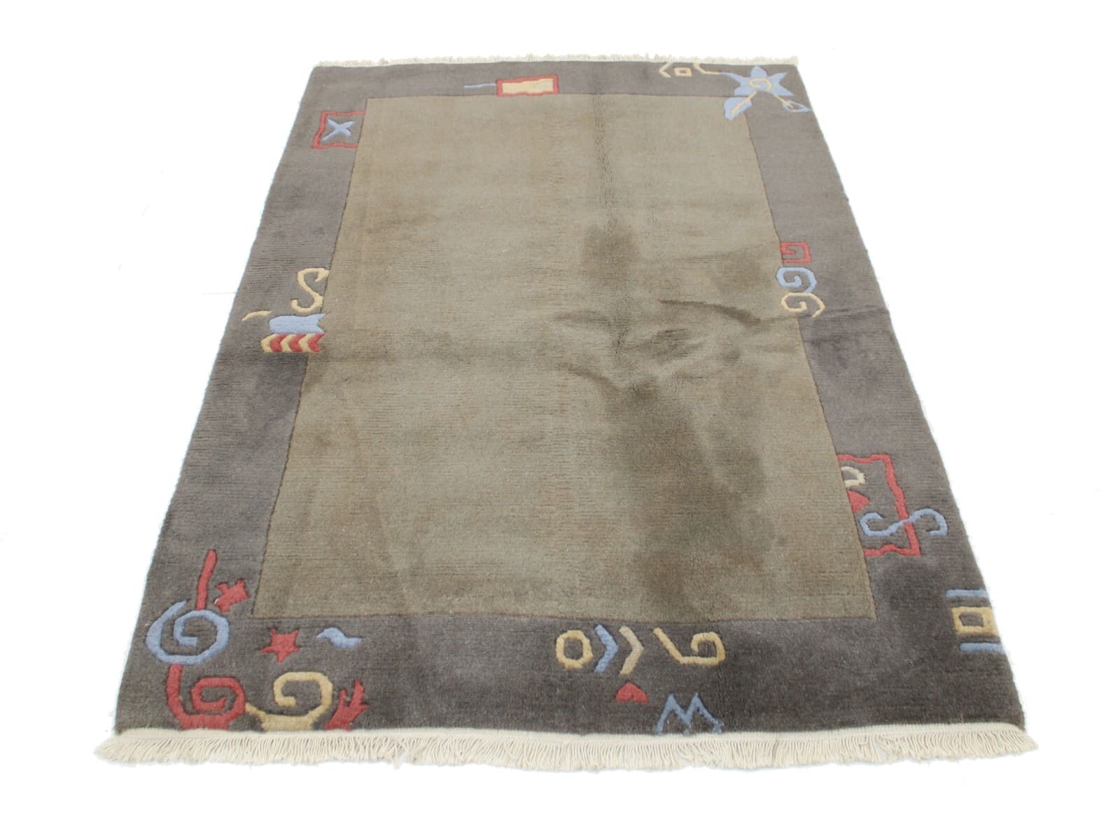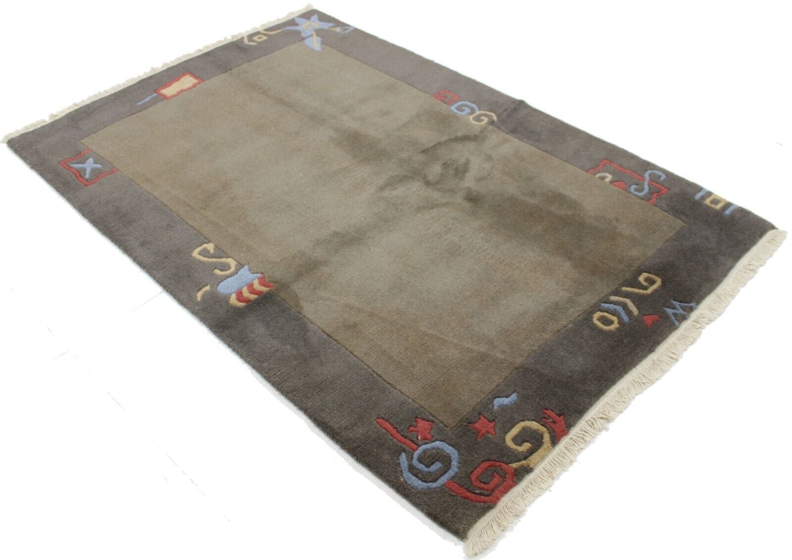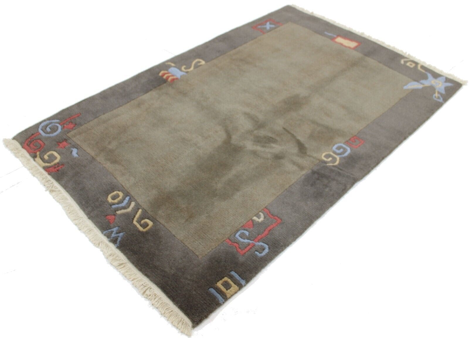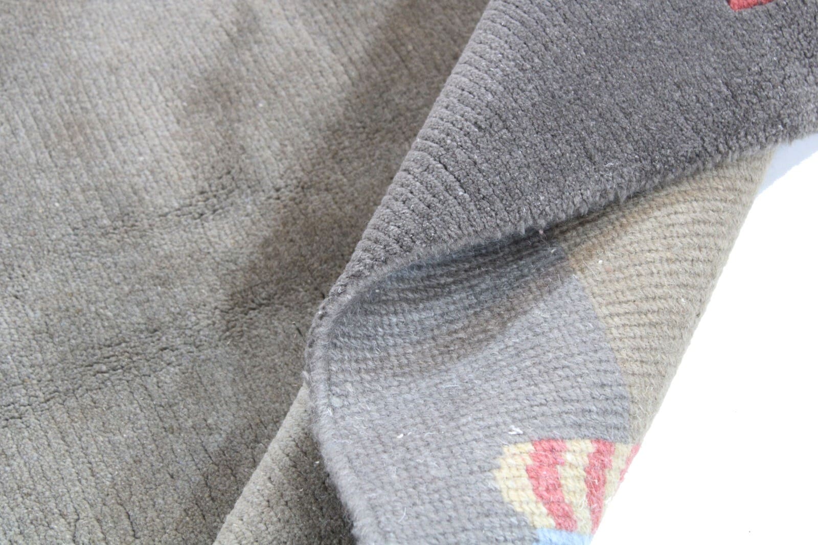 Handgeknüpfter Nepal-Teppich | Größe: 190 x 127 cm | Material: 100% Baumwolle & 100% Wolle | Muster: Abstrakt | Zustand: Top, gebraucht | Stil: Modern | Knotendichte: Normal | Besonderheiten: 3D-Effekt, Antirutsch, für Fußbodenheizung geeignet | Herkunft: Nepal | Herstellungszeitraum: 2000-2009