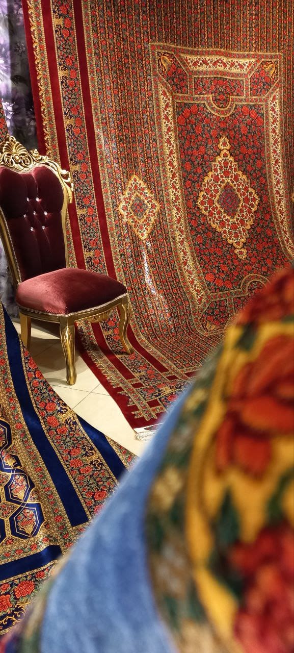 Die roten und blauen Naturfarben erzeugen ein warmes, königliches Gesamtbild mit starkem Seidenglanz.