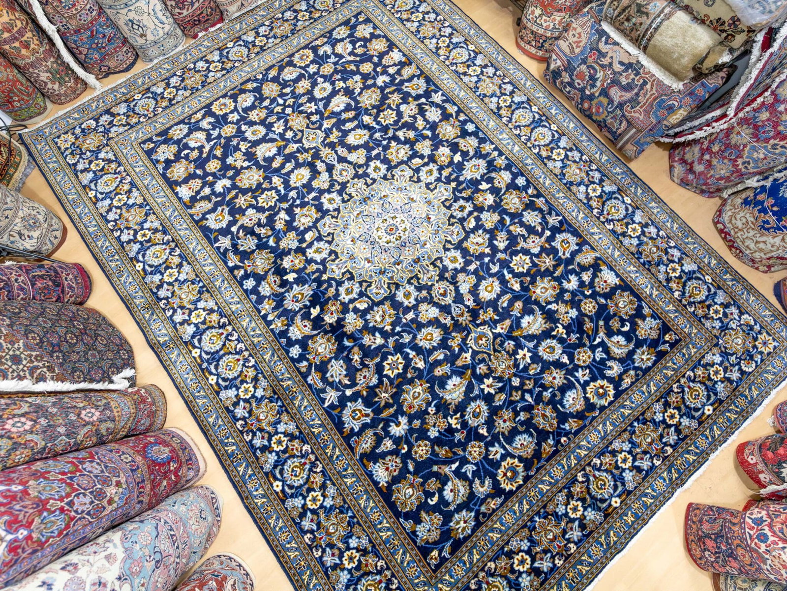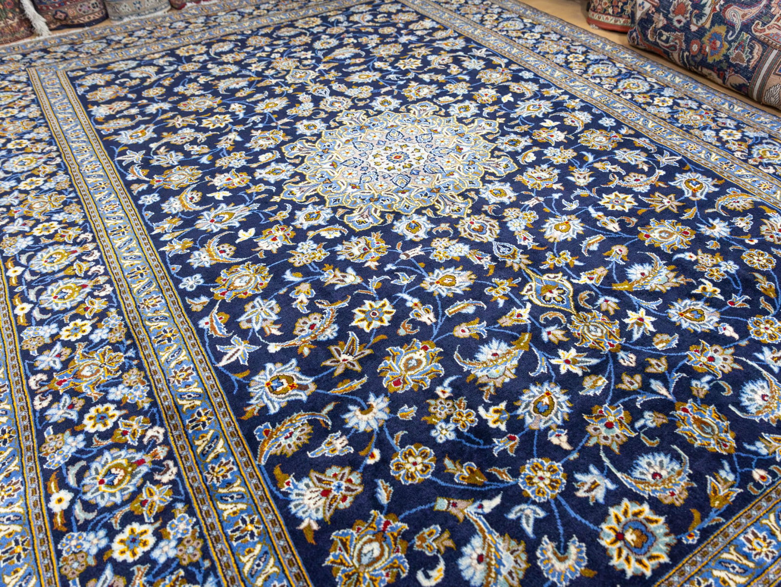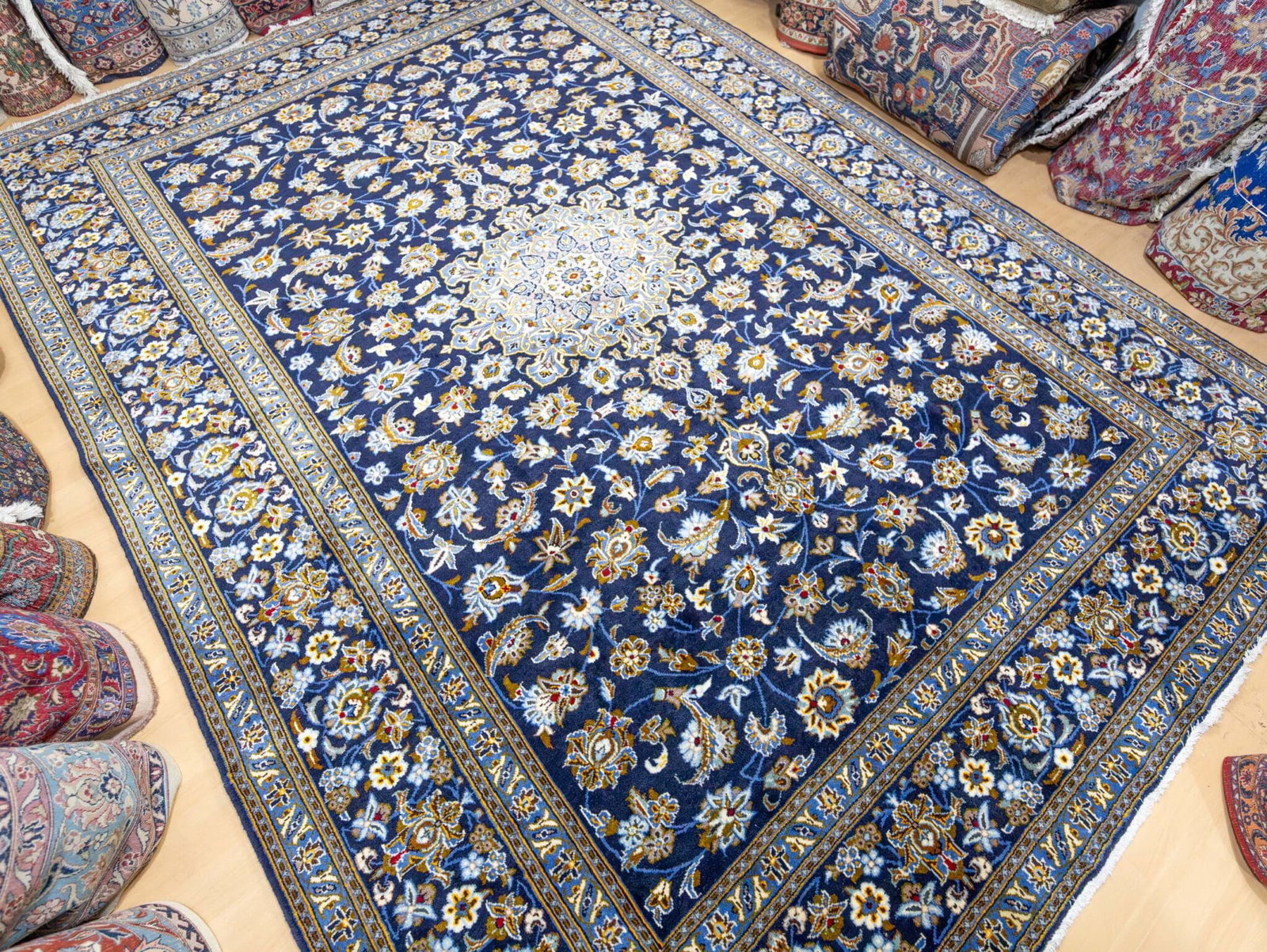 Ein vergleichbarer Kashan in neuwertigem Zustand liegt marktüblich im Bereich von ca. 2.400–3.000 €.