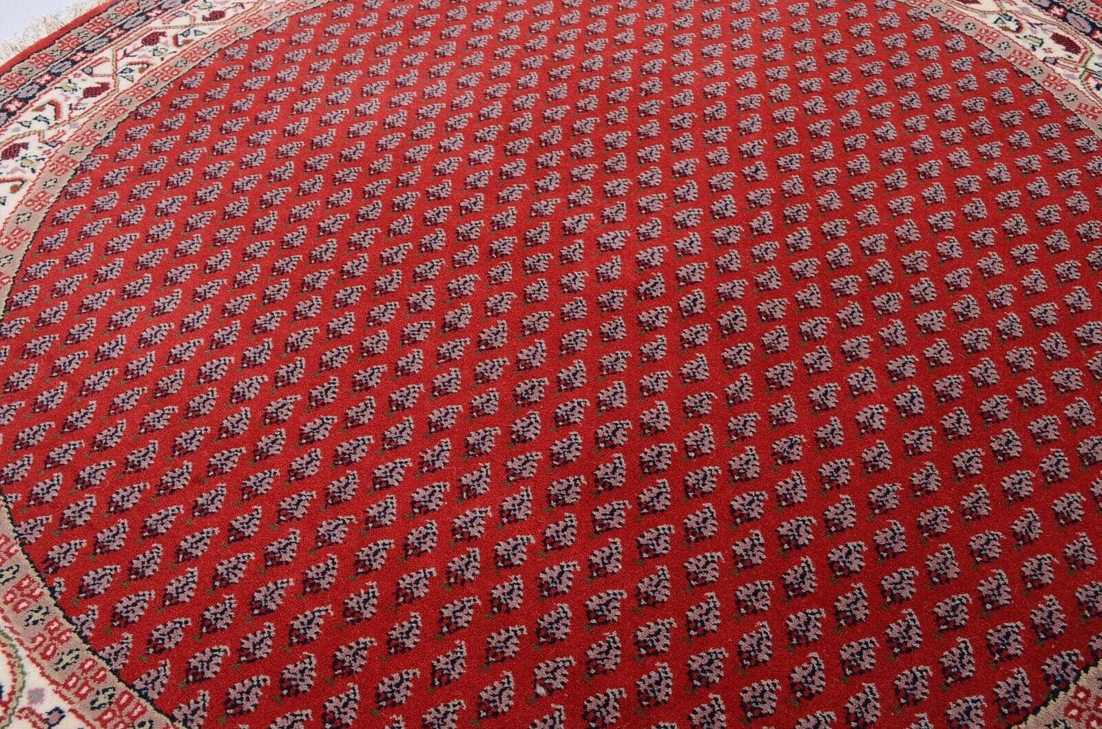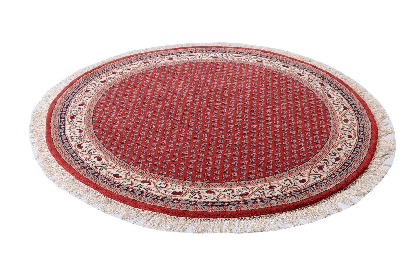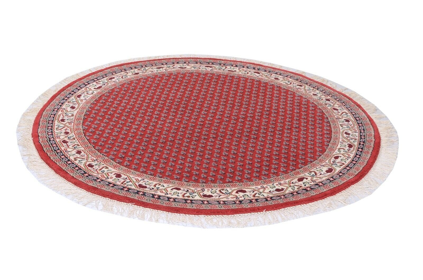 Runder Indo Sarough Mir Teppich | Größe: 100 x 100 cm | Material: 100% Schurwolle | Knotendichte: 120.000 – 140.000 Knoten/m² | Dicke: ca. 15 mm | Zustand: Neu, perfekt | Herkunft: Indien | Farbe: Rot | Stil: Traditionell Persisch/Orientalisch | Für Fußbodenheizung geeignet