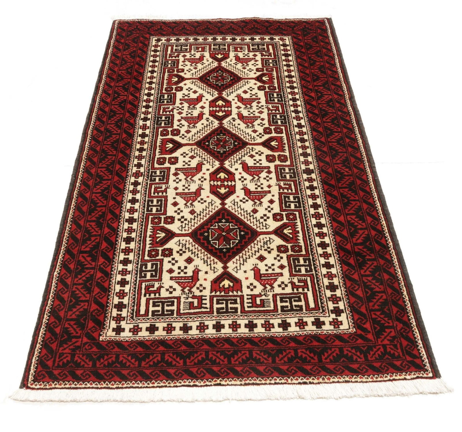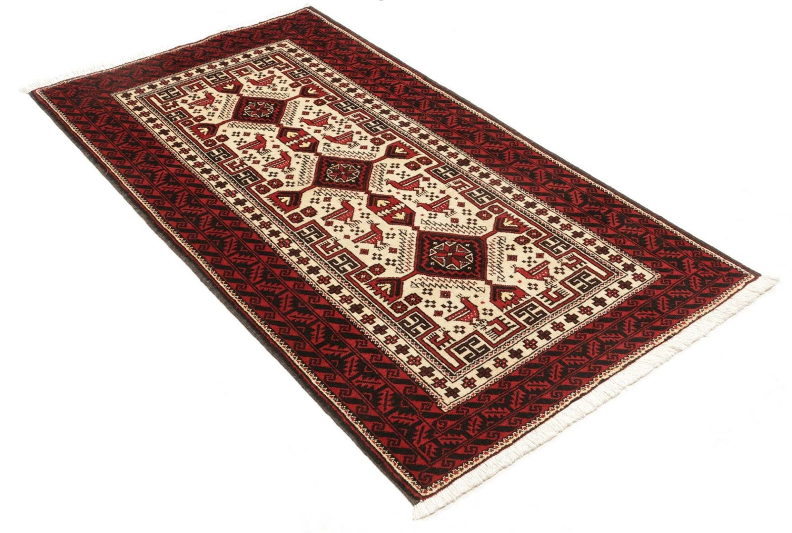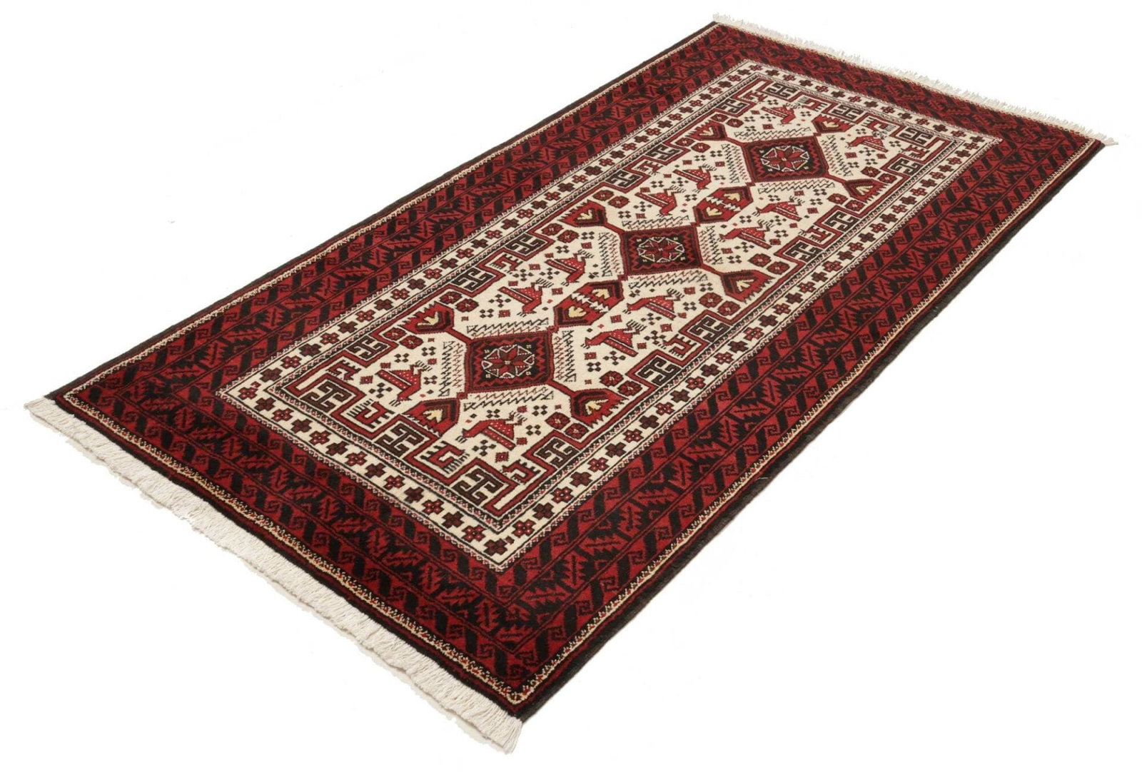 Orientteppich 103 x 187 cm aus Schurwolle, handgeknüpft, floral