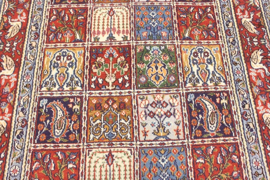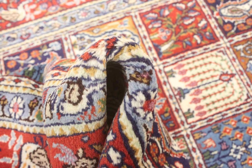 Dieser Orientteppich stammt aus der Moud-Region, die bekannt ist für ihre reiche Teppichtradition. Moud liegt im Iran und ist berühmt für die Herstellung von Teppichen, die durch ihre traditionellen Muster und die exquisite Handknüpfung bestechen. Die Kunst des Teppichknüpfens hat in dieser Region eine jahrhundertealte Tradition, die von Generation zu Generation weitergegeben wird.