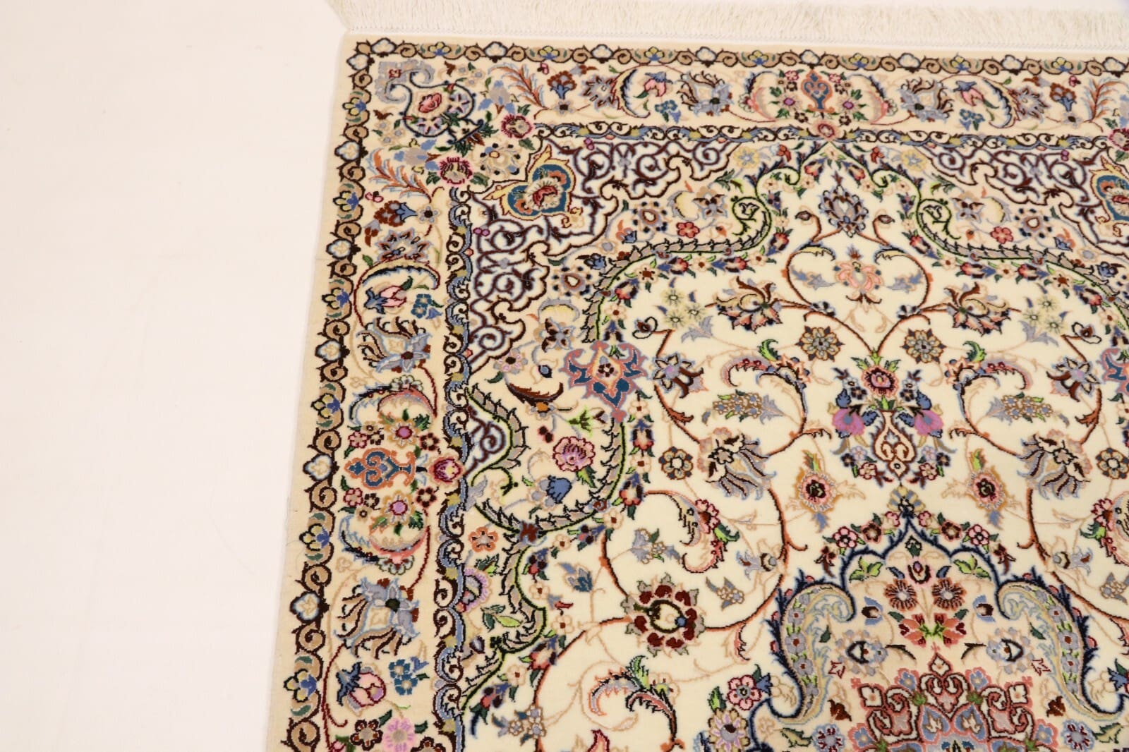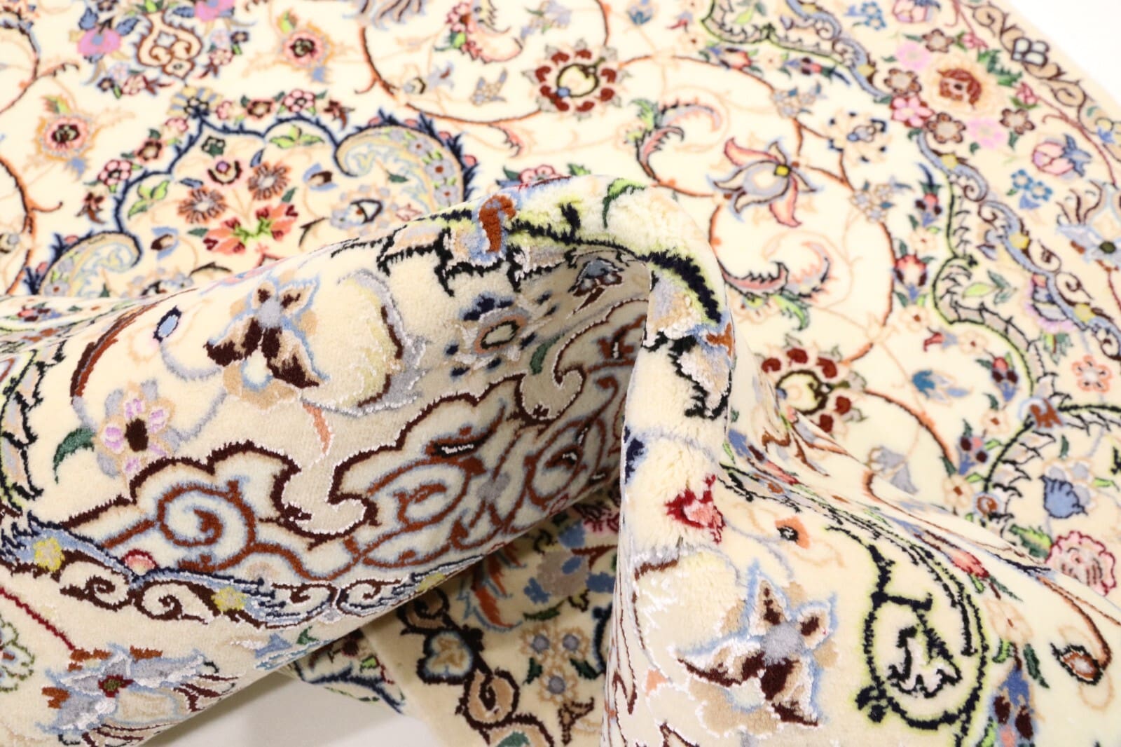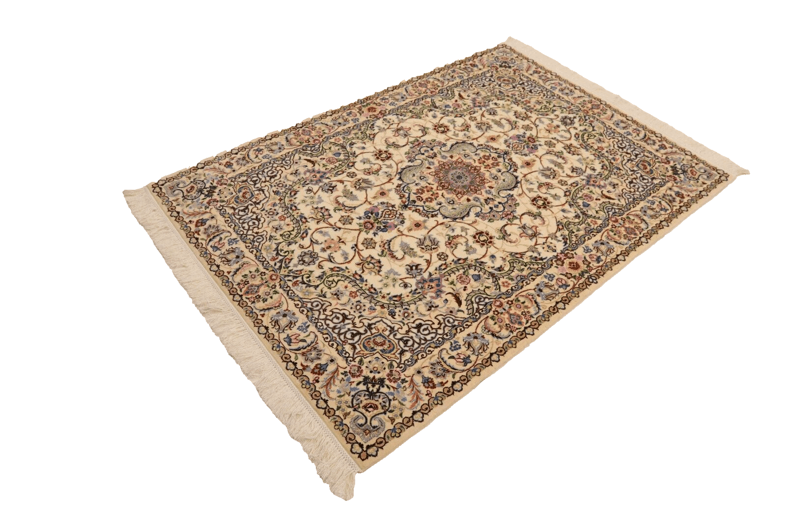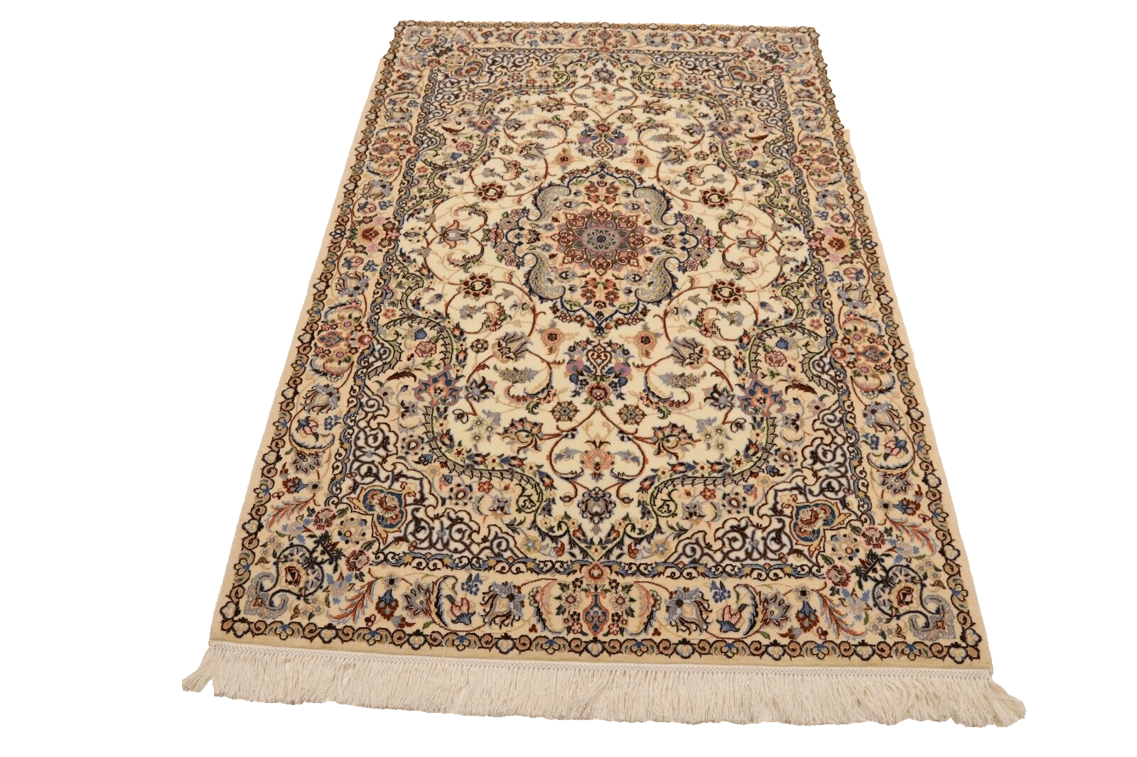 Handgeknüpfter Orientteppich Nain 6 La | Knotendichte: ca. 1.000.000 Knoten/m² | Material: 80% Korkwolle, 20% Naturseide | Größe: 182 x 123 cm | Zustand: Neu, perfekt | Herkunft: Persien | Dicke: ca. 6 mm | Stil: Traditionell Orientalisch/Persisch | Gewicht: 5 kg