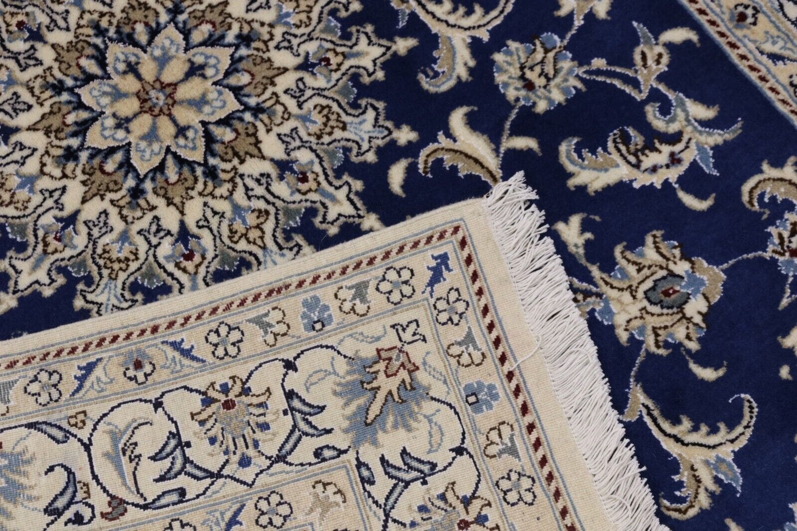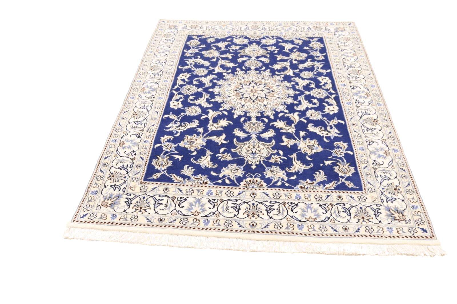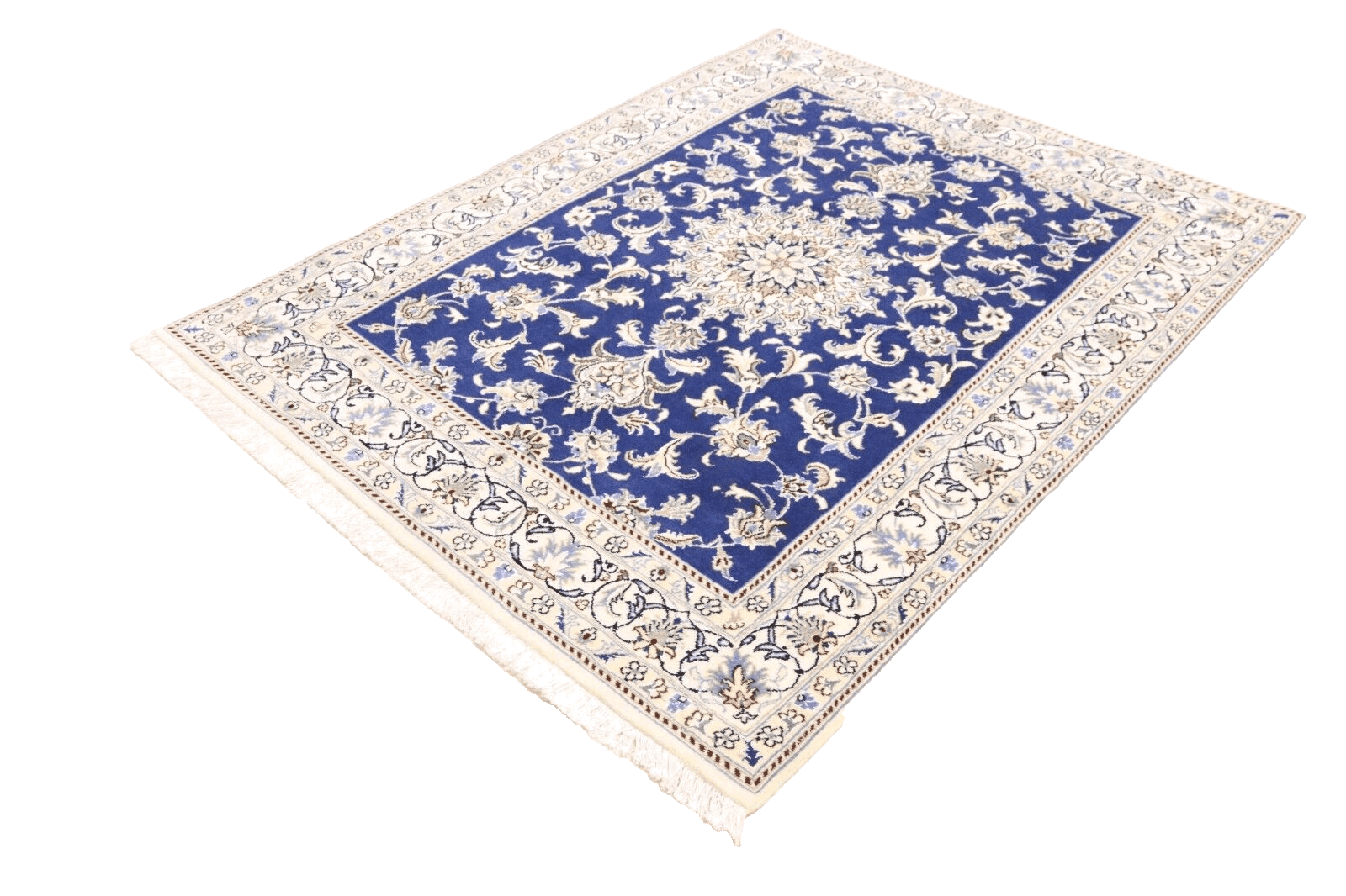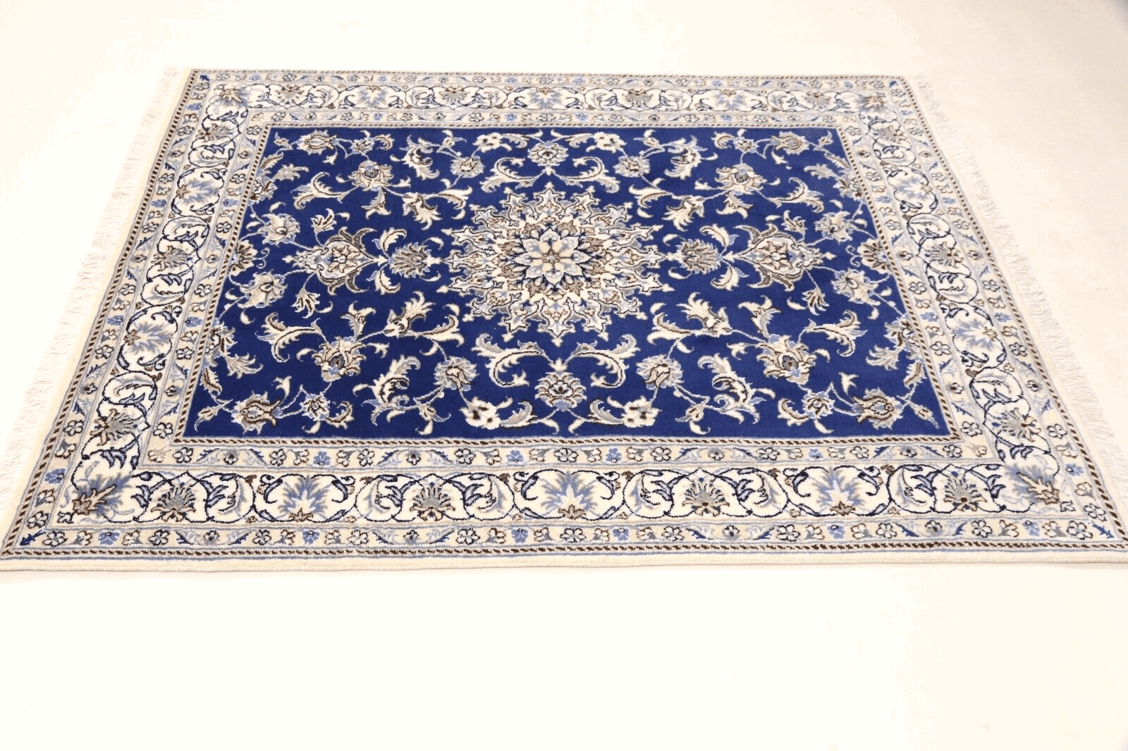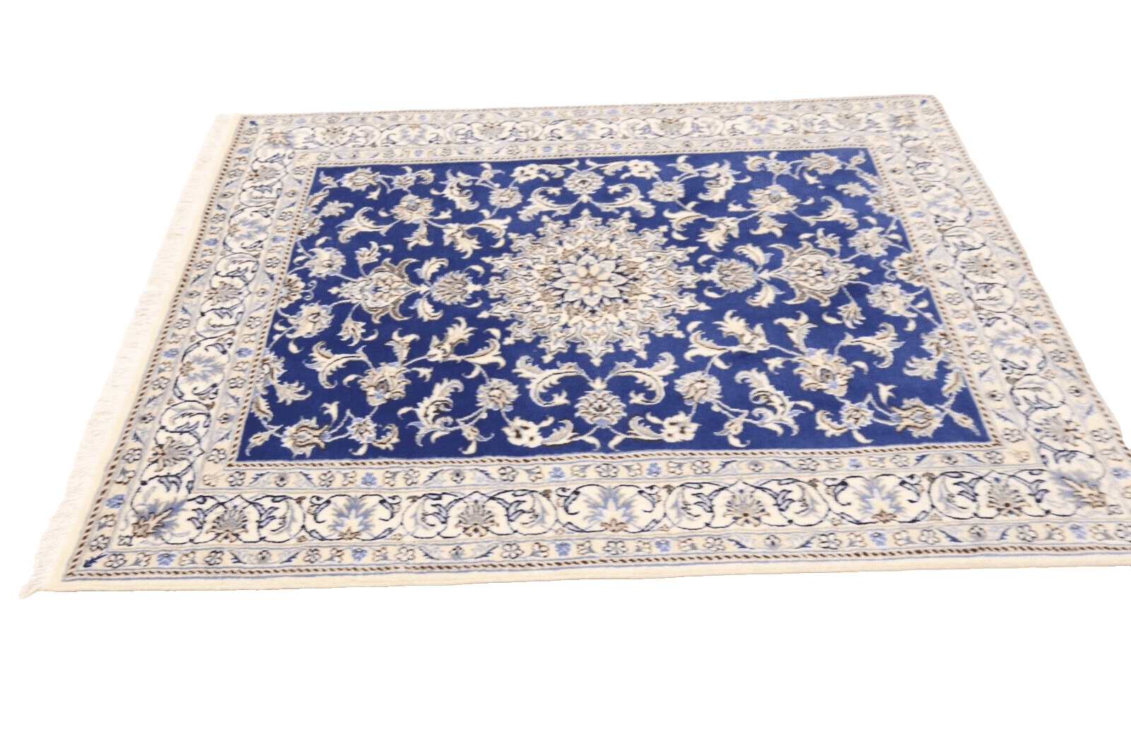 Orientteppich super Nain | Handgeknüpft | Knotendichte: ca. 300.000 Knoten/m² | Material: 90% Schurwolle, 10% Seide | Größe: 191 x 148 cm | Zustand: Neu, perfekt | Herkunft: Persien | Dicke: ca. 8 mm | Farbe: Blau | Für Fußbodenheizung geeignet | Haustierfreundlich | Stil: Traditionell Orientalisch/Persisch