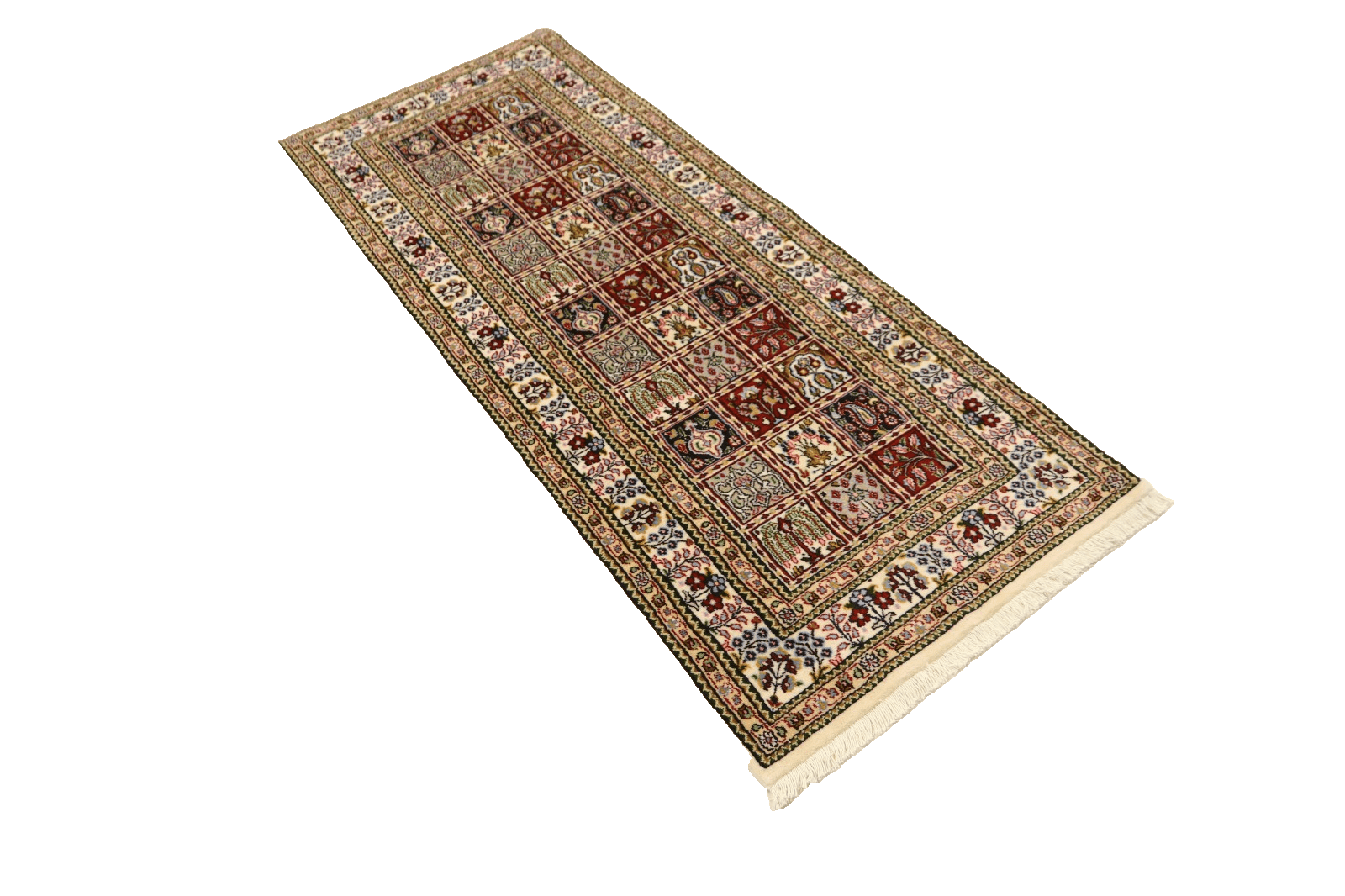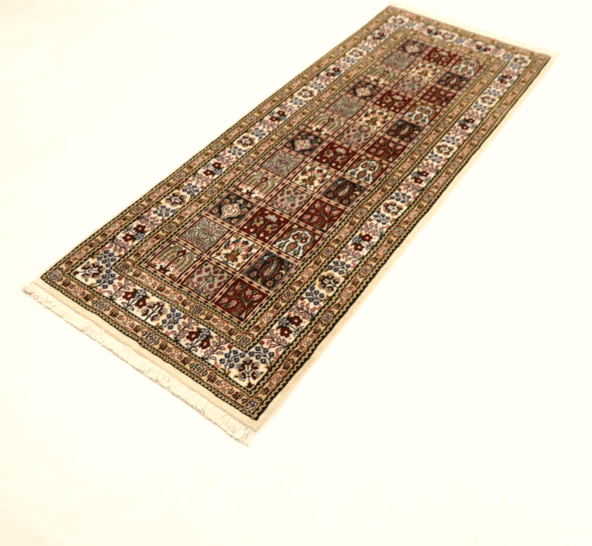 Orientteppich super Moud | Knotendichte: ca. 400.000 Knoten/m² | Material: 90% Schurwolle, 10% Seide, 100% Baumwolle | Größe: 195 x 79 cm | Zustand: Neu, sehr gut | Herkunft: Moud, Nordost-Persien | Stil: Traditionell Orientalisch/Persisch | Besonderheiten: Für Fußbodenheizung geeignet, haustierfreundlich | Form: Rechteckig