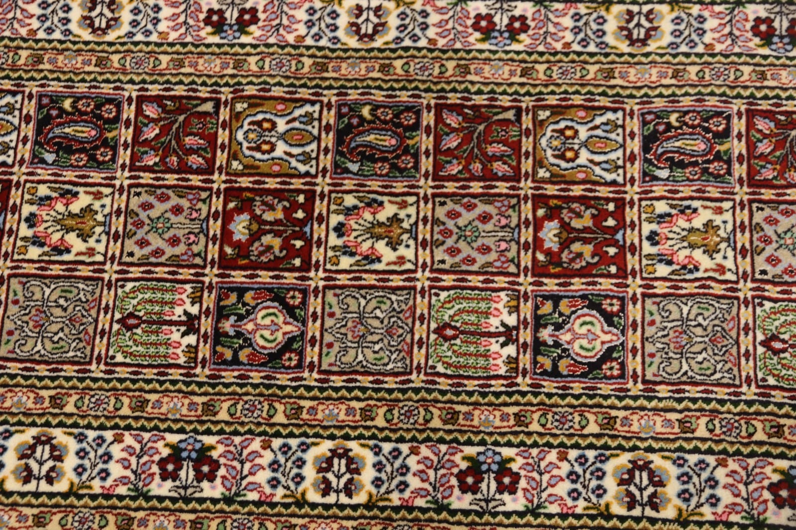 Iran ist einer der führenden Produzenten von handgeknüpften Teppichen, und die Teppiche aus Moud sind besonders geschätzt aufgrund ihrer hohen Knotendichte und der Verwendung qualitativ hochwertiger Materialien. Die Teppichtradition in Moud spiegelt die reiche Geschichte des Iran wider, die geprägt ist von Kunstfertigkeit, kulturellem Austausch und detailverliebtem Handwerk.