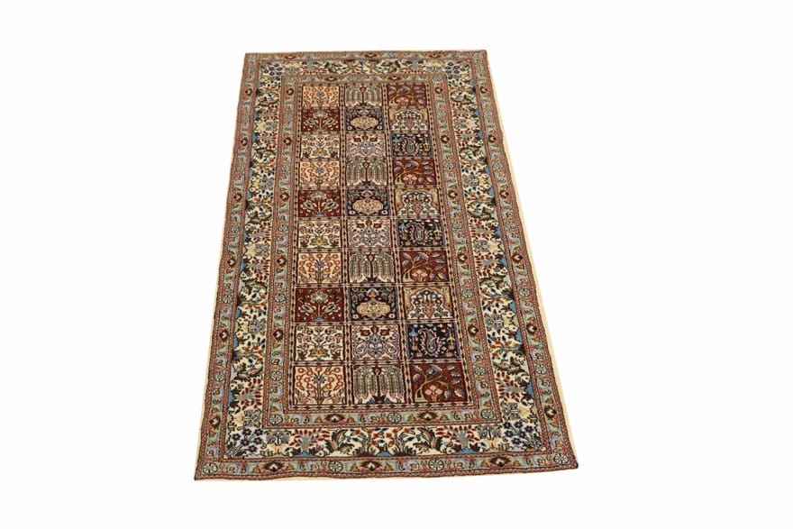Handgeknüpfter Moud Teppich | Knotendichte: 320.000 – 360.000 Knoten/m² | Material: Wolle und Seide | Größe: 198×81 cm | Farbe: Braun/Gelb | Zustand: Neu | Ursprung: Iran/Persien