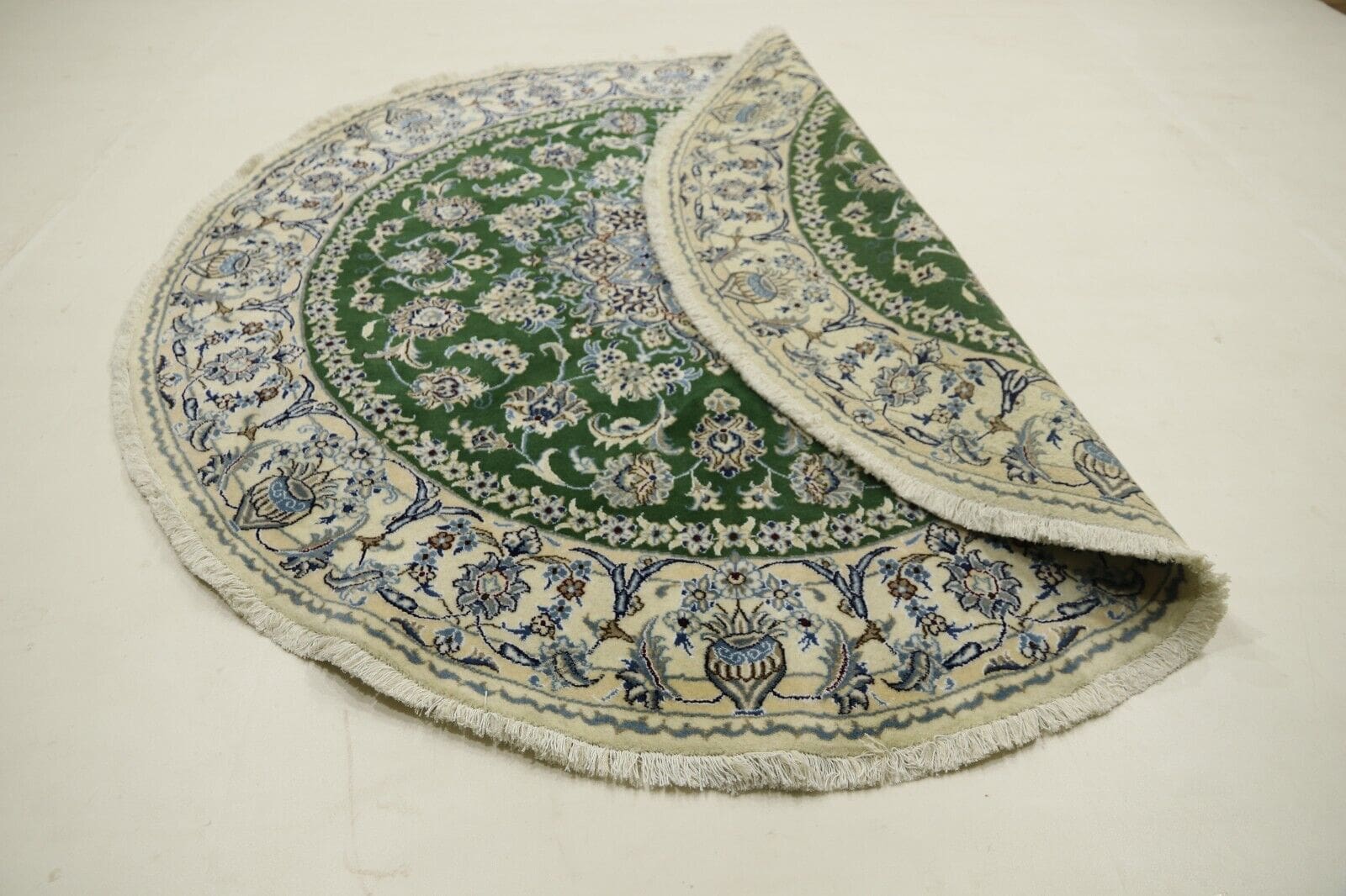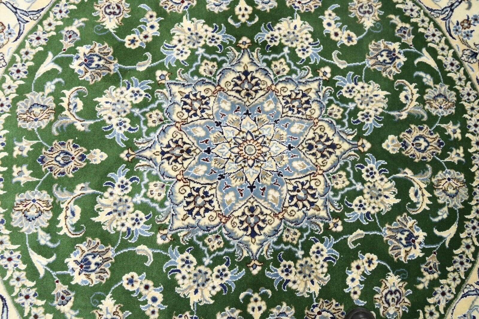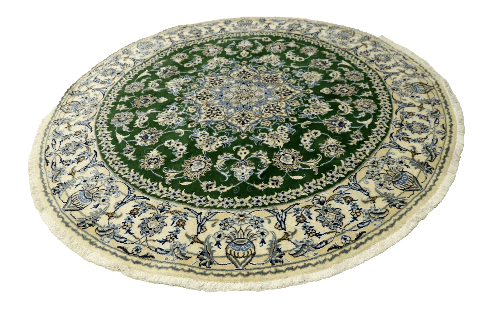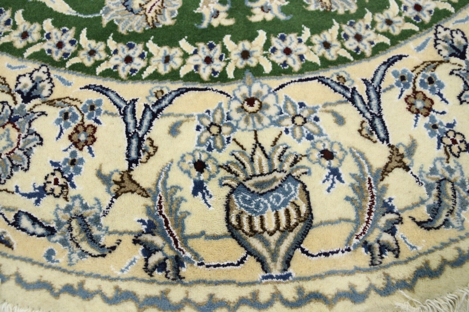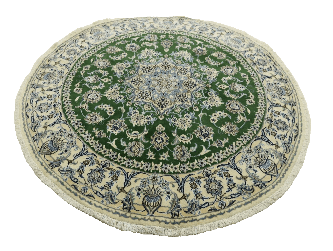 Orientteppich super Nain | Größe: 200 x 200 cm | Knotendichte: ca. 300.000 Knoten/m² | Material: 90% Schurwolle, 10% Seide | Zustand: Neu, sehr gut | Herkunft: Persien | Dicke: ca. 8 mm | Handgeknüpft, für Fußbodenheizung geeignet | Design: Orientalisch, rund