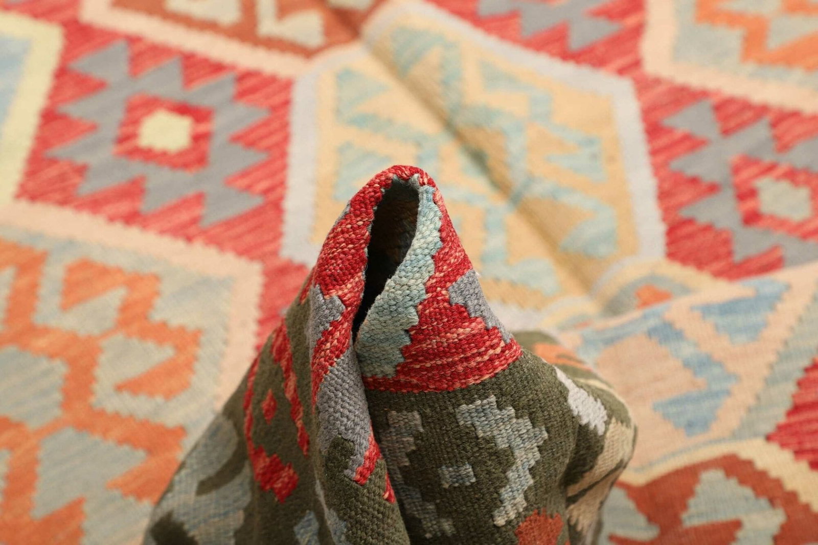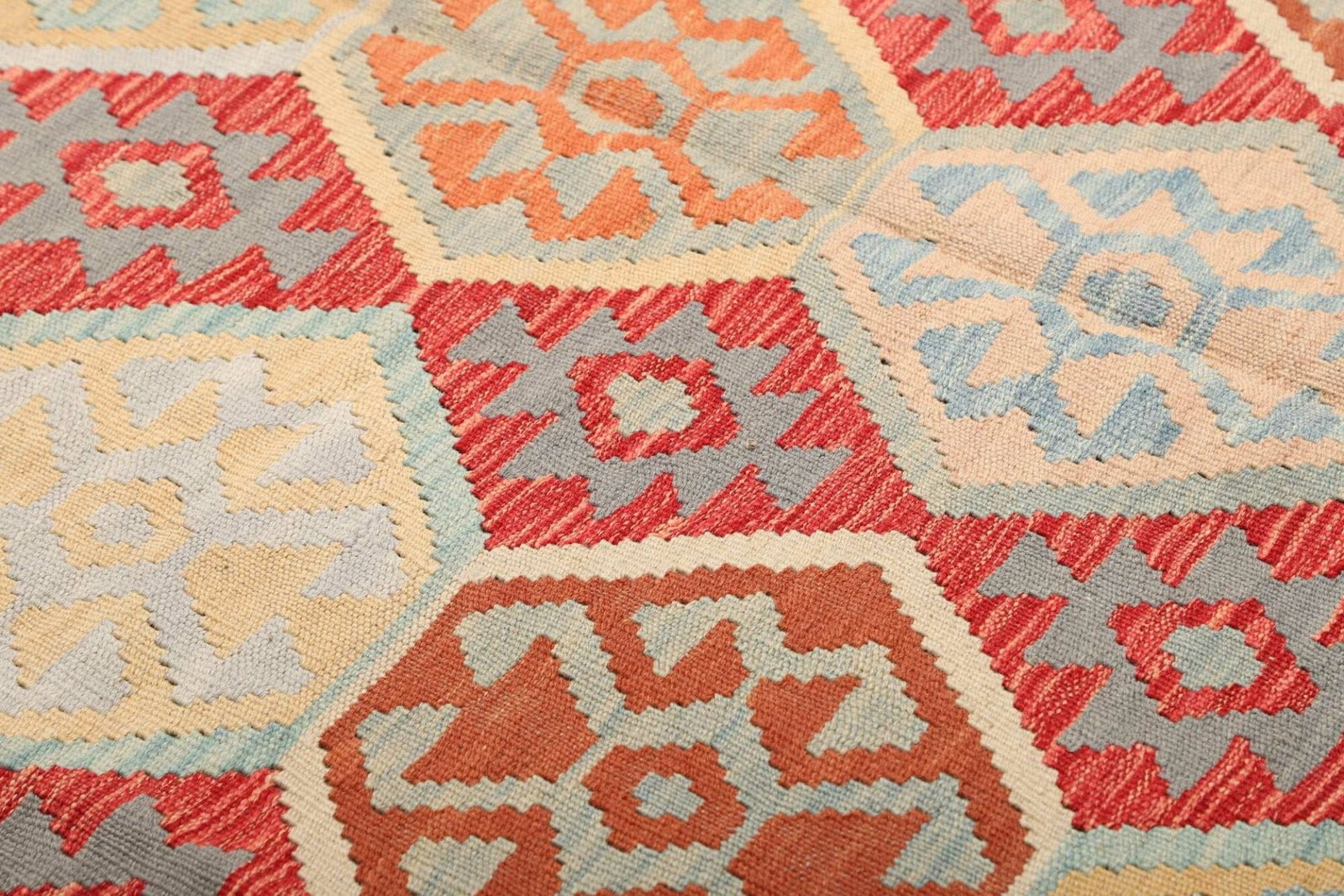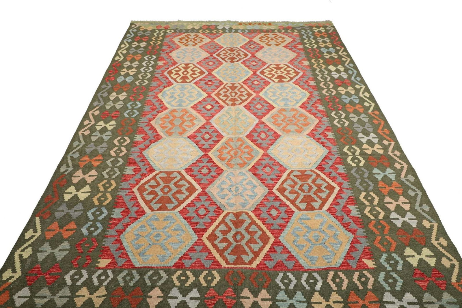 Kelim Teppich | Knotendichte: ca. 200.000 Knoten/m² | Material: 100% Schurwolle (Flor), 100% Baumwolle (Kette) | Größe: 201 x 302 cm | Handgewebte Qualität | Herkunft: Pakistan | Höhe: ca. 5 mm | Vielseitig einsetzbar als Teppich, Vorhang oder Wandschmuck