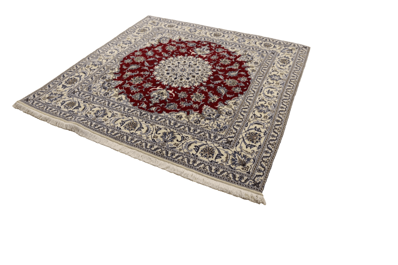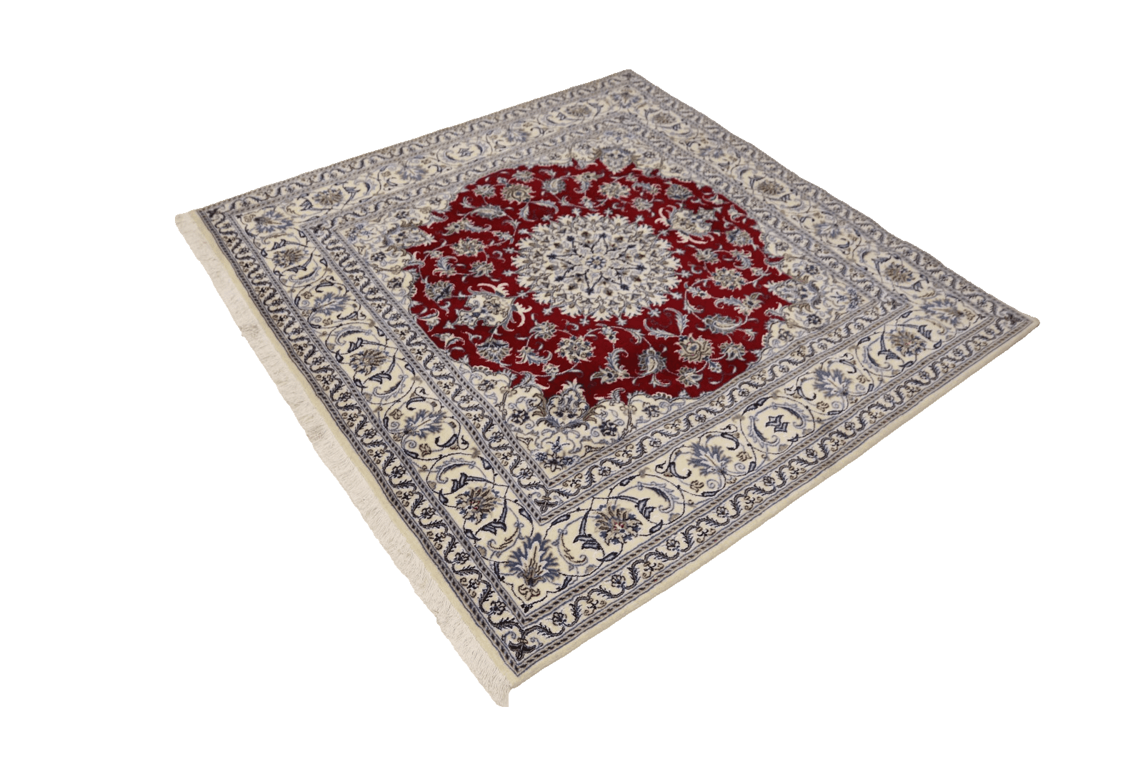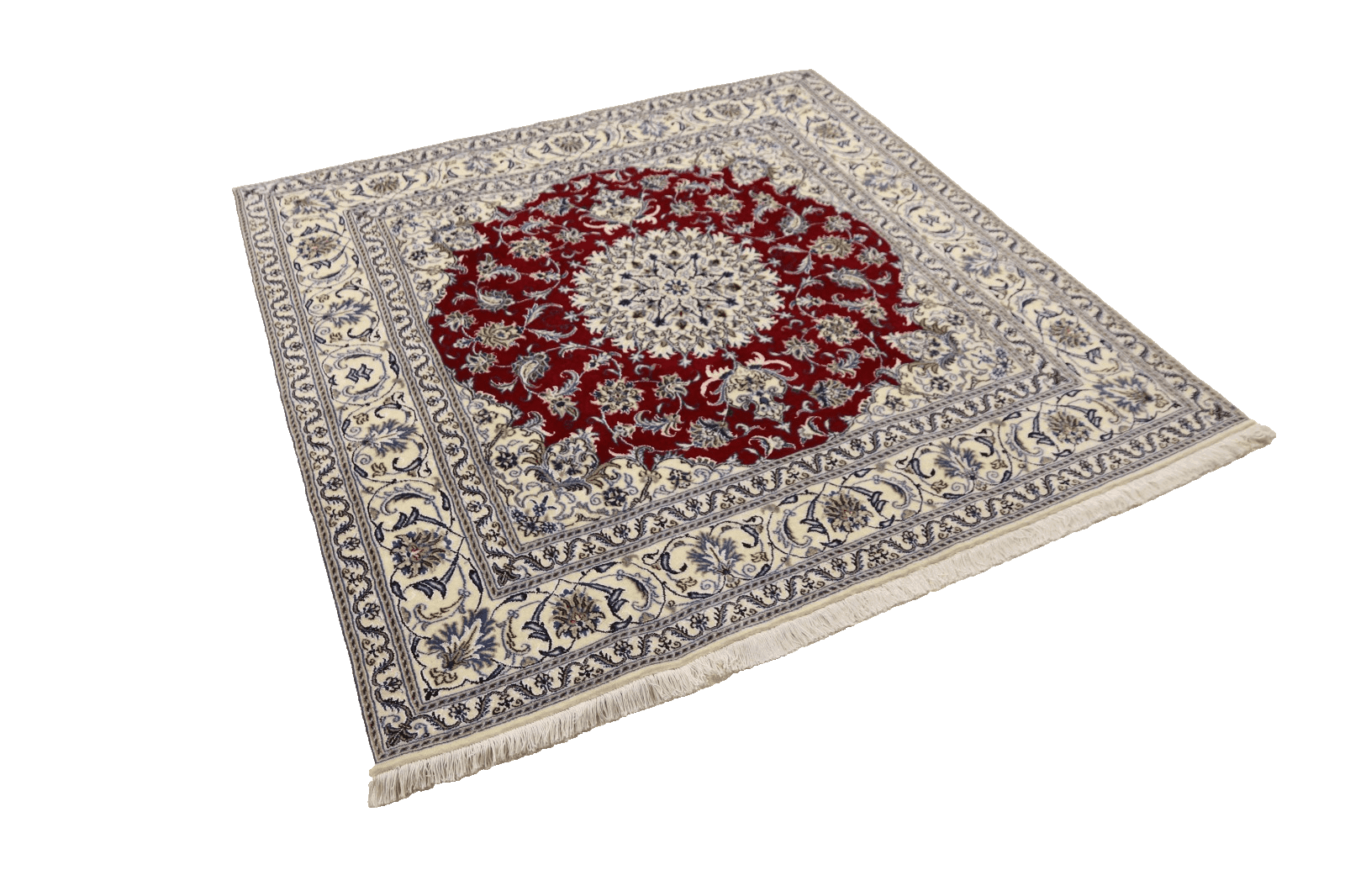 Wunderschöner Orientteppich Super Nain | Knotendichte: 300.000 Knoten/m² | Material: 90 % Schurwolle, 10 % Seide | Größe: 195 x 198 cm | Zustand: Neu, perfekt | Herkunft: Persien | Handgeknüpft | Geeignet für Fußbodenheizung | Traditionelles, orientalisches Muster | Farbe: Rot | Florhöhe: 8 mm